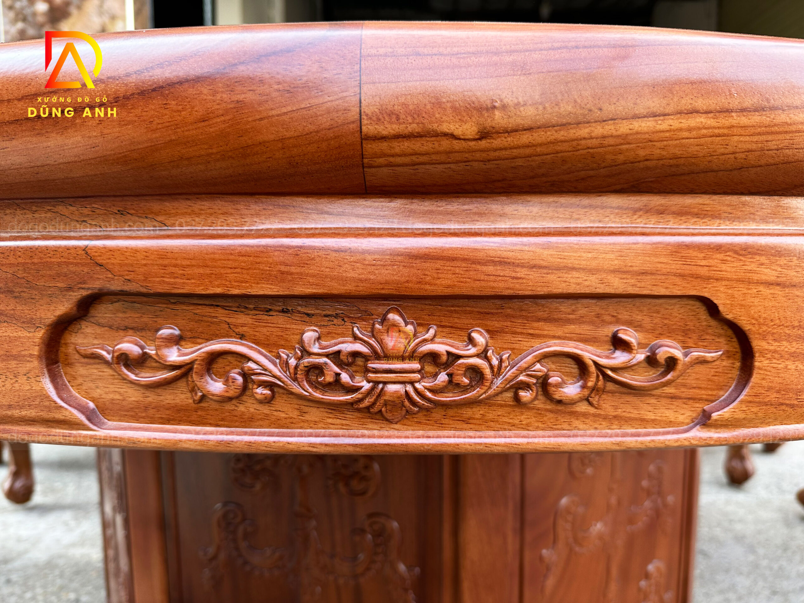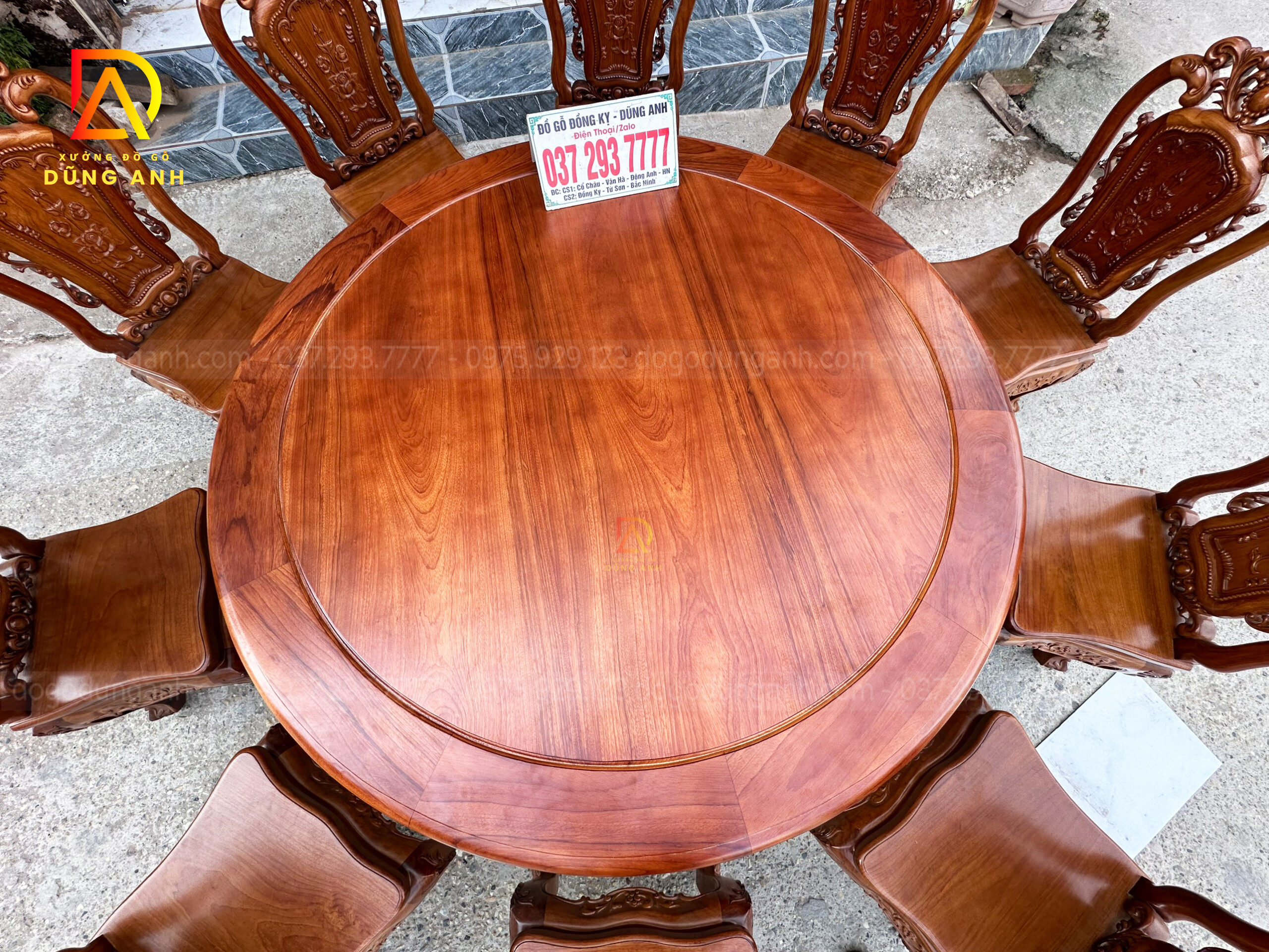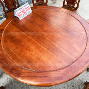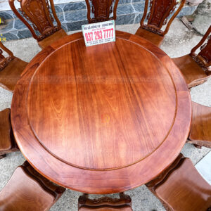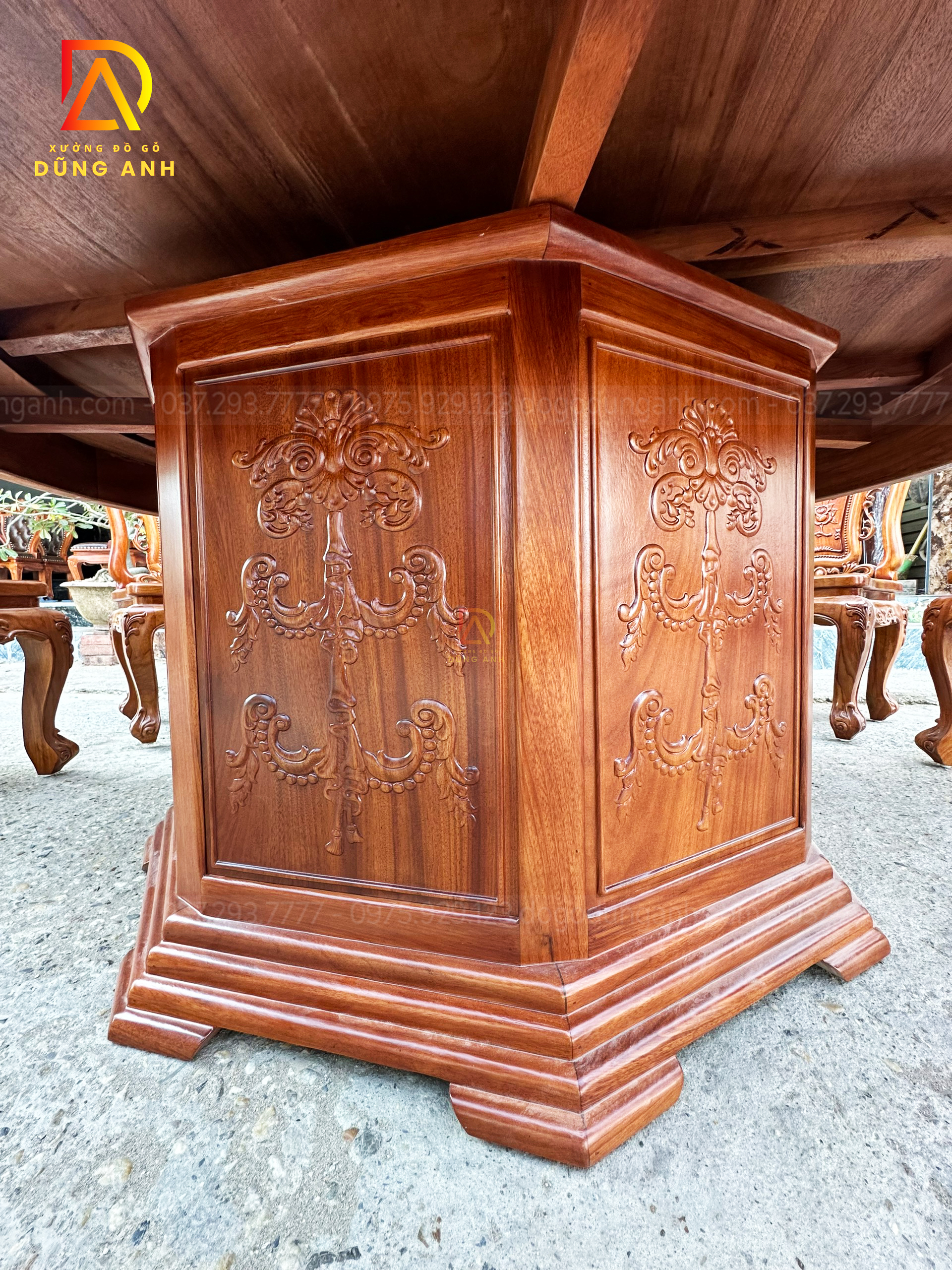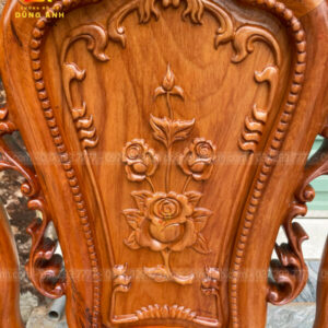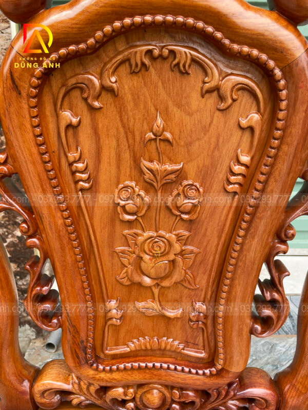 Đồ Gỗ Dũng Anh | Bộ 10 Ghế Hoàng Gia hoa hồng+ Bàn tròn yếm bo – Gỗ Gõ Đỏ