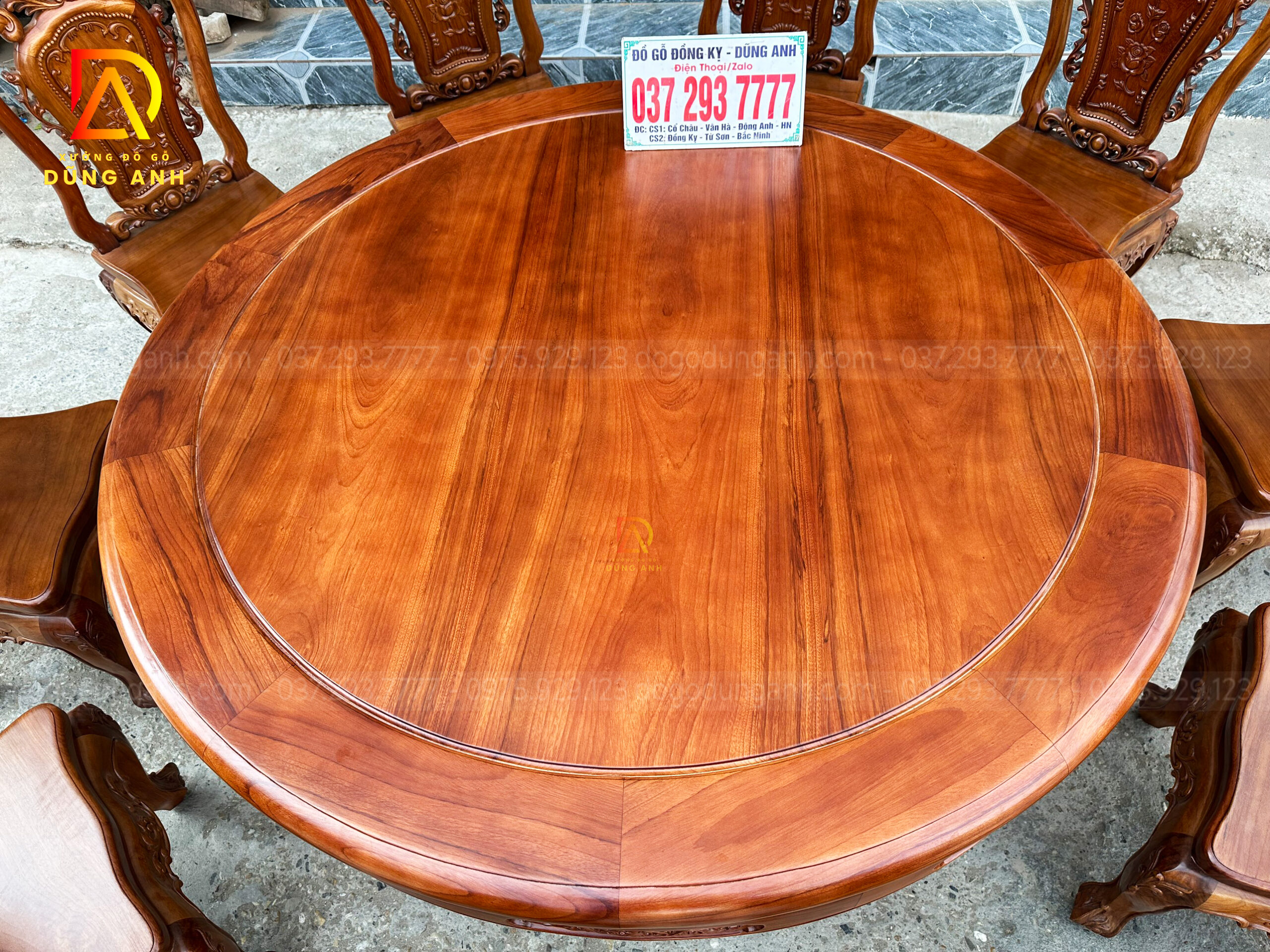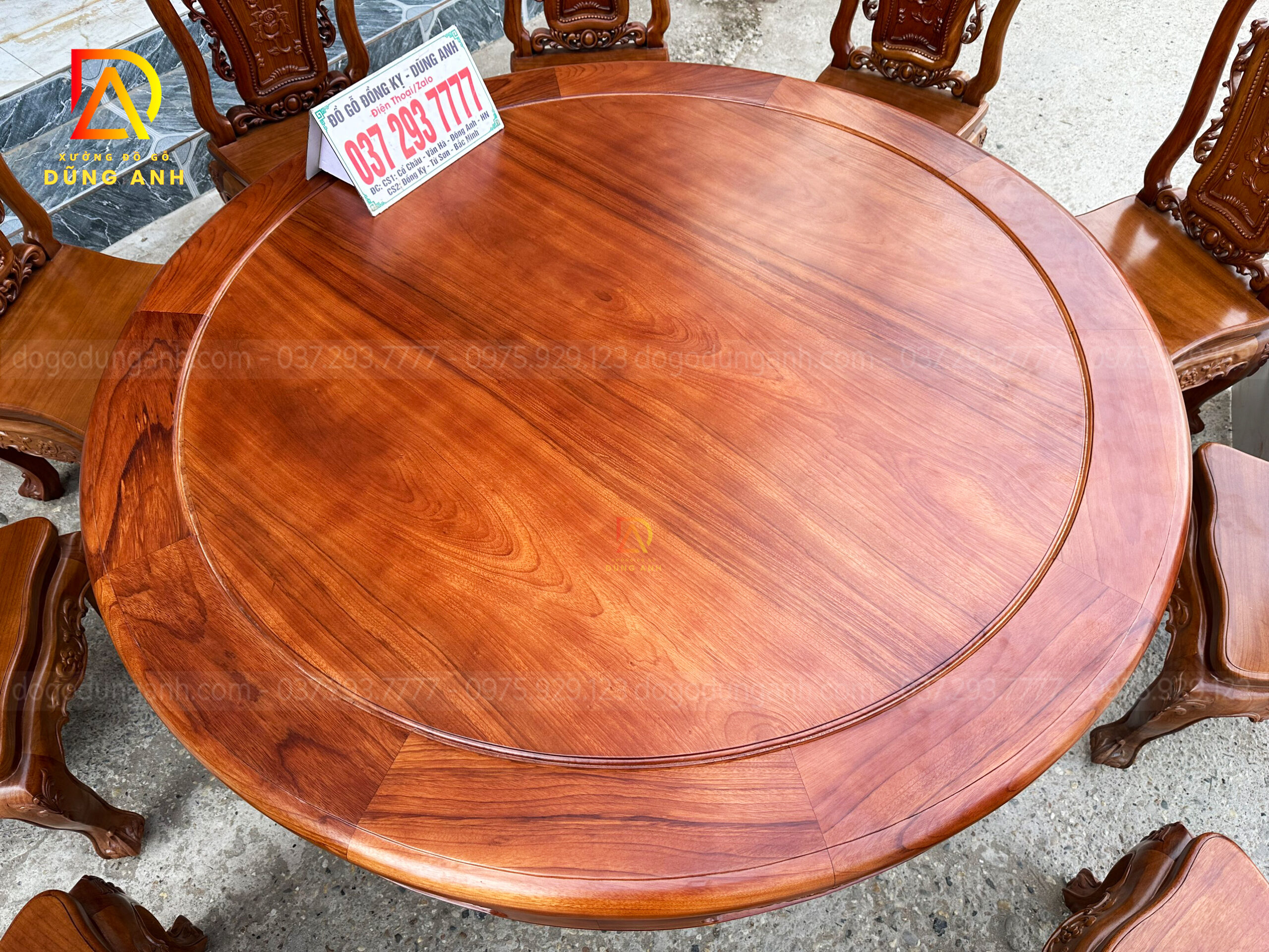 - Chiếc bàn được làm với đường kính là 180 cm , làm vào thông số đẹp là 178 cm , ván bàn có độ dày lên tới 2 cm , được ghép 3 tấm nhìn như 1