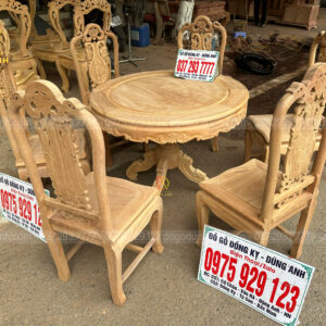 Đồ Gỗ Dũng Anh| Bộ 6 ghế Chương hồng vách nho + bàn tròn mini – gỗ gõ đỏ