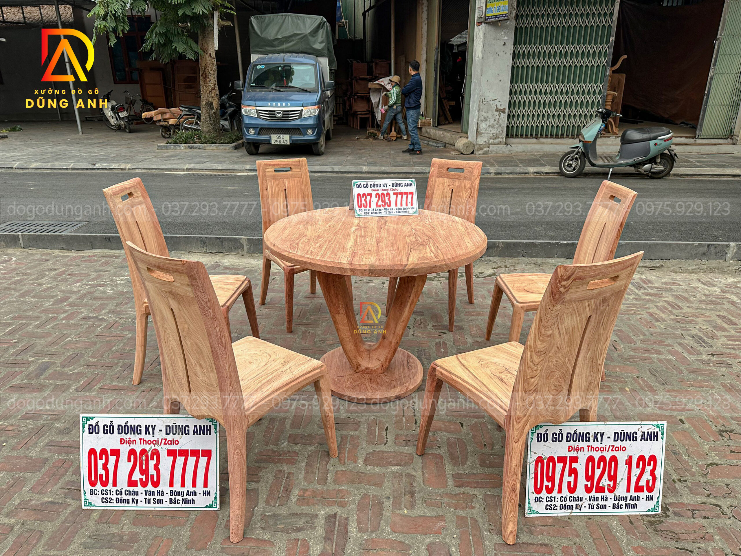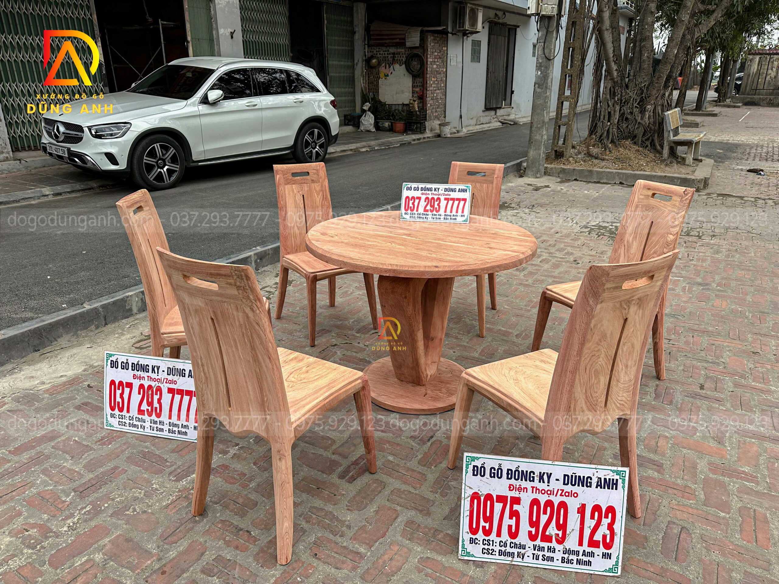 Đồ Gỗ Dũng Anh | Bộ 6 ghế Hiện đại + bàn tròn đặc nguyên khối – gỗ Hương đá Nam Phi