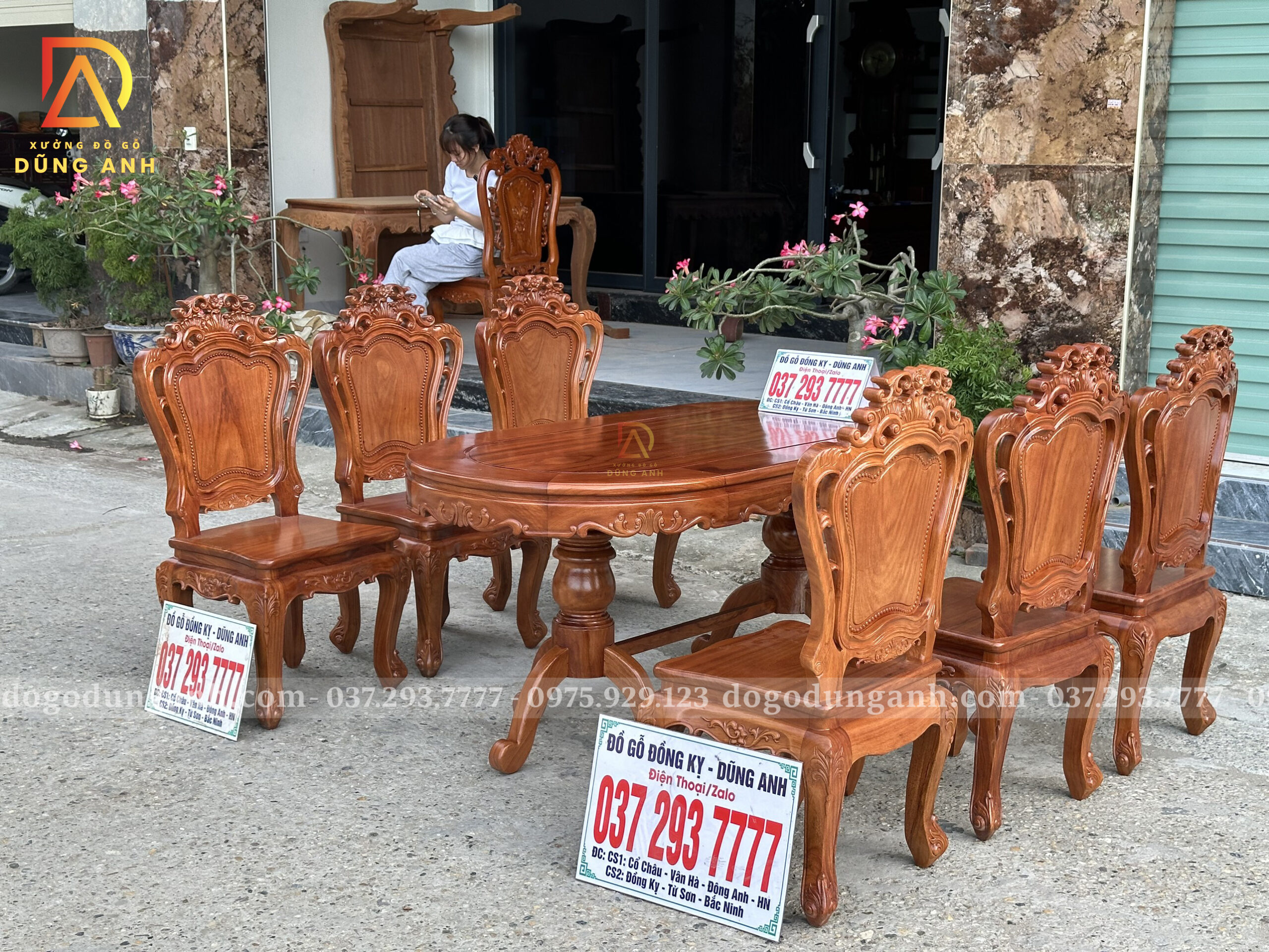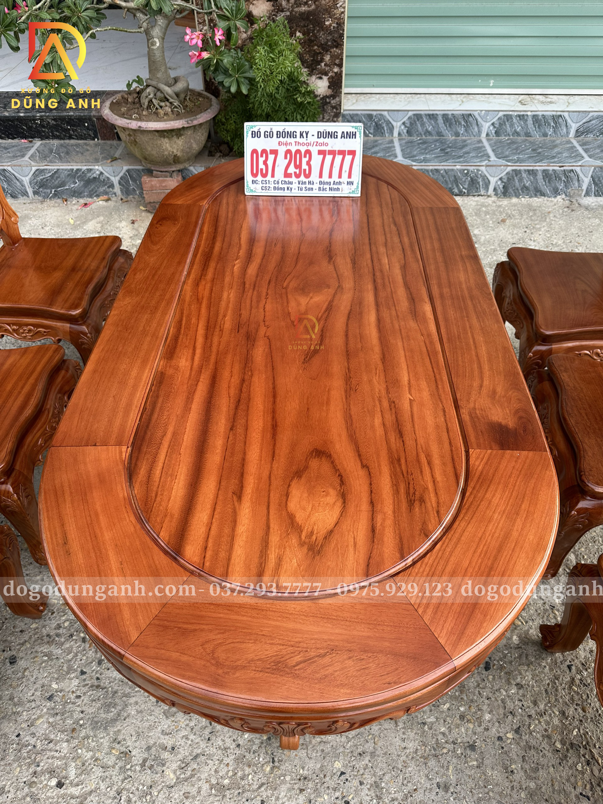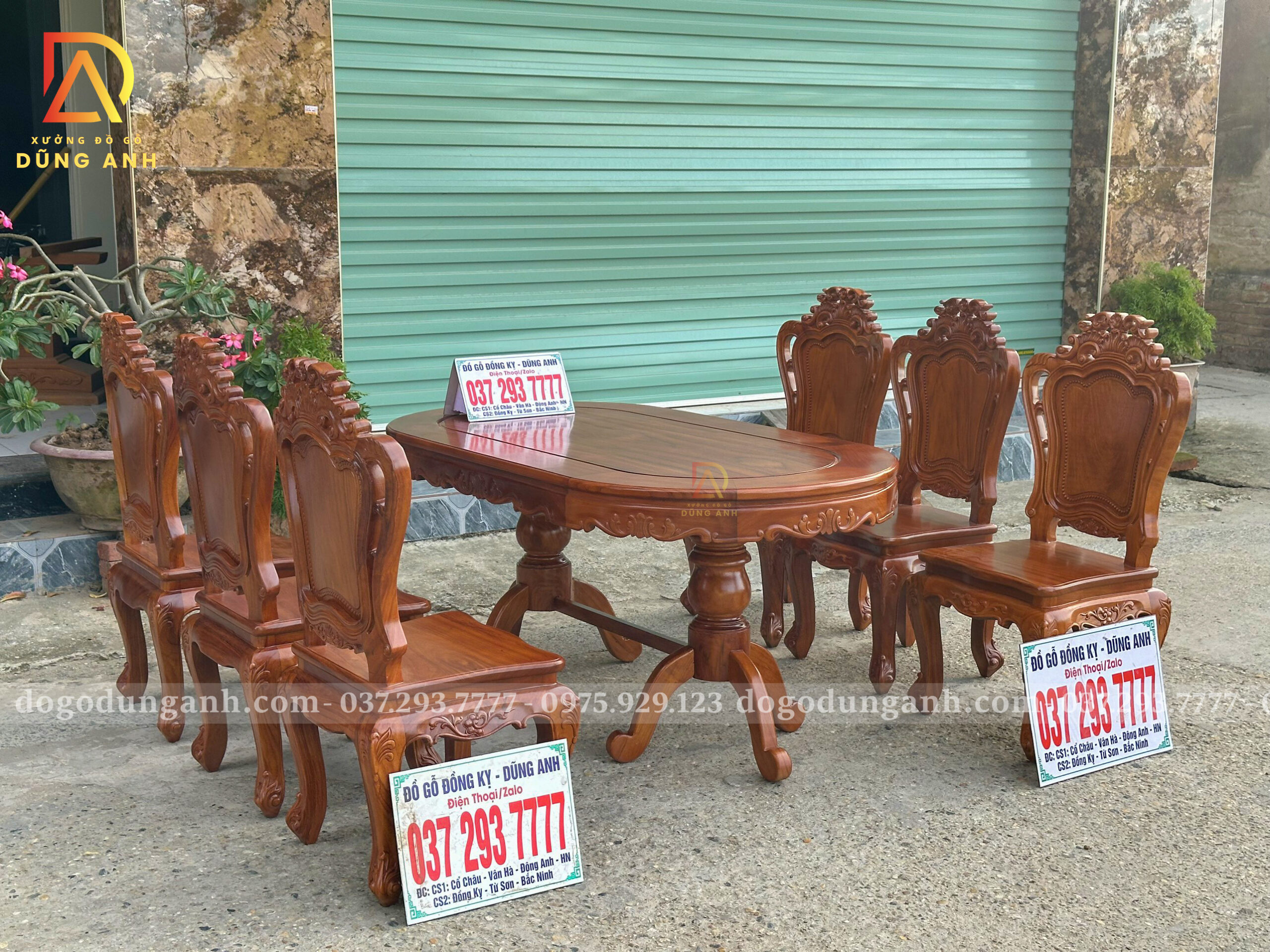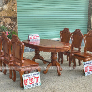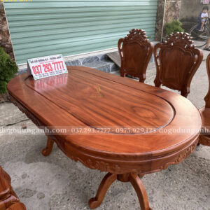 Đồ Gỗ Dũng Anh | Bộ 6 Ghế Hoàng Gia kết hợp Bàn Olval – Gỗ Gõ Đỏ