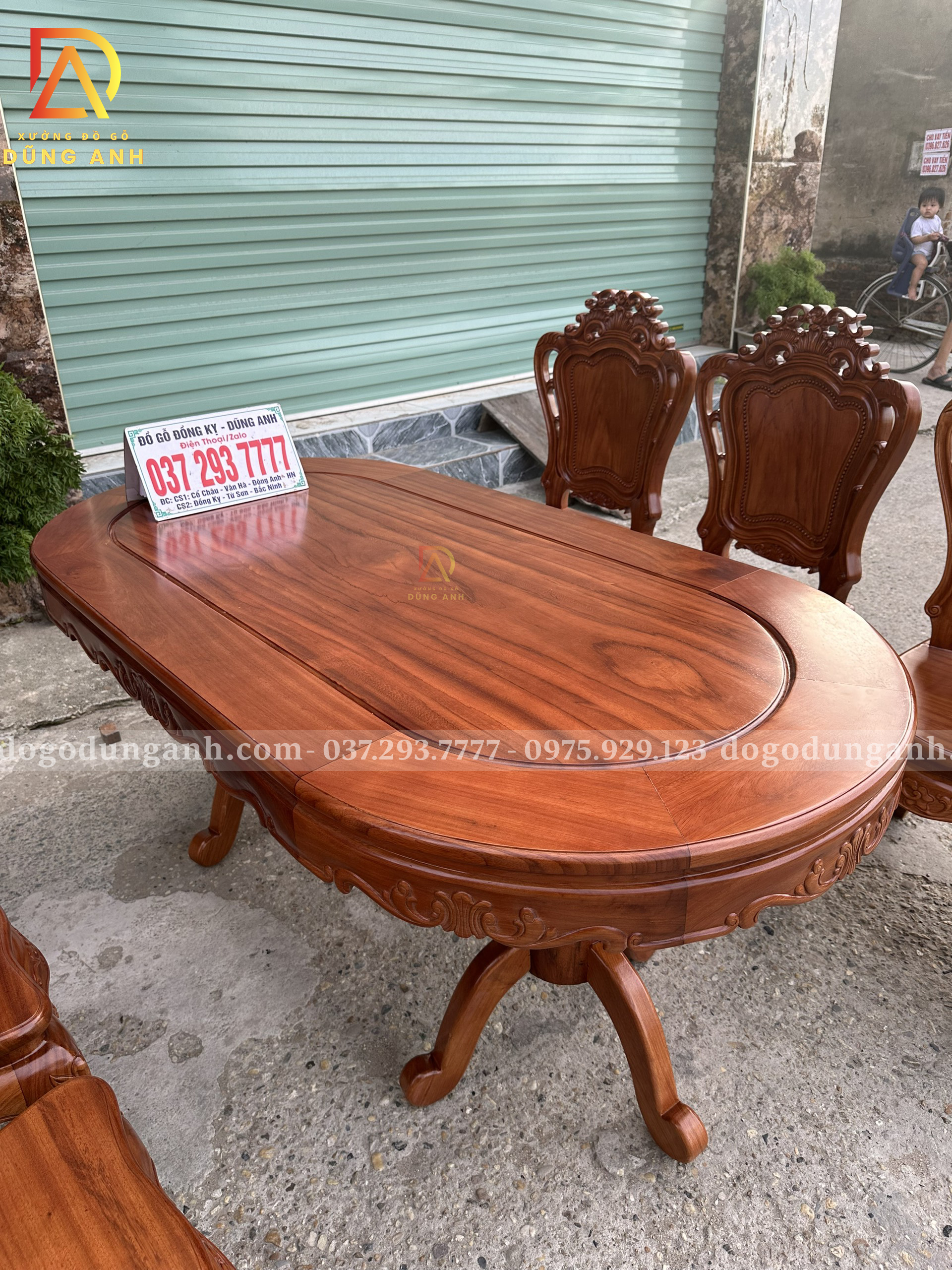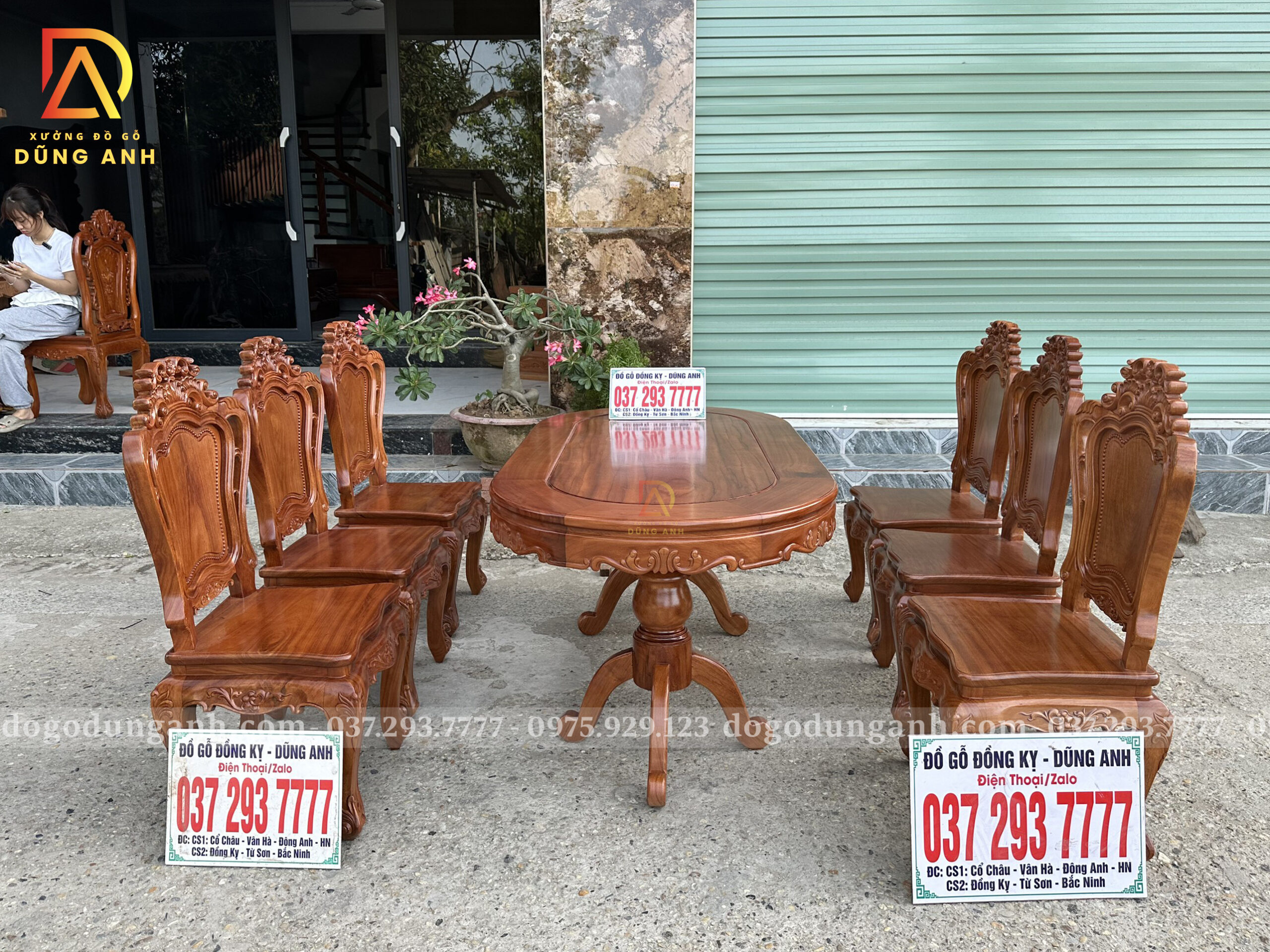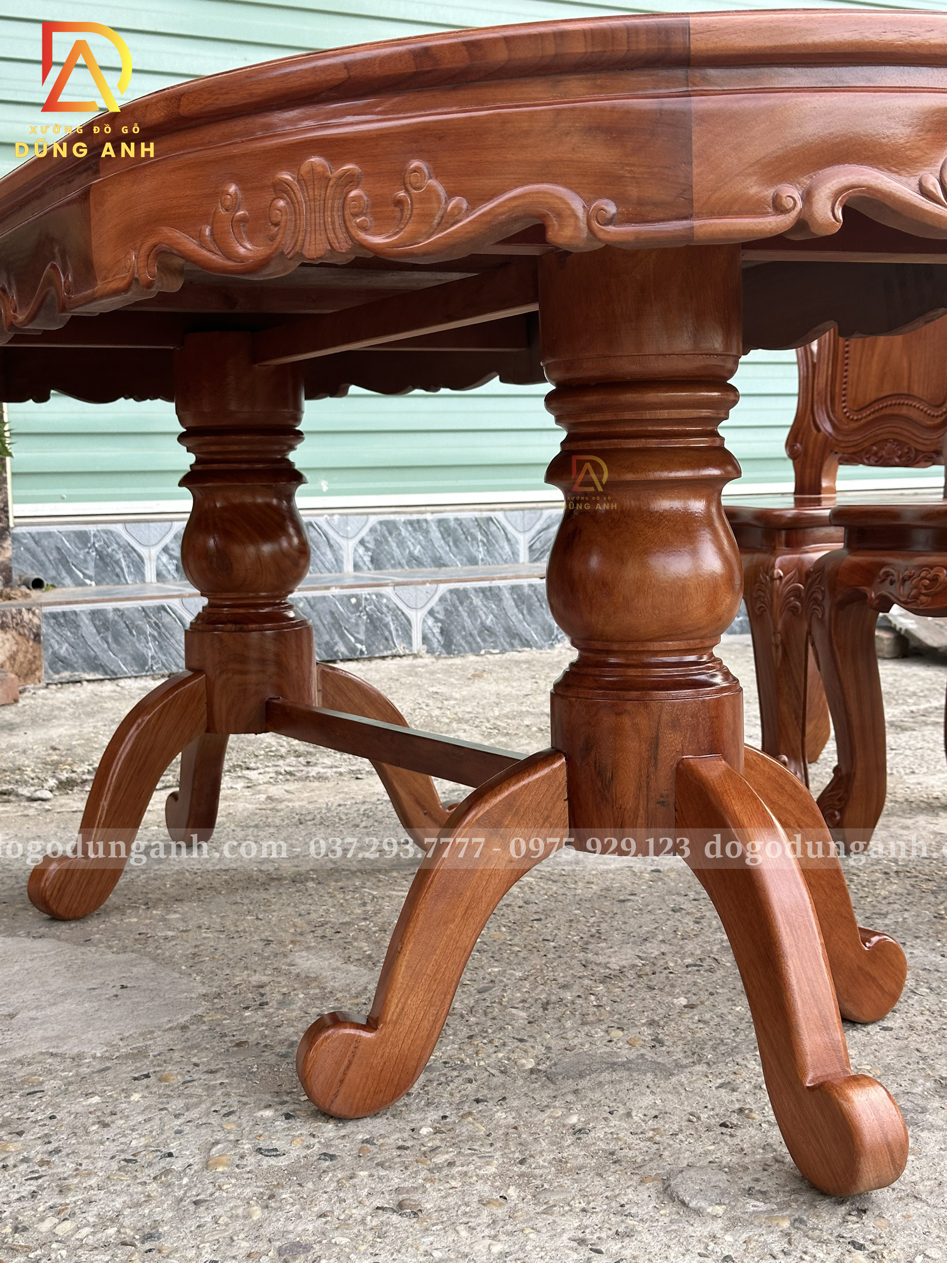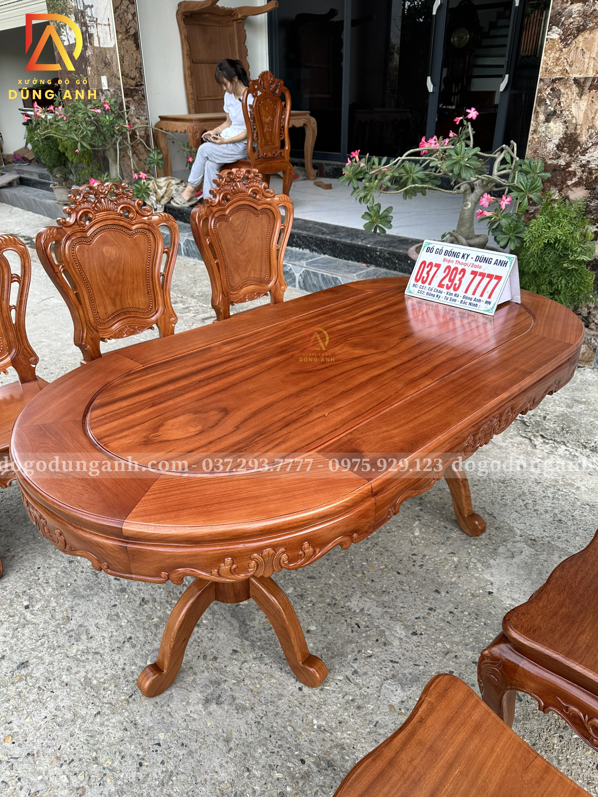 Đồ Gỗ Dũng Anh | Bộ 6 Ghế Hoàng Gia kết hợp Bàn Olval – Gỗ Gõ Đỏ