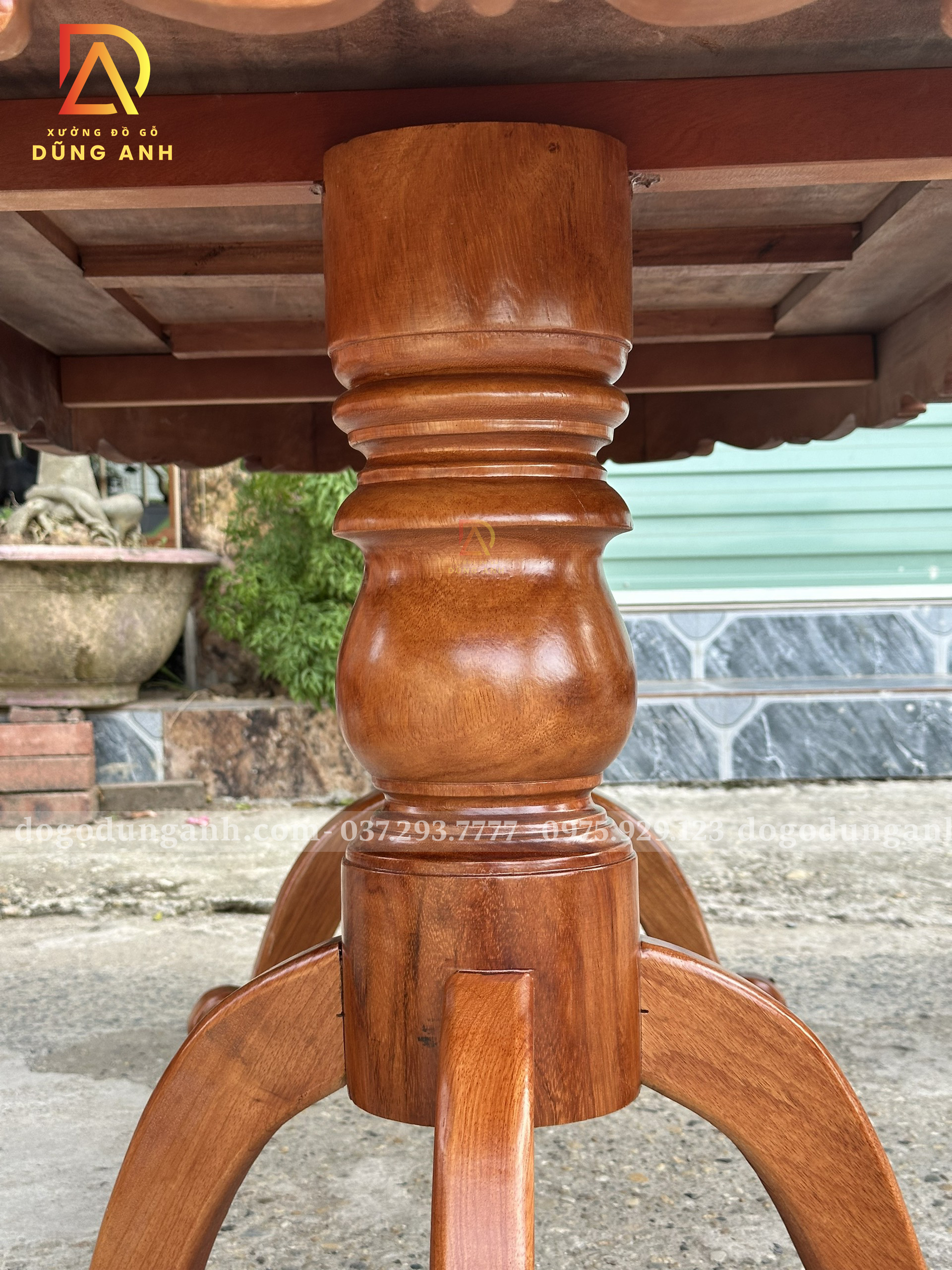 - Chân trụ đặc liền Nguyên Khối có kích thước bản vuông là 16 cm và được tiện tròn thủ công hoàn toàn bằng tay