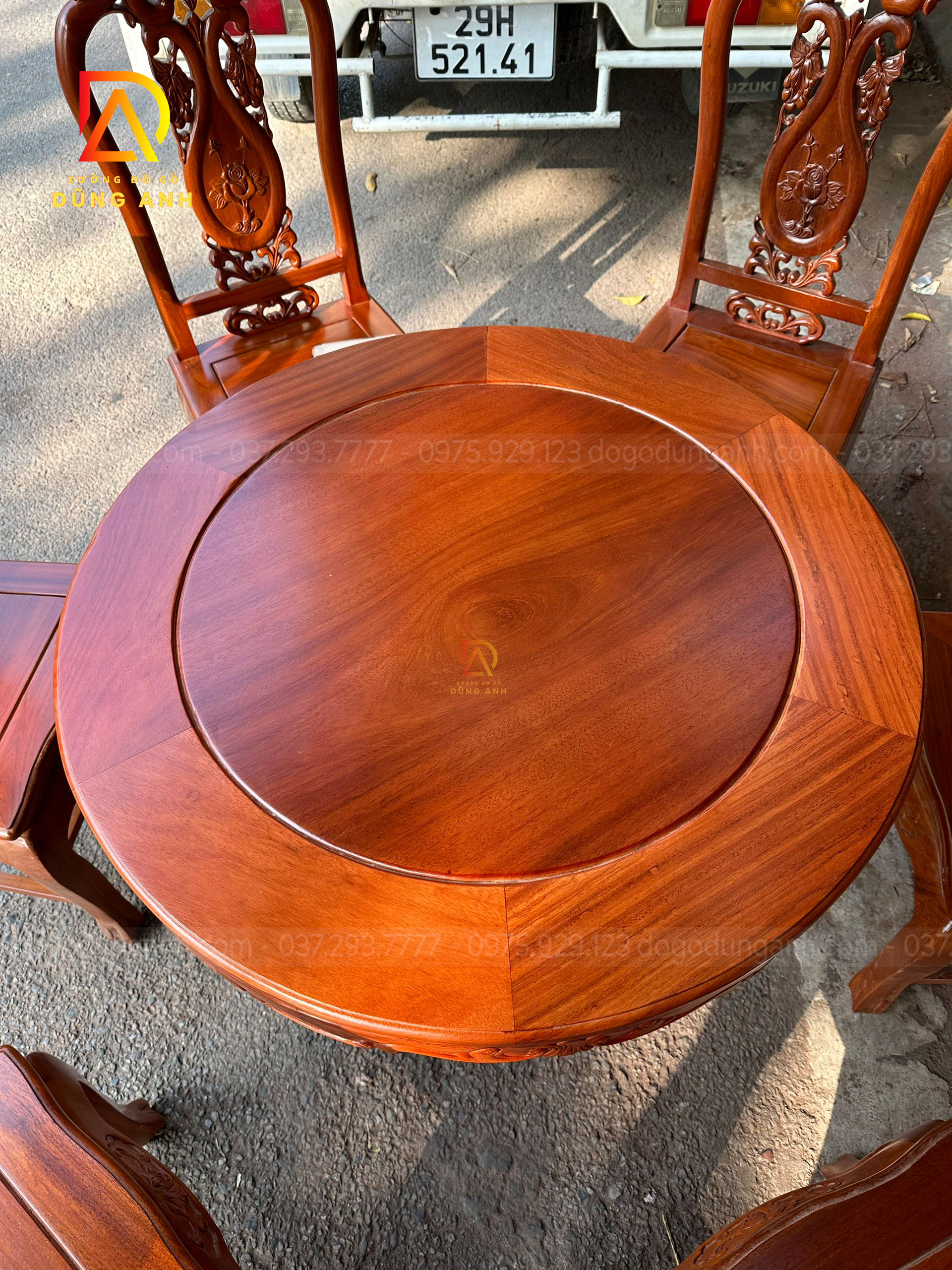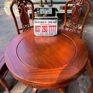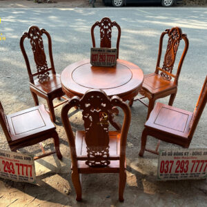 Đồ Gỗ Dũng Anh |Bộ 6 ghế Trương Hồng Vách Nho + Bàn tròn yếm vén Mini – gỗ Gõ Đỏ