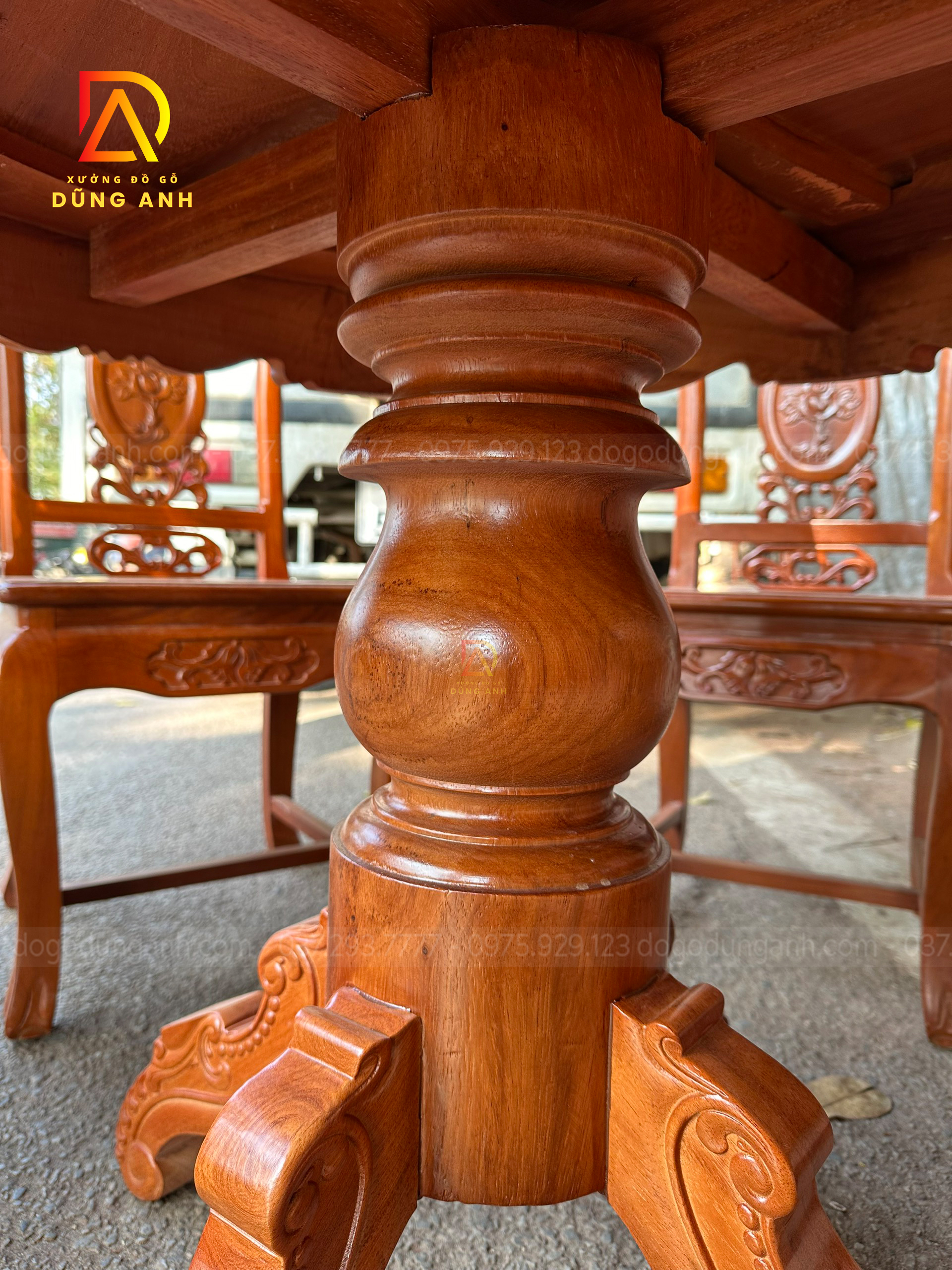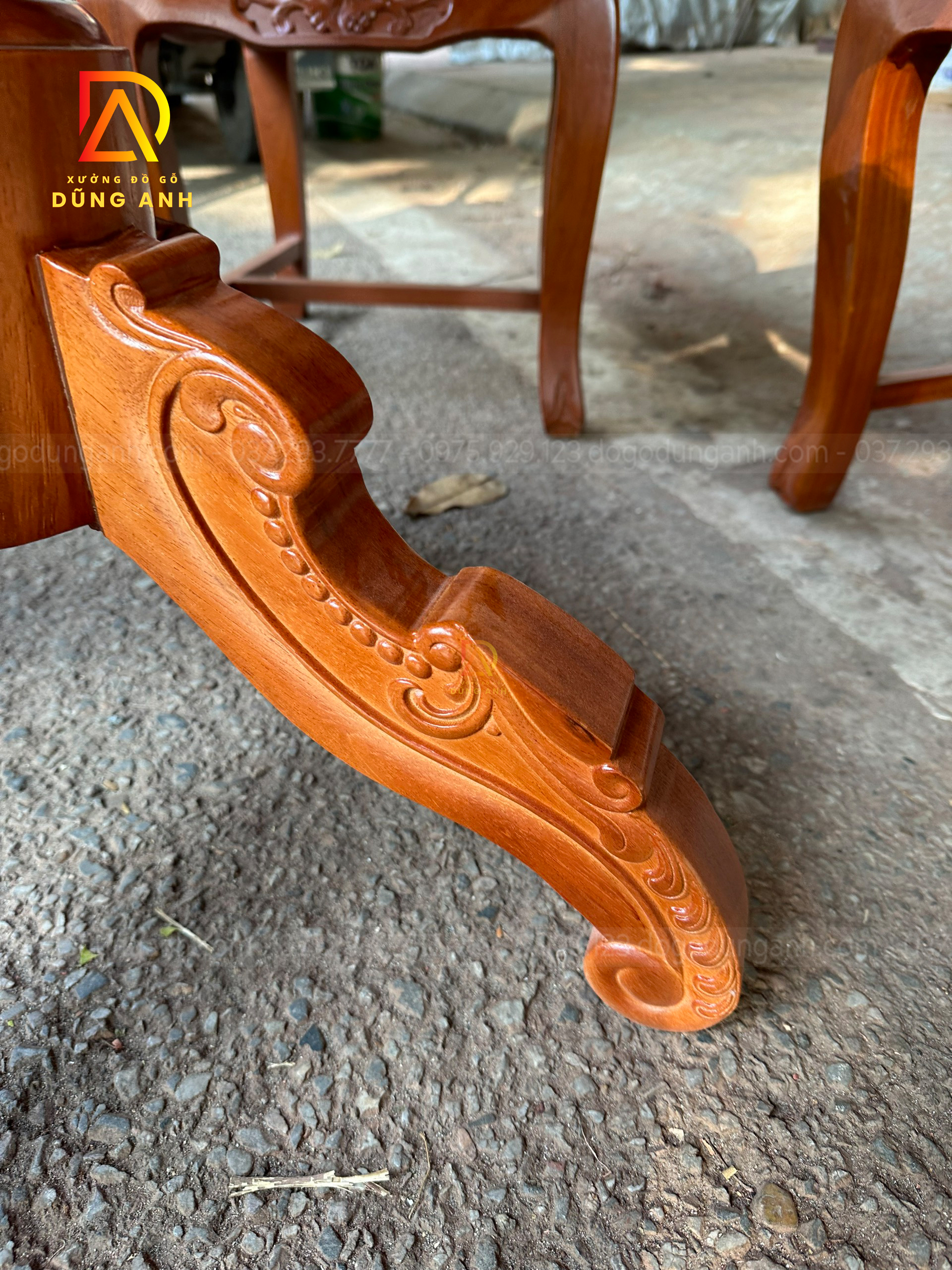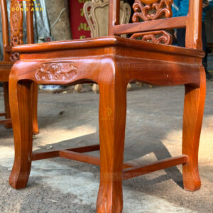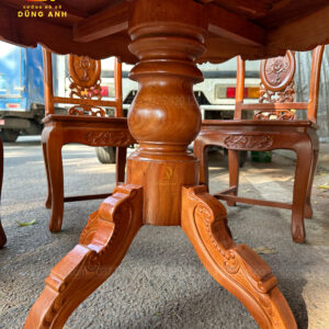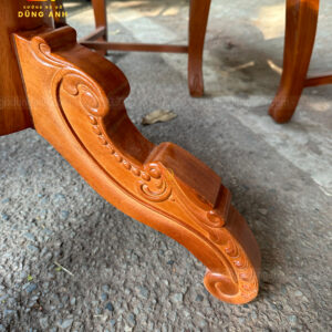 - Xung quang là 4 chiếc chân chó có độ dày 6 cm và rộng 13 cm được tiện tròn và thủ công bằng tay , đục chạm mẫu hoa lá tây tạo thêm điểm nhấn cũng như độ sang trọng