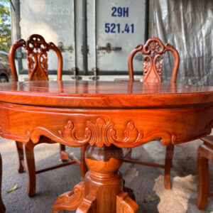 Bộ 6 ghế Trương Hồng Vách Nho + Bàn tròn yếm vén Mini – gỗ Gõ Đỏ