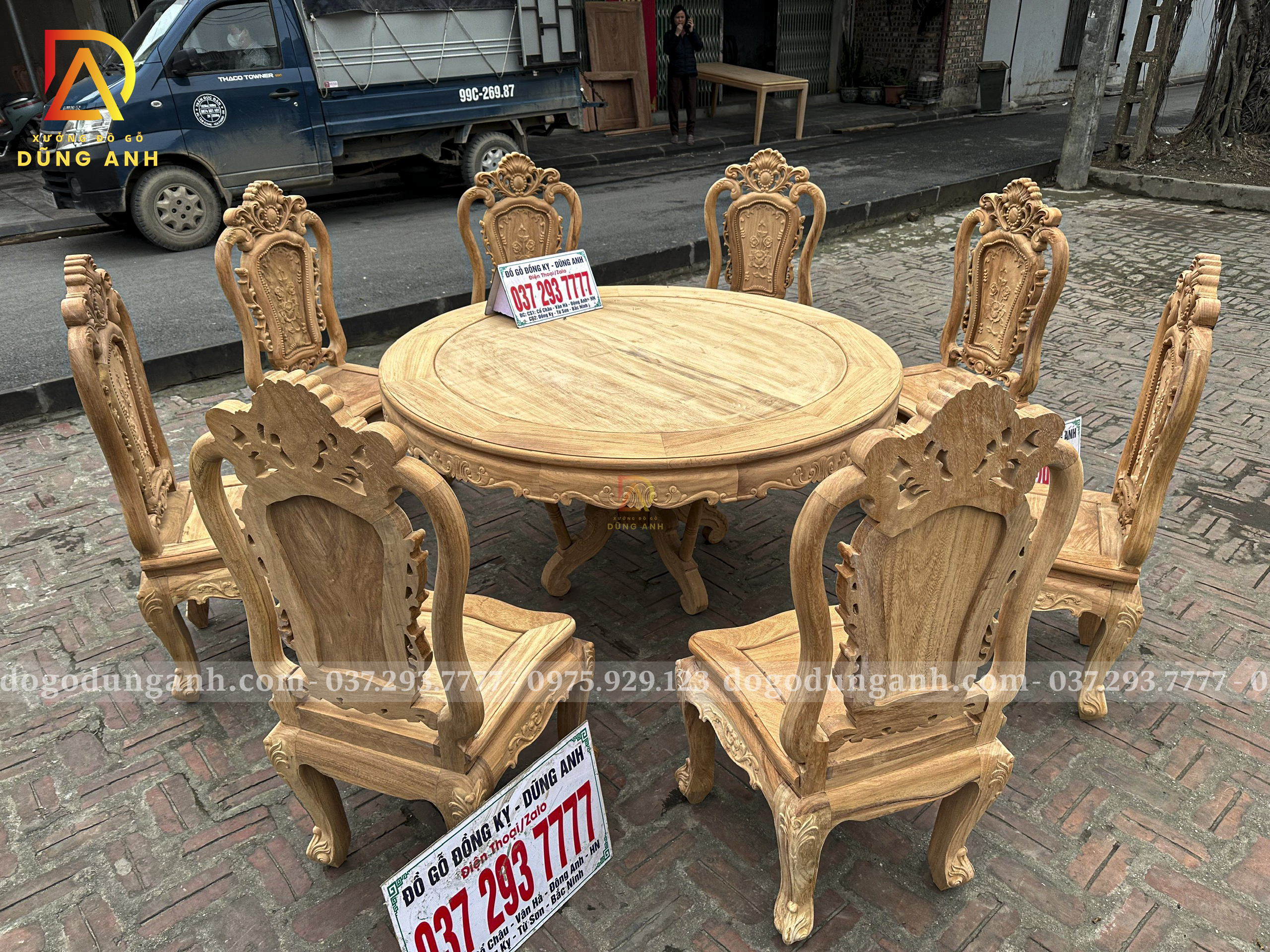 Đồ Gỗ Dũng Anh | Bộ 8 Ghế Louis Hoa Hồng và Bàn Tròn Yếm Vén – Gỗ Gõ Đỏ