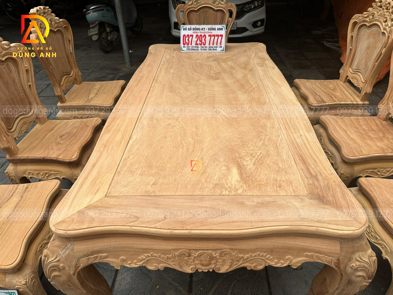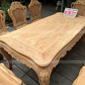 - Bàn có kích thước chiều dài 197cm, chiều rộng 97cm , mặt bàn liền 1 lá chọn gỗ lọc vân kĩ lưỡng