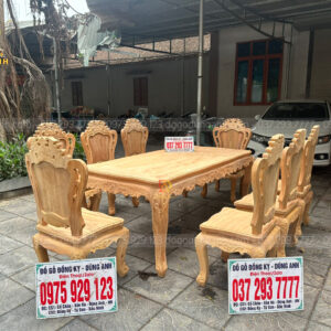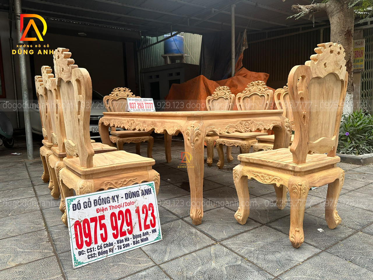 Trong thế giới của những người yêu và hiểu giá trị thực thụ của nội thất gỗ tự nhiên, mỗi sản phẩm không chỉ đơn thuần là một món đồ trang trí, mà còn là một tác phẩm nghệ thuật – nơi hội tụ tinh hoa thủ công truyền thống, tâm huyết của người thợ và dấu ấn văn hóa trường tồn cùng thời gian. Và đó chính là lý do vì sao Đồ Gỗ Dũng Anh tự hào giới thiệu đến quý khách hàng yêu quý Bộ 8 Ghế Louis Hoàng Gia kết hợp Bàn Củ Lạc – tuyệt phẩm được chế tác từ gỗ Gõ Đỏ Nam Phi cao cấp, mang trong mình vẻ đẹp vĩnh cửu và đẳng cấp vượt thời gian.