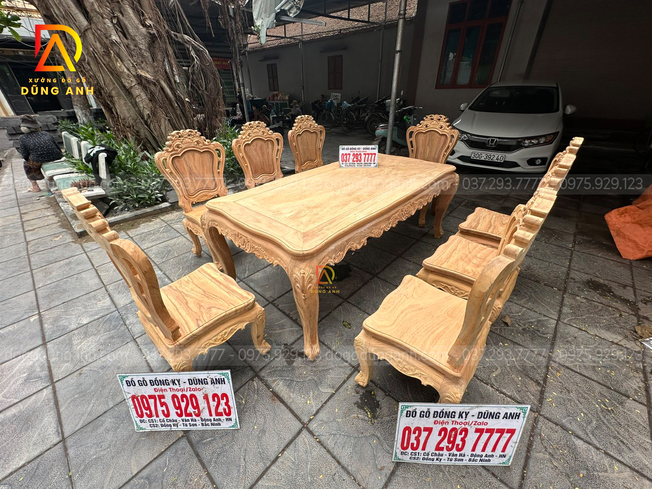 Đồ Gỗ Dũng Anh | Bộ 8 ghế Louis Hoàng Gia + Bàn củ lạc sang trọng – gỗ Gõ Đỏ