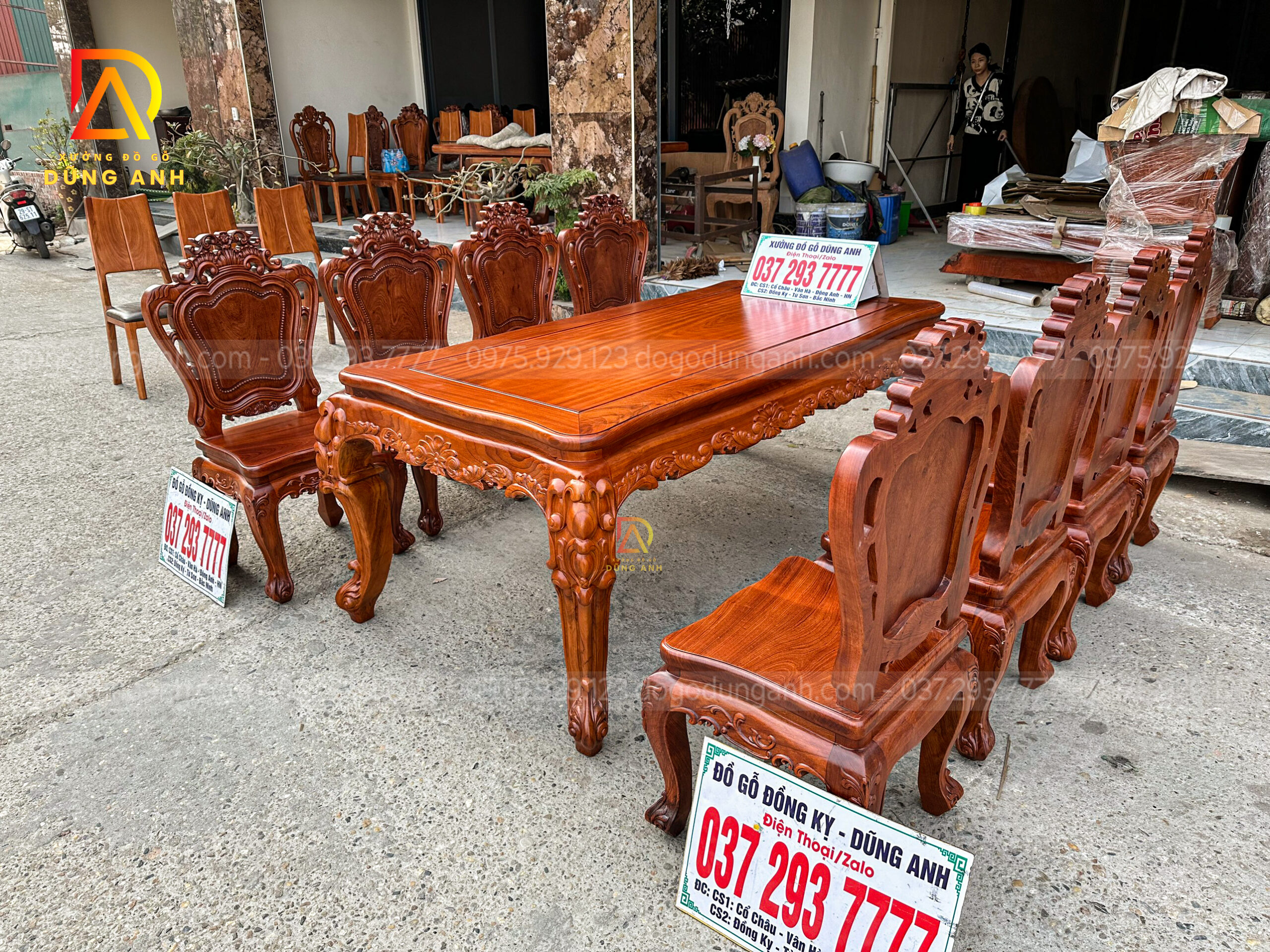Đồ Gỗ Dũng Anh | Bộ 8 ghế Louis Hoàng Gia + bàn củ lạc sang trọng – gỗ Hương đá