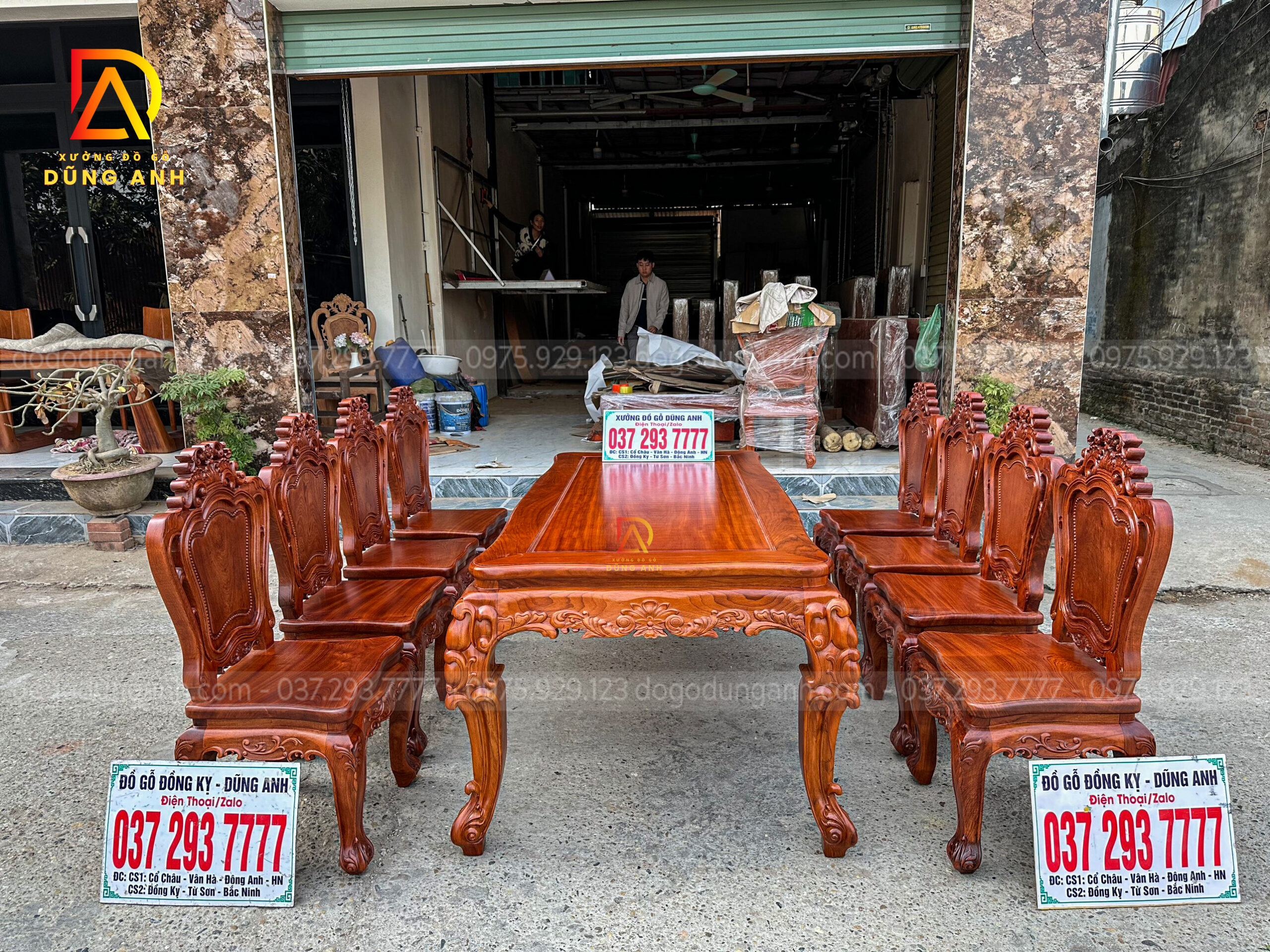 Quý khách có thể tham khảo thêm các mẫu bàn ghế ăn đẹp, bàn ghế ăn nguyên khối, các mẫu ghế ăn đẹp thì có thể liên hệ ngay với Xưởng đồ gỗ Dũng Anh qua: