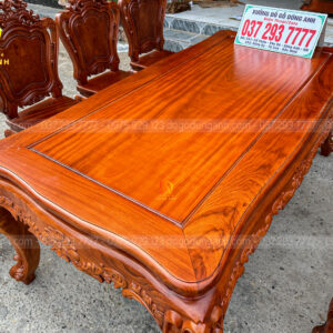 Đi kèm với bộ ghế là bàn củ lạc với thiết kế mạnh mẽ và vững chãi, phù hợp với không gian rộng lớn của phòng khách. Mặt bàn được làm từ gỗ Hương Đá, cùng những đường nét chạm khắc tinh tế, giúp tạo ra một tổng thể hài hòa và quý phái. Bàn củ lạc không chỉ là vật dụng hữu ích mà còn là một tác phẩm nghệ thuật, góp phần nâng cao vẻ đẹp của ngôi nhà.