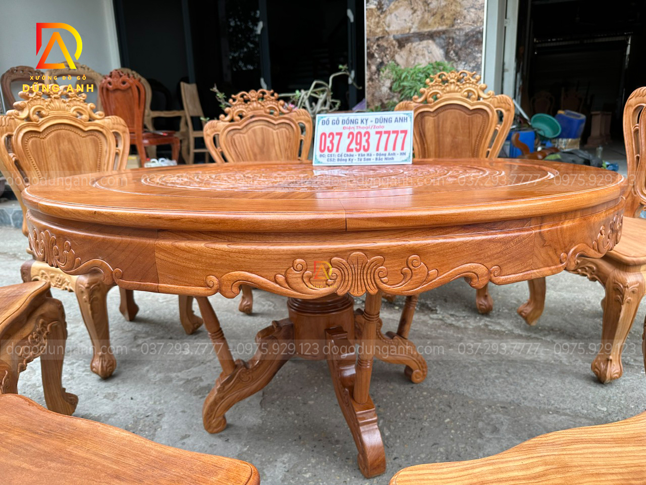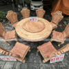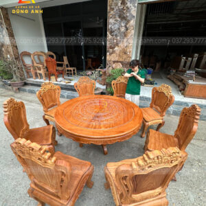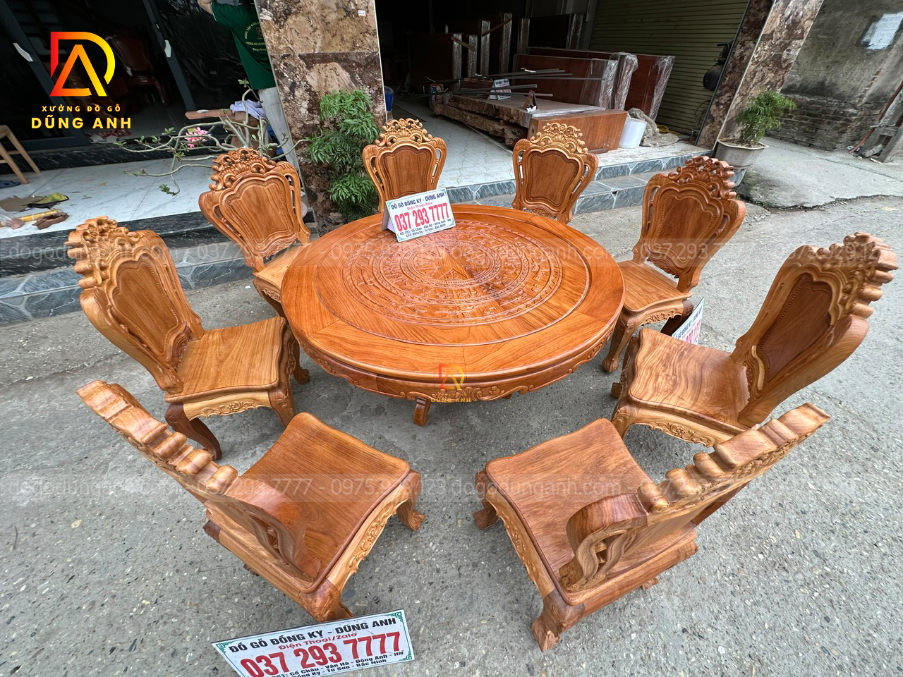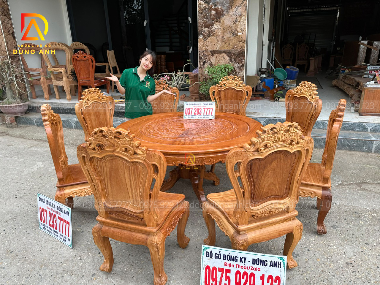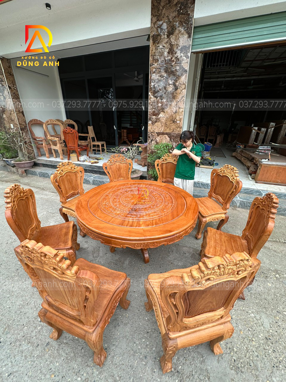 BỘ 8 GHẾ LOUIS HOÀNG GIA + BÀN TRÒN ĐỤC TRỐNG ĐỒNG – GỖ GÕ ĐỎ | ĐỒ GỖ DŨNG ANH