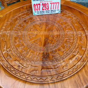 - Bàn có đường kính 147 cm , Mặt bàn đục trạm họa tiết Trống Đồng sắc nét, tinh tế