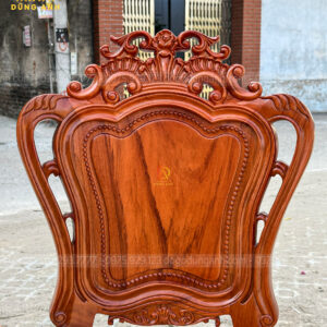 Mặt tràn của ghế được chế tác một cách tỉ mỉ, tạo ra một bề mặt tiếp xúc rộng rãi, vừa thoải mái vừa góp phần làm nổi bật vẻ đẹp của gỗ Hương Đá. Những chi tiết chạm trổ, đục tỉa cầu kỳ trên ghế không chỉ mang lại sự tinh xảo mà còn thể hiện tay nghề điêu luyện của các nghệ nhân Đồ Gỗ Dũng Anh.