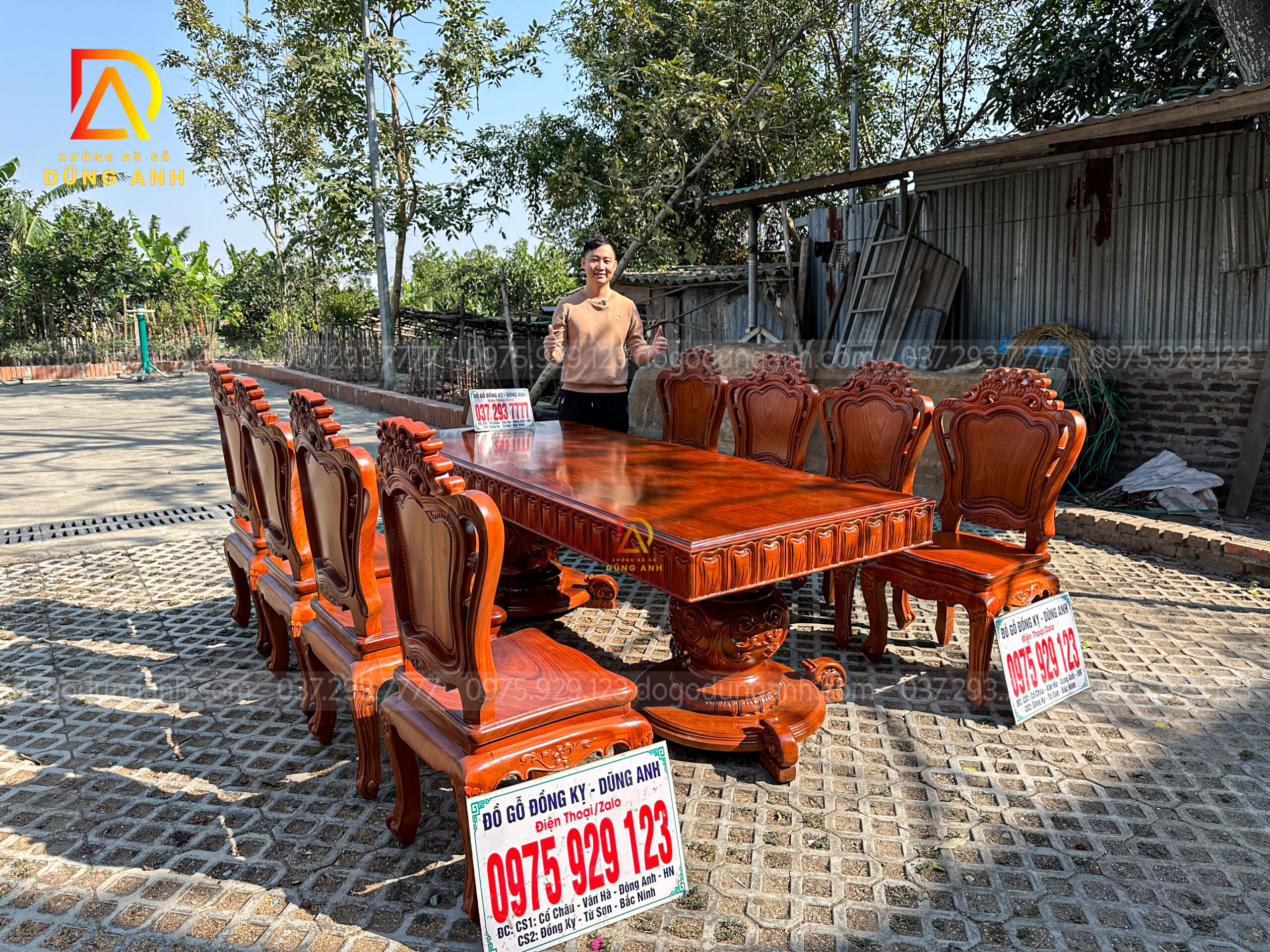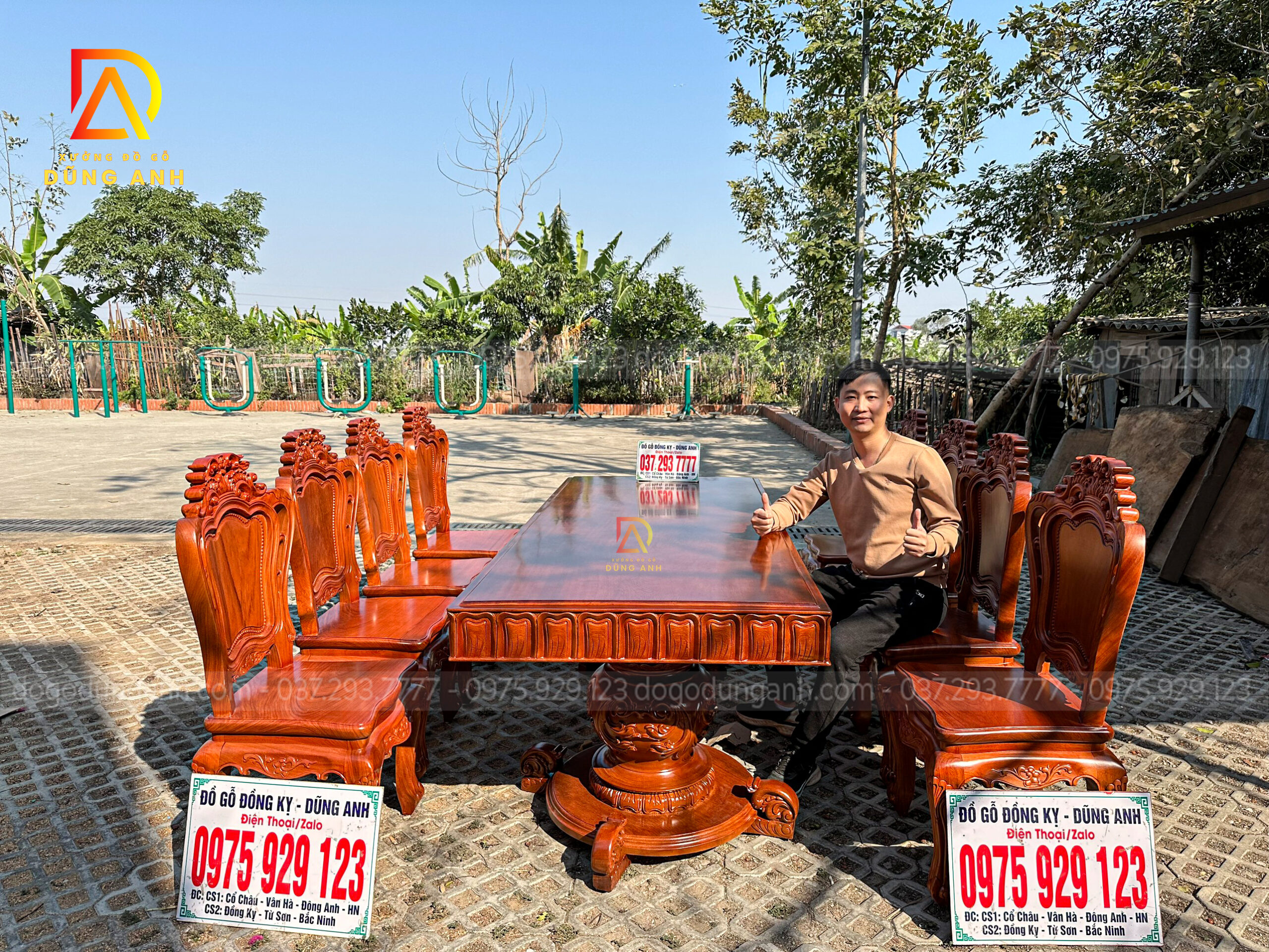 Quý khách có thể tham khảo thêm các mẫu bàn ghế ăn đẹp, bàn ghế ăn nguyên khối, các mẫu ghế ăn đẹp thì có thể liên hệ ngay với Xưởng đồ gỗ Dũng Anh qua: