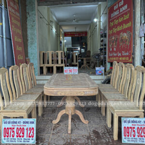 Bộ bàn ăn 8 ghế được chế tác từ chất liệu gỗ gõ đỏ tự nhiên