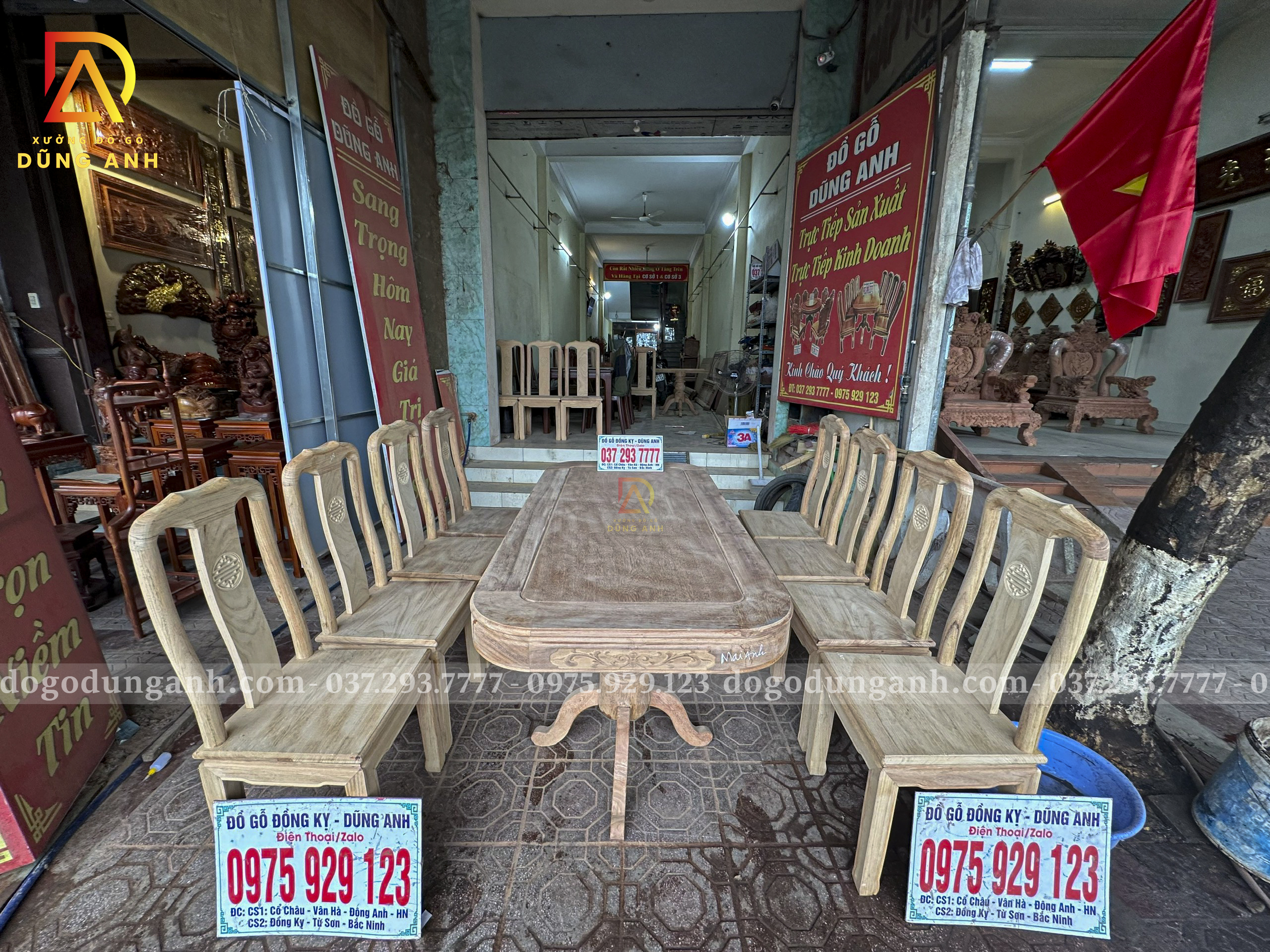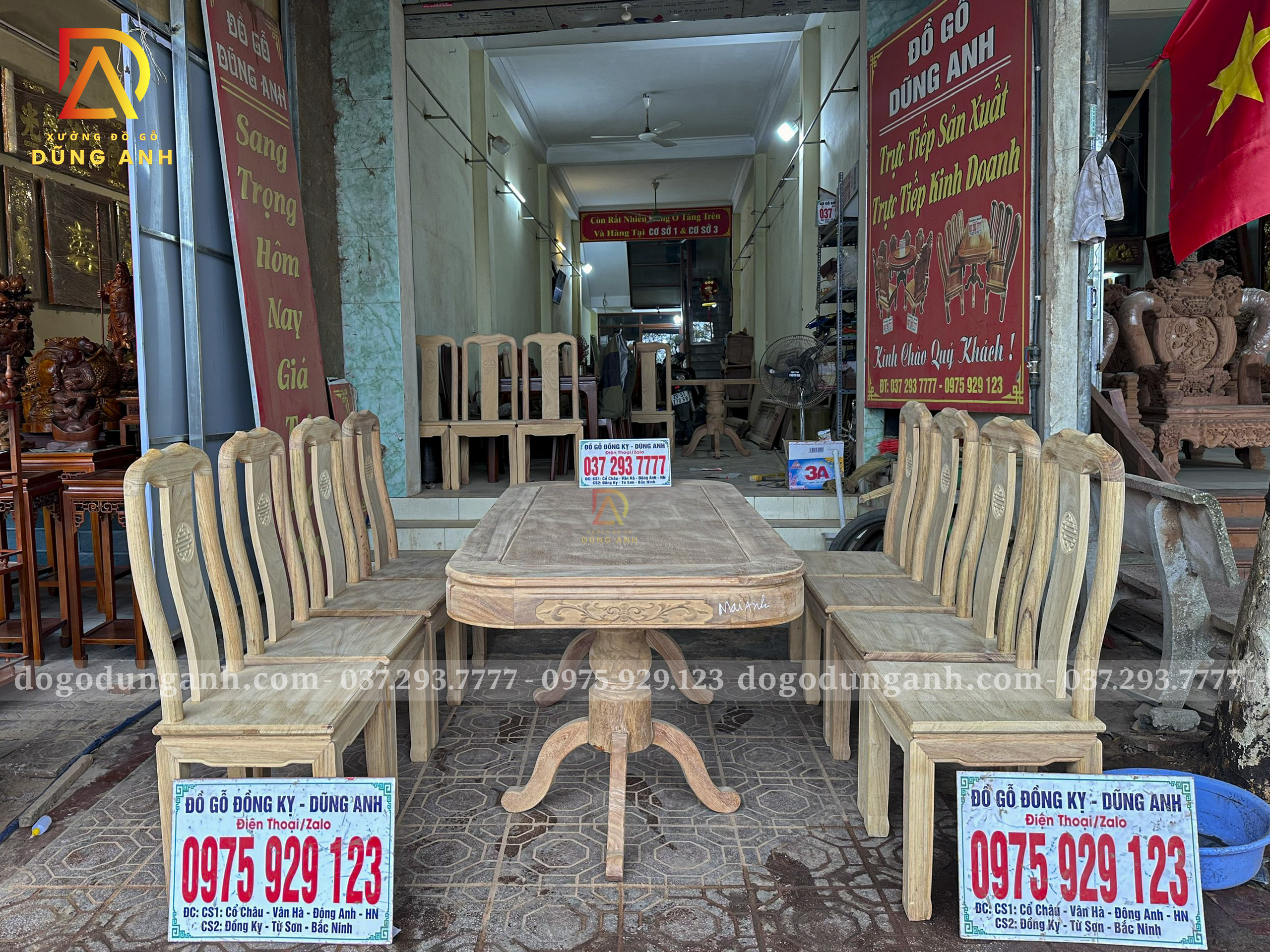 Quý khách có thể tham khảo thêm các mẫu bàn ghế ăn đẹp, bàn ghế ăn nguyên khối, các mẫu ghế ăn đẹp thì có thể liên hệ ngay với Xưởng đồ gỗ Dũng Anh qua: