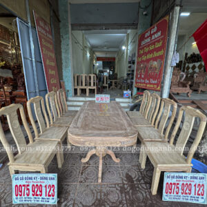 Đồ Gỗ Dũng Anh | Bộ 8 Ghế Triện Thọ + Bàn Chữ Nhật Yếm Bo | Gỗ Gõ Đỏ