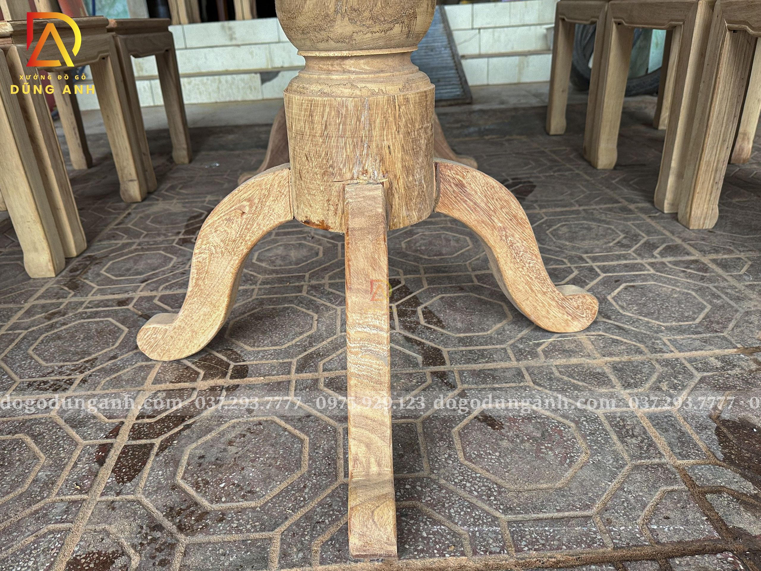 - Chân trụ đặc liền Nguyên Khối có kích thước bản vuông là 18 cm và được tiện tròn thủ công hoàn toàn bằng tay