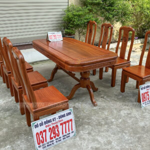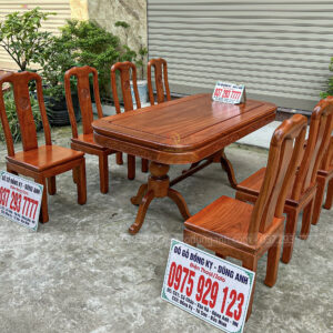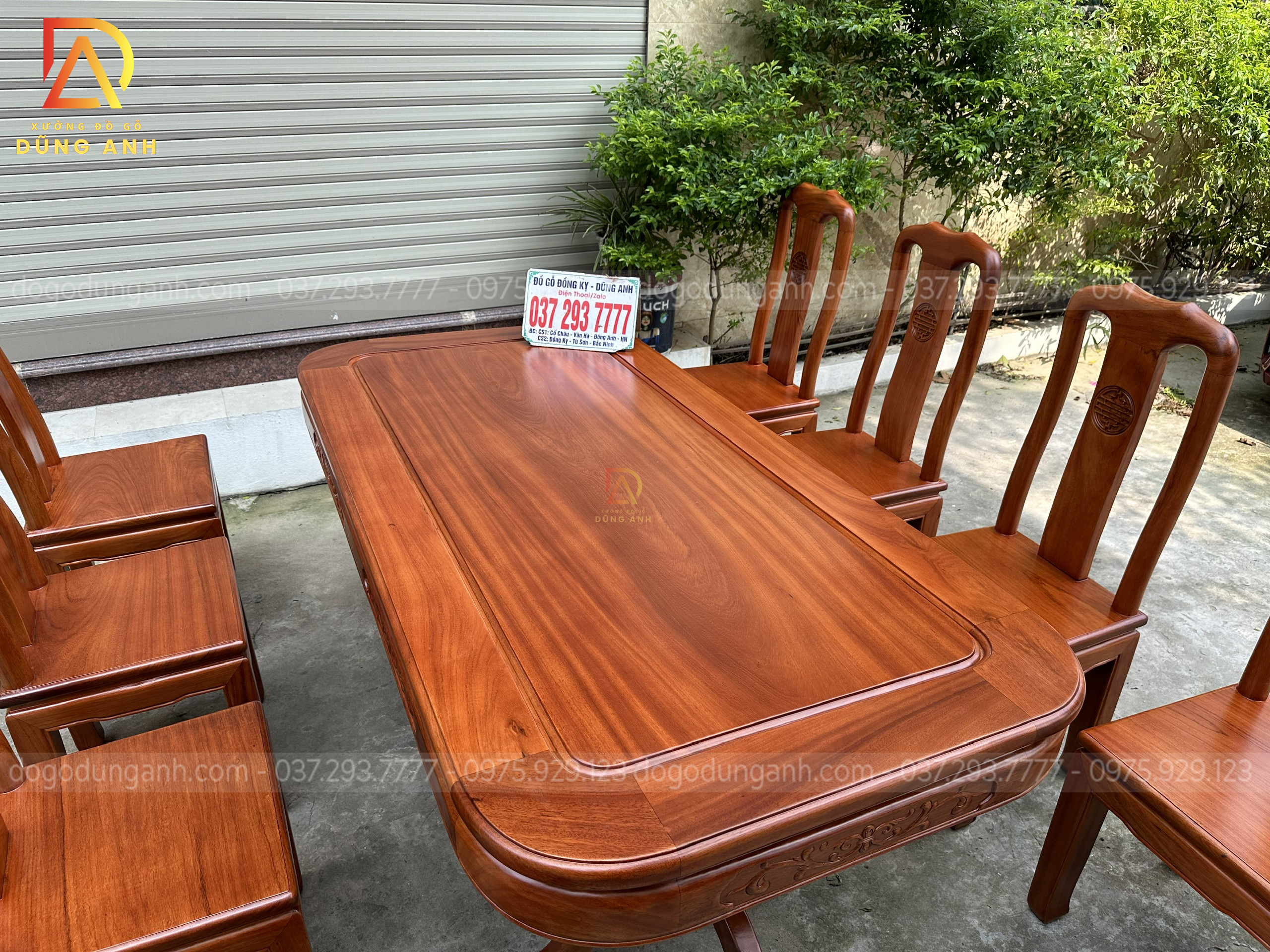 Đồ Gỗ Dũng Anh | Bộ 8 Ghế Triện Thọ + Bàn Chữ Nhật Yếm Vén | Gỗ Gõ Đỏ