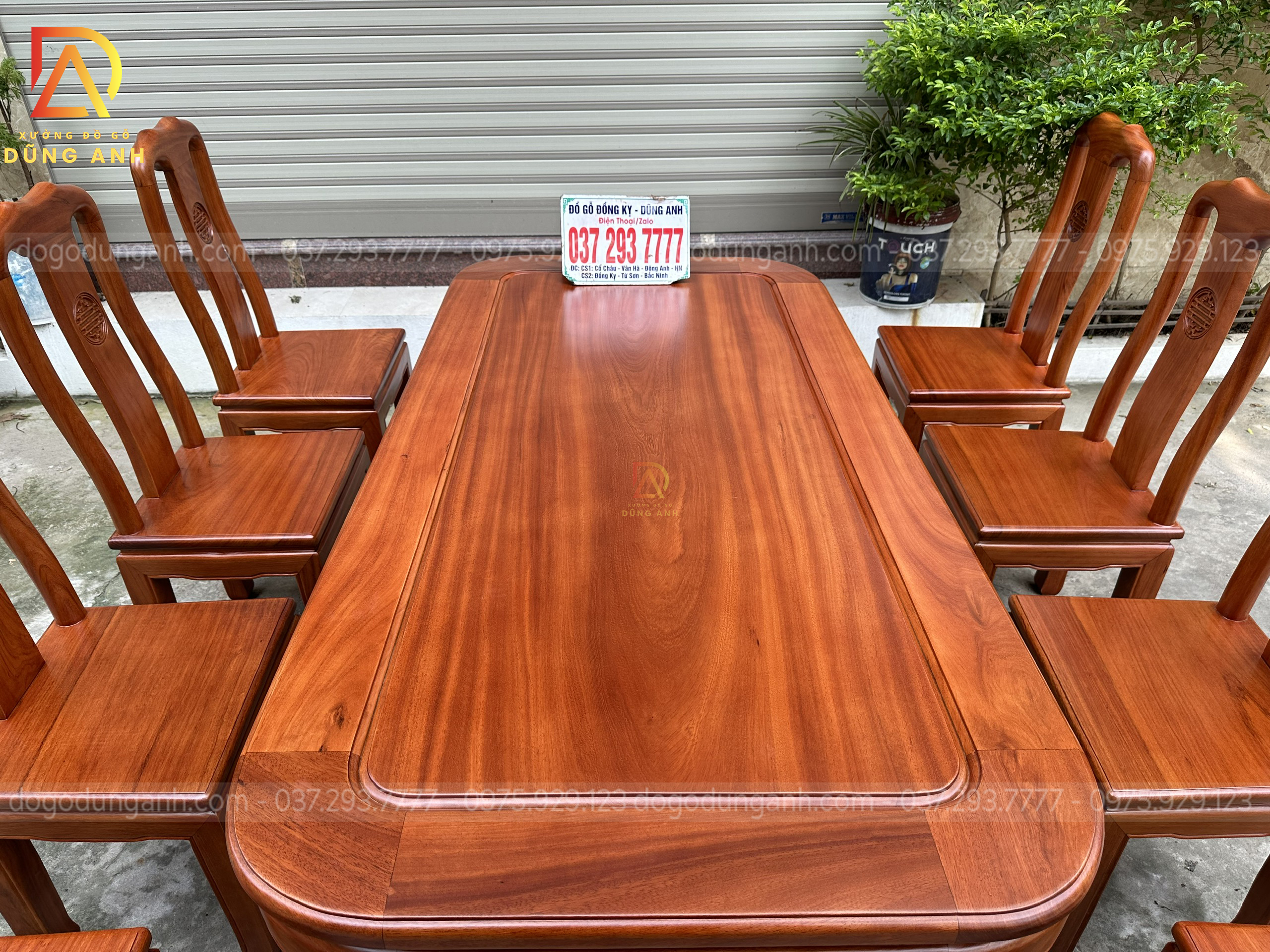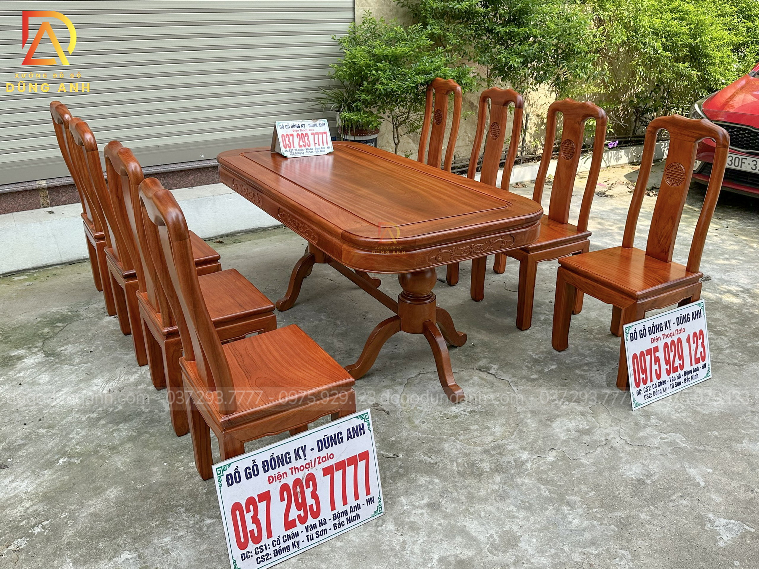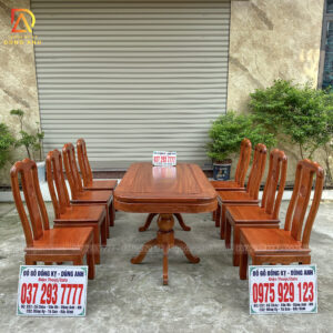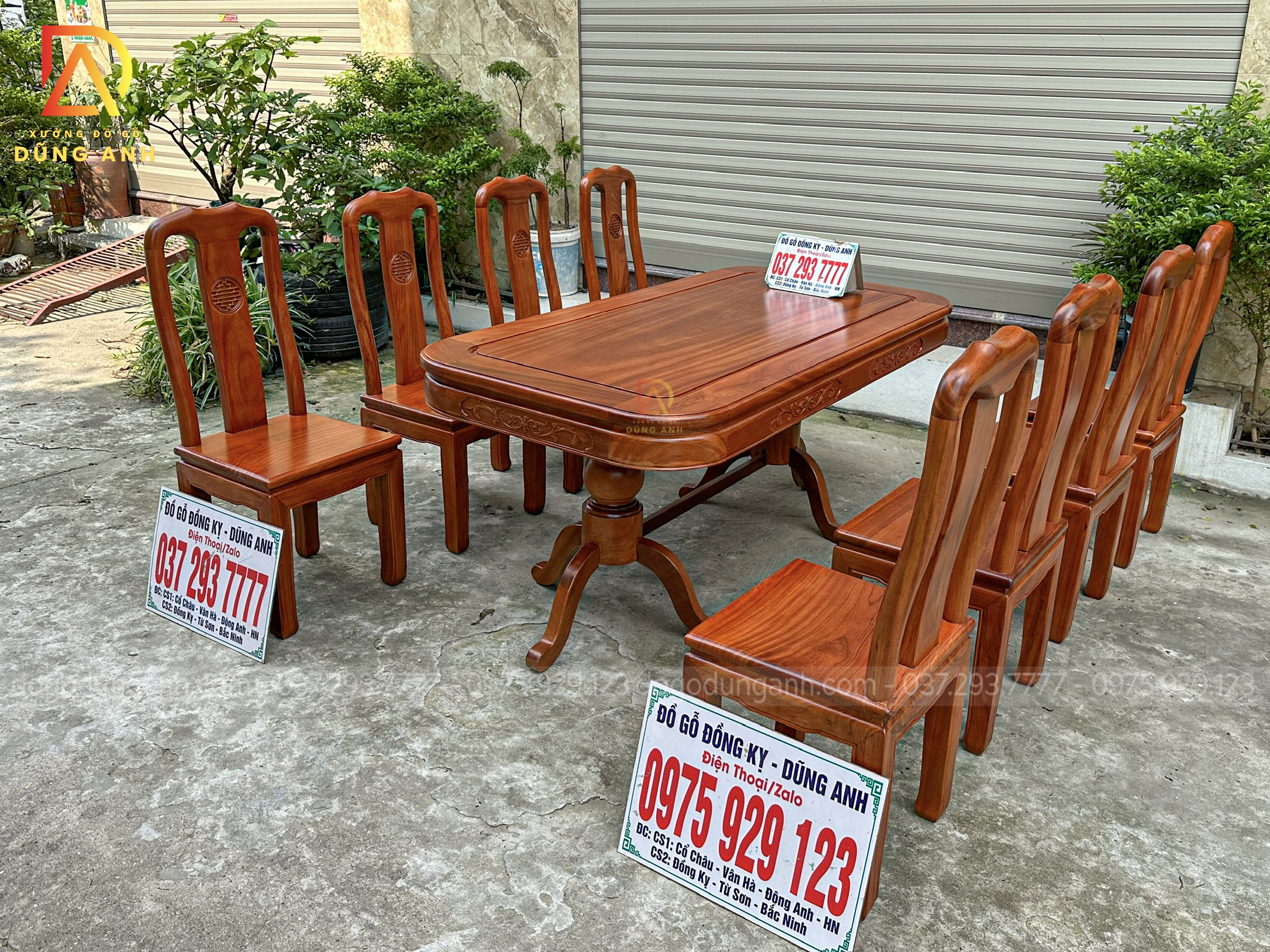 Bộ bàn ăn 8 ghế được chế tác từ chất liệu gỗ gõ đỏ tự nhiên