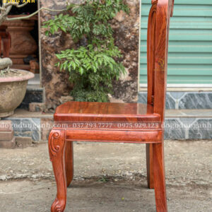 Kích thước lớn, form dáng chắc khỏe, giúp ghế đứng vững, bền bỉ khi sử dụng lâu dài. Các mộng ghép được làm chuẩn xác, đảm bảo độ chắc chắn và chống rung lắc. Tổng thể chiếc ghế vừa bề thế, đẳng cấp, vừa gần gũi, ấm cúng, xứng đáng là điểm nhấn nổi bật cho phòng ăn sang trọng.