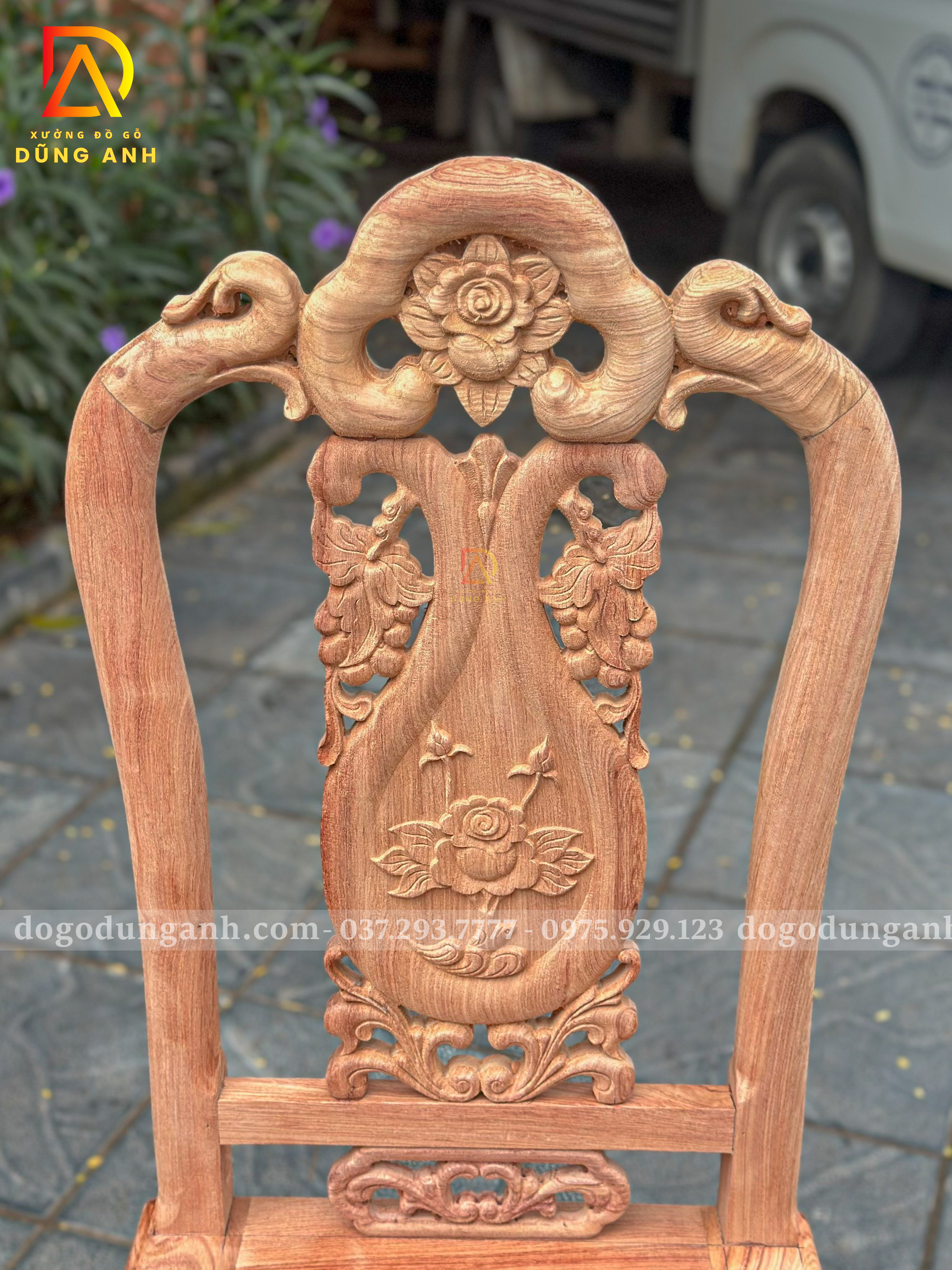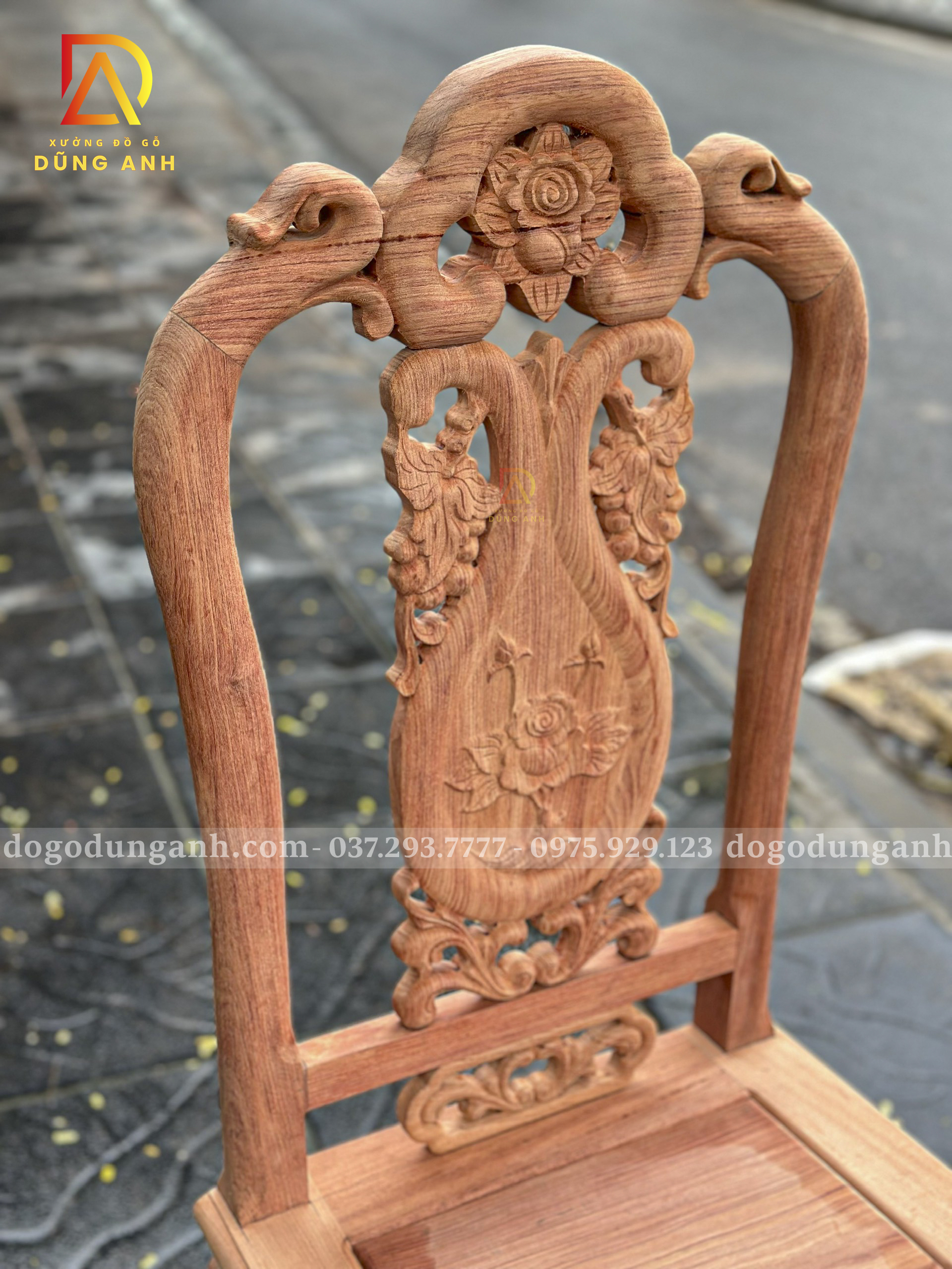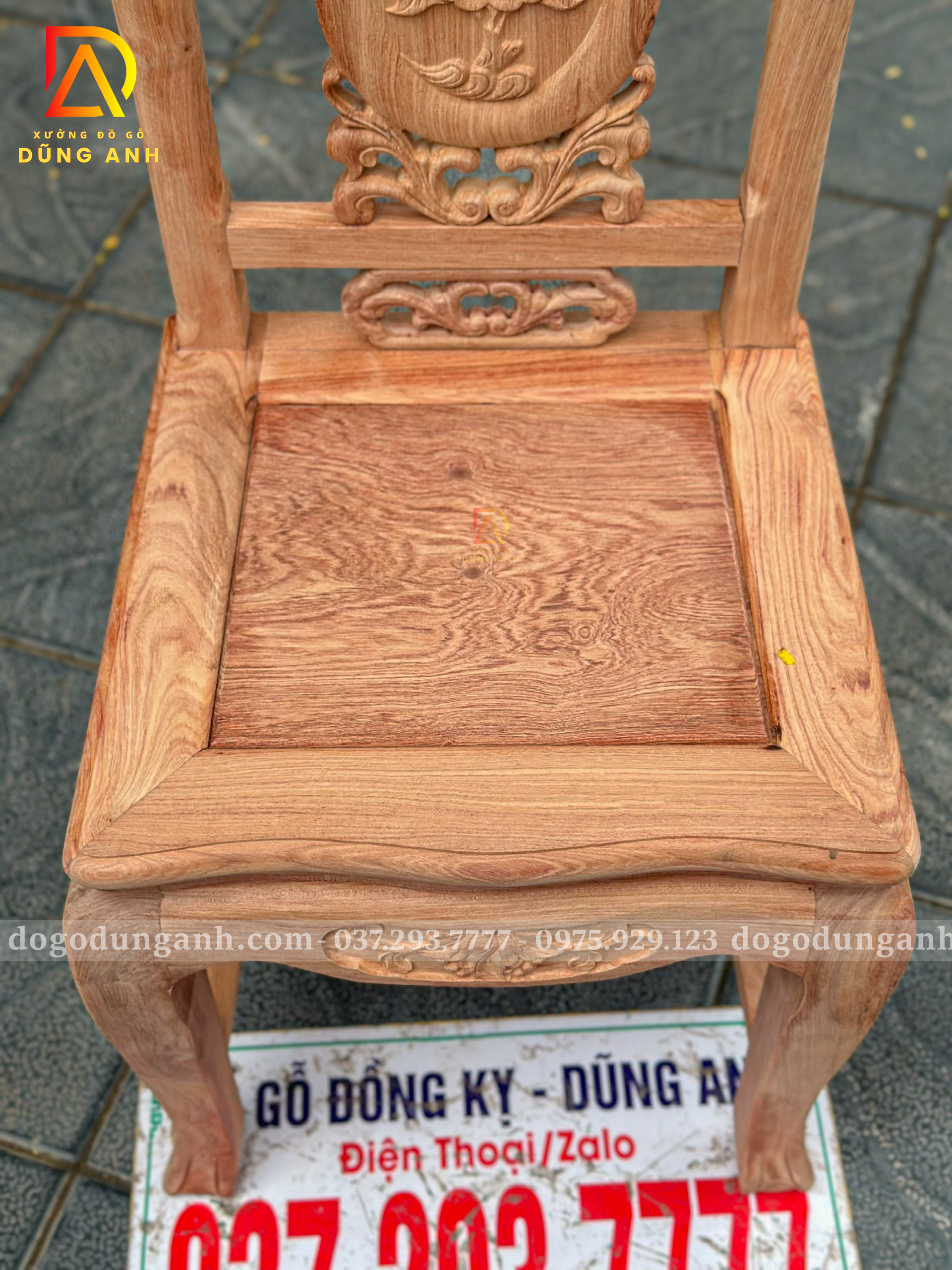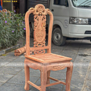 ✅ Kiểu dáng: Ghế tựa liền chạm hoa văn tinh xảo, dáng cao thoáng, tựa cong nhẹ ôm lưng, form ghế cân đối sang trọng.