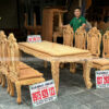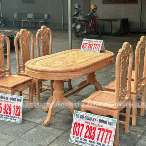 Xưởng vừa hoàn thiện phần mộc thô Bộ bàn ăn 6 Ghế Chương Hồng Vách Nho kết hợp Bàn Chữ Nhật Ovan Siêu Vân bằng gỗ hương đá