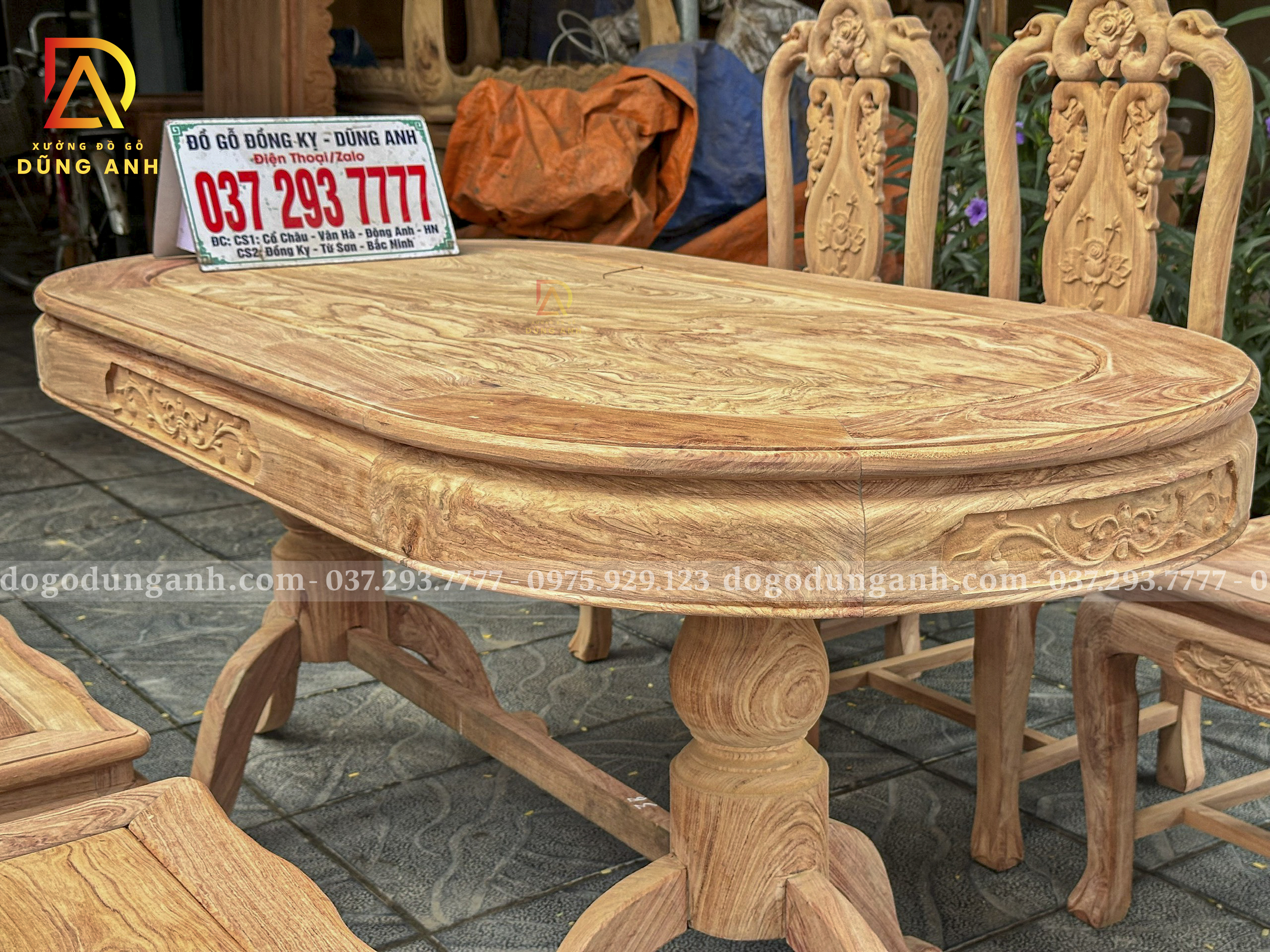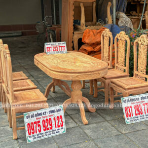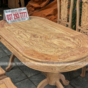 ✅ Bàn oval: Mặt bàn dày chạm hoa lá tây tinh tế, chân bàn kiềng đấu vững chắc, thiết kế mềm mại, tiện dụng cho 6 ghế