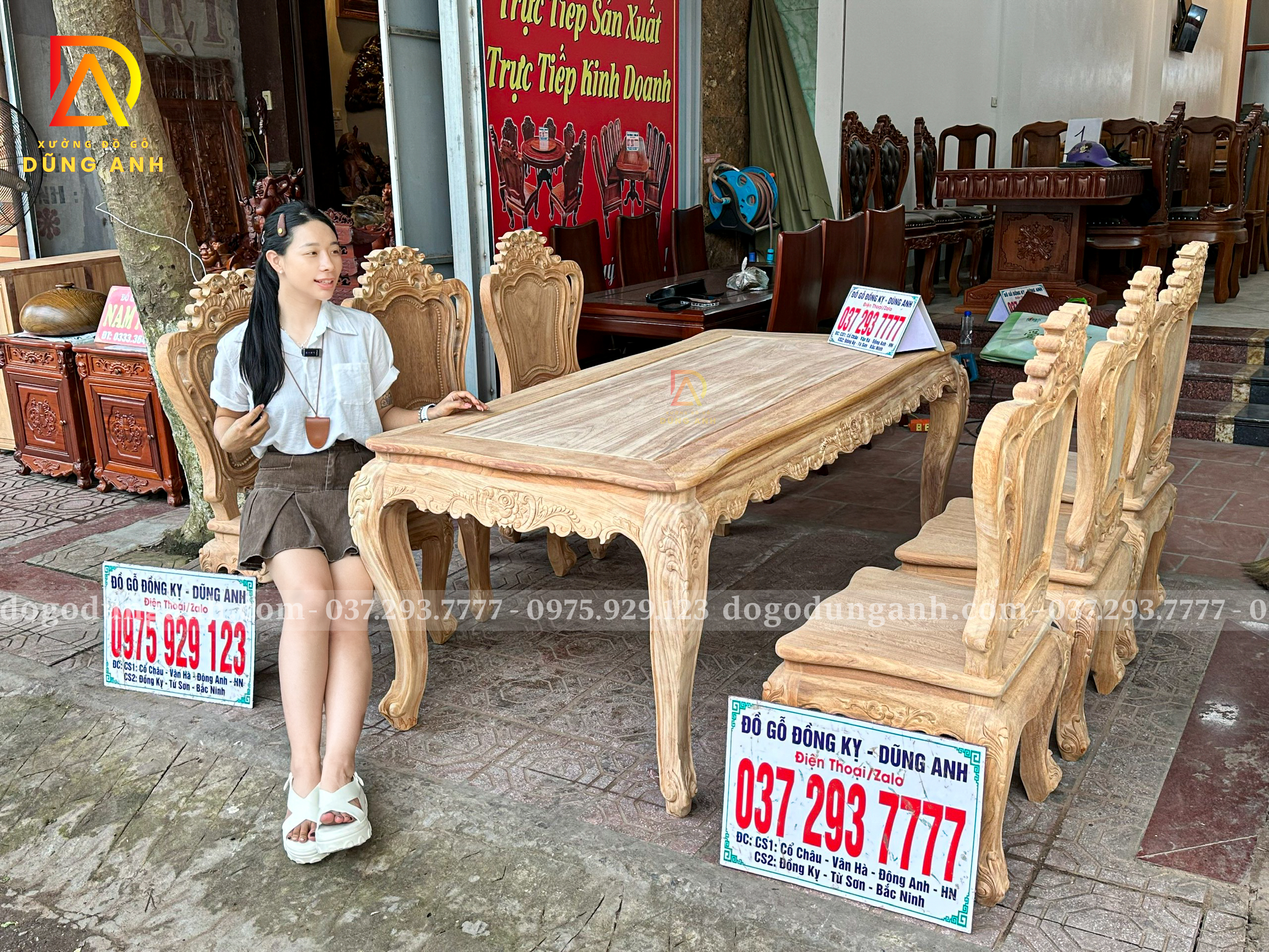 Đồ Gỗ Dũng Anh | Bộ Bàn Ăn 6 Ghế Louis Hoàng Gia Kết Hợp Bàn Củ Lạc – Gỗ Gõ Đỏ Pachy