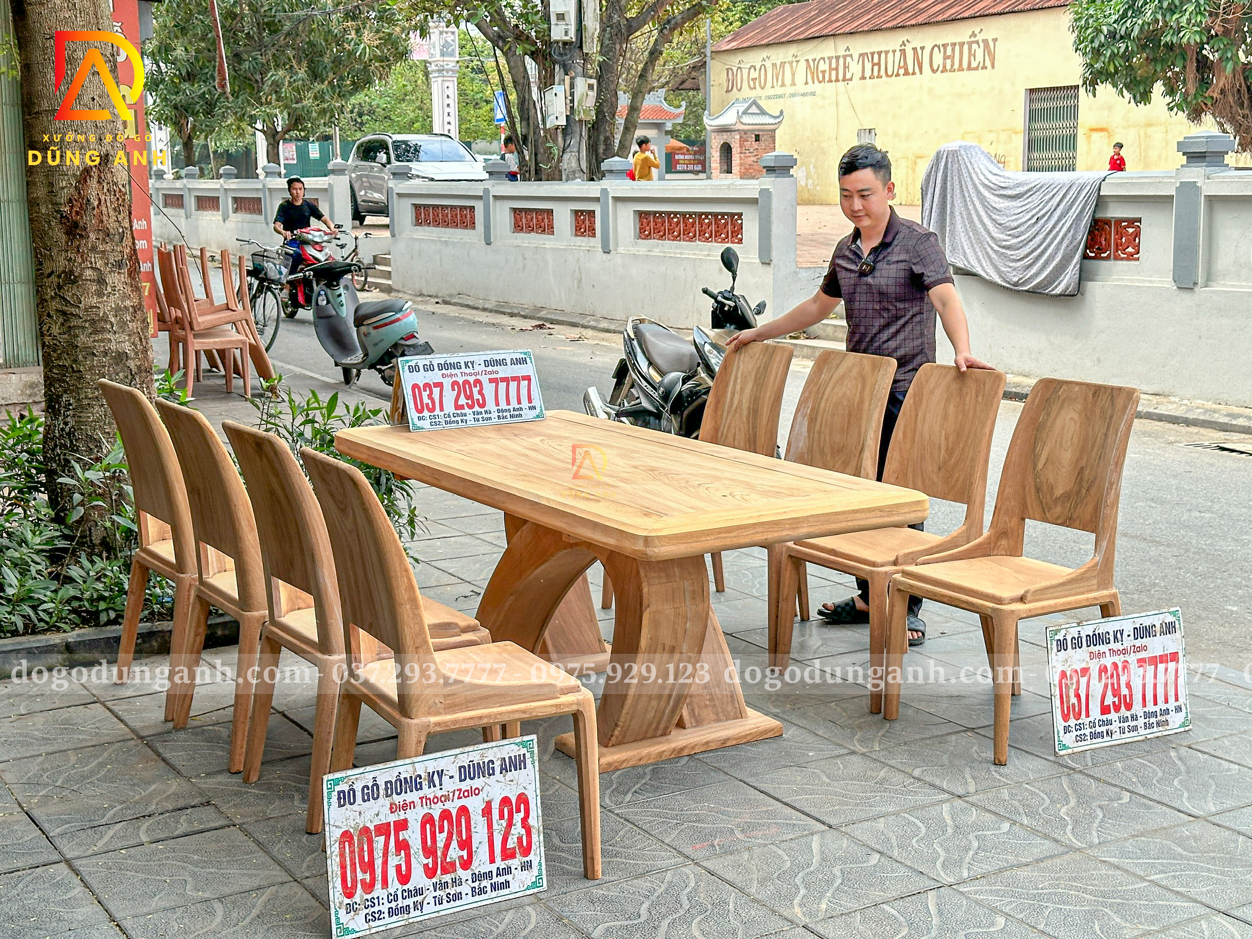 Đồ Gỗ Dũng Anh | Bộ Bàn Ăn 8 Ghế Cánh Tiên – Bàn Chữ Nhật Hiện Đại Chân Cánh Tiên Sang Trọng