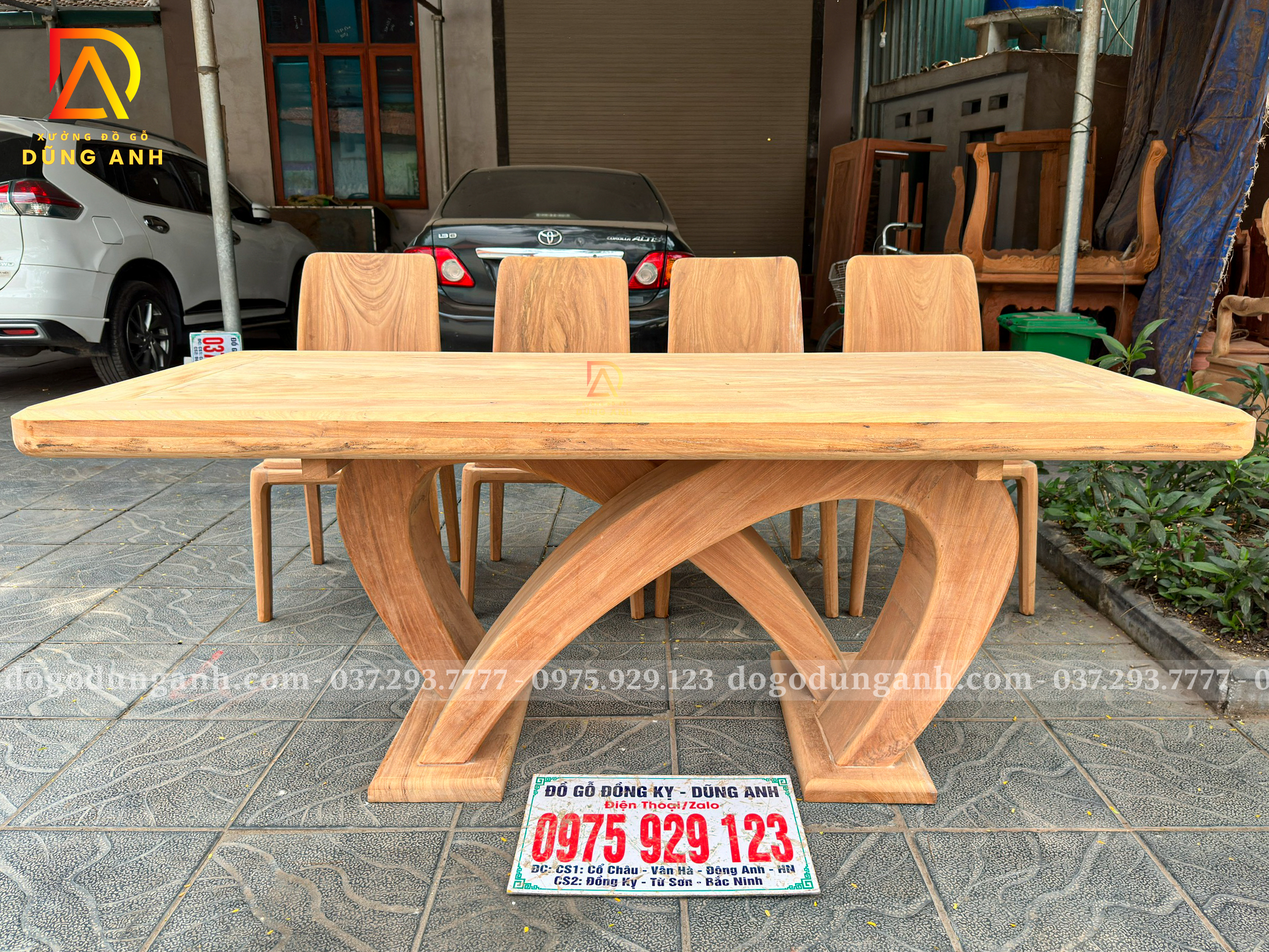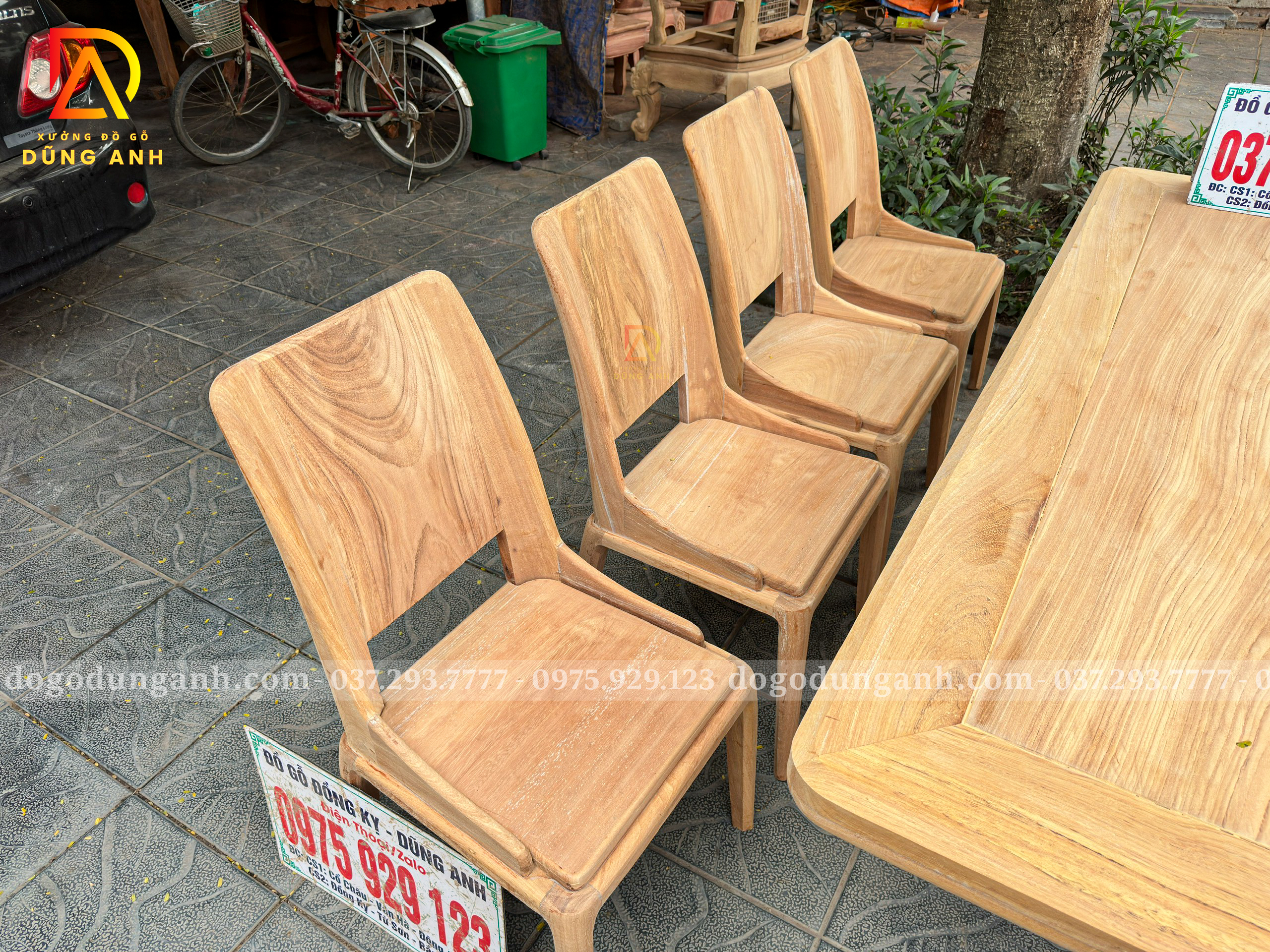 Bộ bàn ăn mẫu cánh tiên được chế tác từ gỗ gõ đỏ tự nhiên, nổi bật với hệ vân sắc nét, đều và sâu, mang lại cảm giác ấm cúng nhưng không kém phần quyền quý.