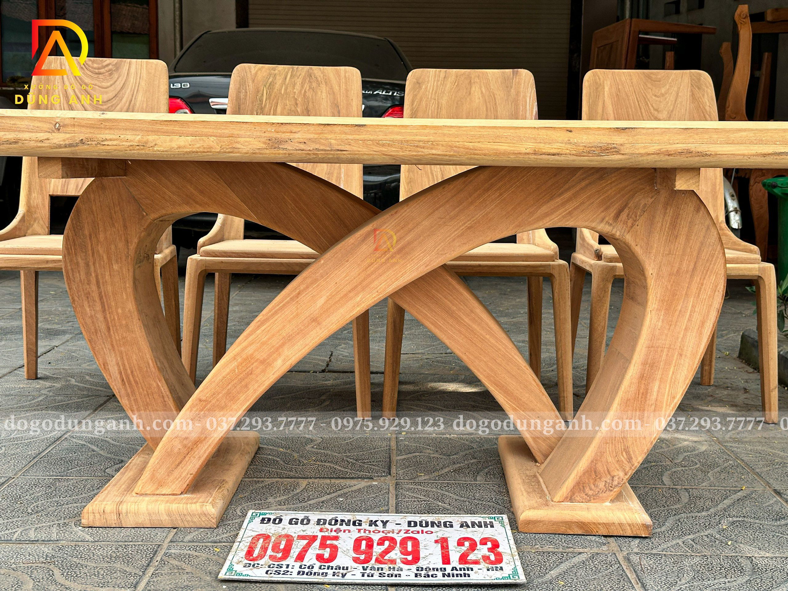 - Các nan chân đan chéo tinh tế, tạo nên bố cục cân đối, vừa mang tính nghệ thuật cao vừa đảm bảo khả năng chịu lực vượt trội. Tổng thể chân trụ to bản, bề thế, góp phần tôn lên sự sang trọng và đẳng cấp cho toàn bộ bộ bàn ăn.