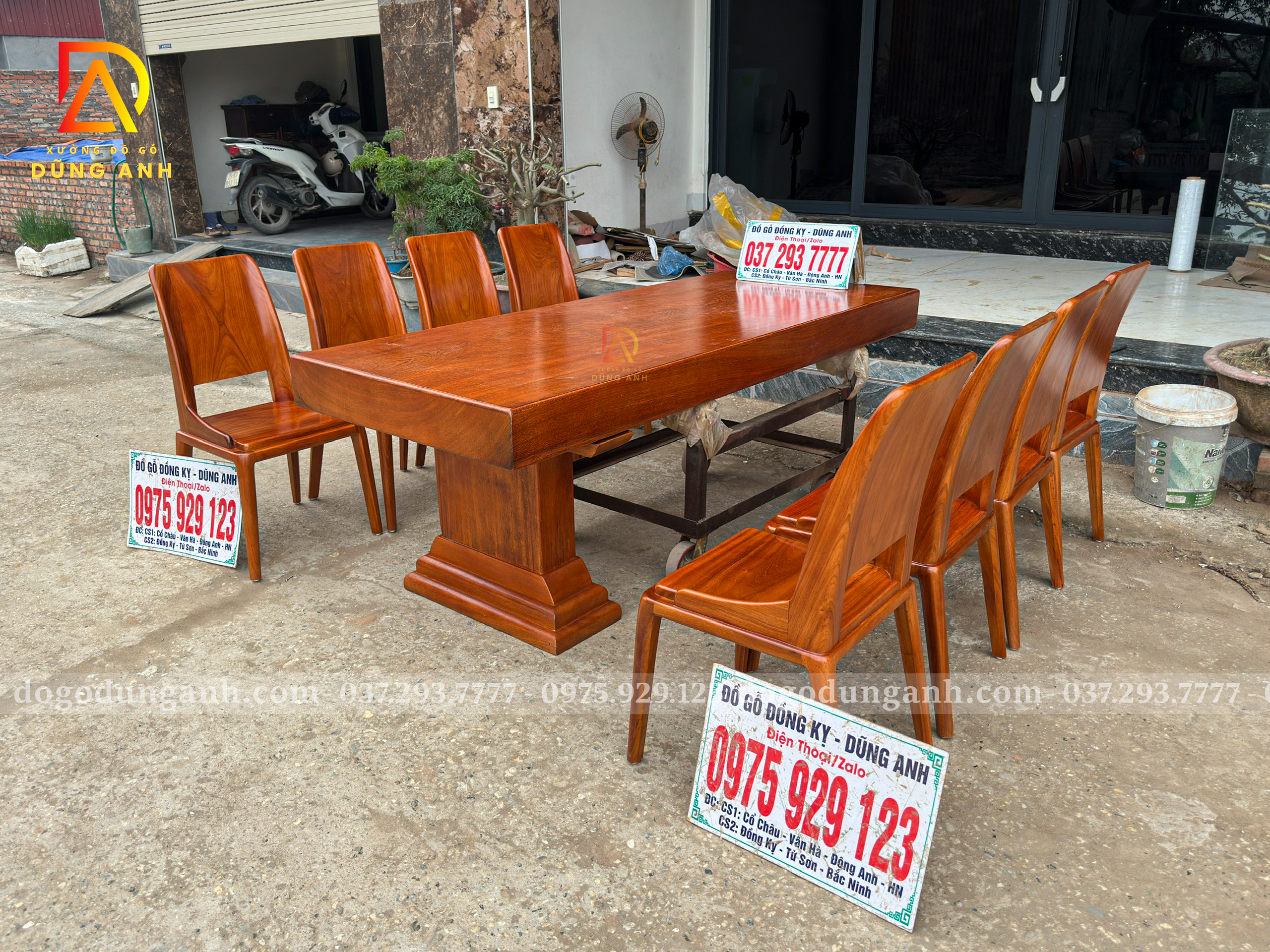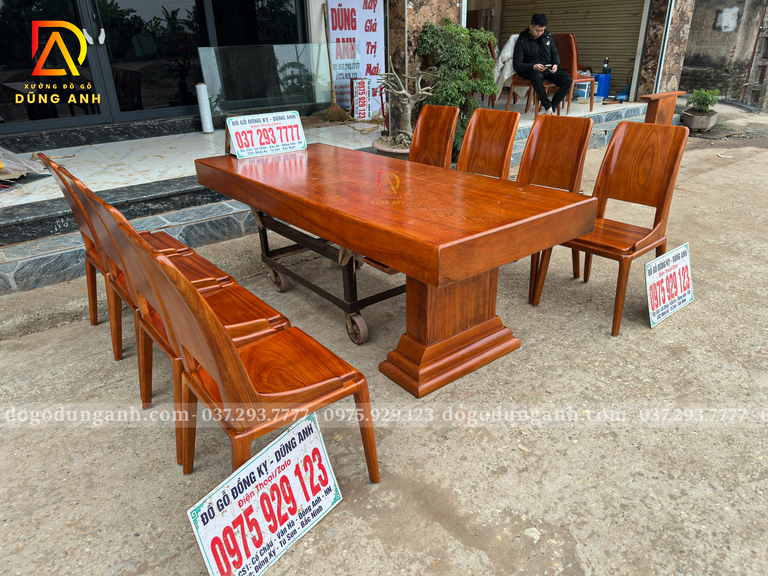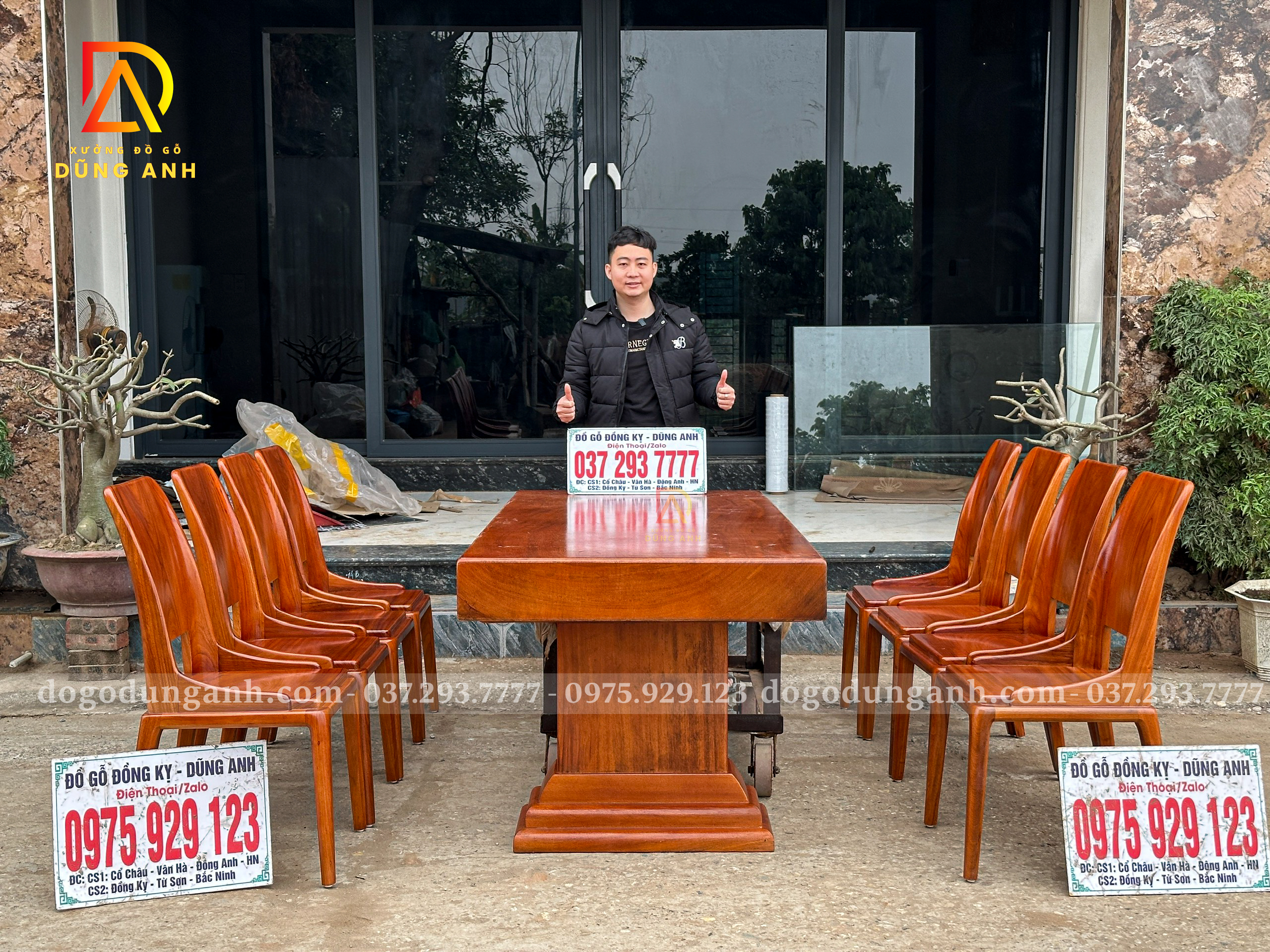 Đồ Gỗ Dũng Anh | Bộ Bàn Ăn 8 Ghế Hiện Đại Cánh Tiên – Bàn Chữ Nhật Nguyên Khối – Gỗ gõ đỏ