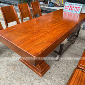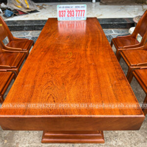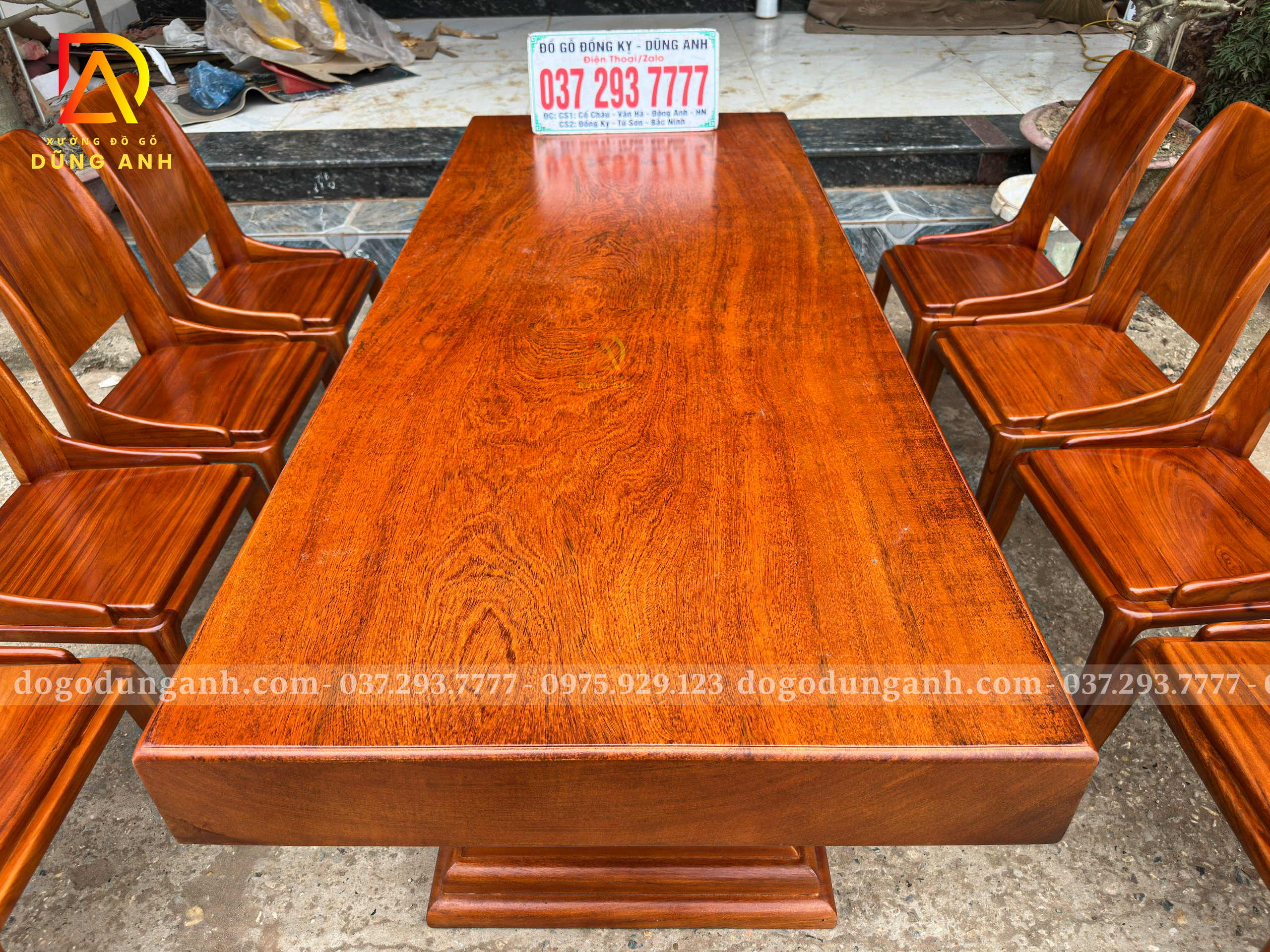 Bộ bàn ăn 8 ghế được chế tác hoàn toàn từ gỗ Gõ Đỏ tự nhiên, nổi bật với vẻ đẹp sang trọng, vân gỗ tinh tế và độ bền vượt trội theo thời gian. Từng chi tiết được hoàn thiện tỉ mỉ, mang lại cảm giác chắc chắn, bề thế và đẳng cấp cho không gian phòng ăn.