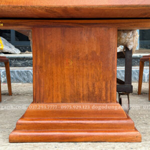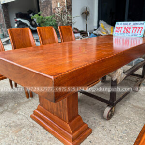 Chiếc bàn nguyên khối được chế tác từ gỗ gõ đỏ nam phi tuyển chọn, chỉ dùng những tấm gỗ có vân đẹp, sắc nét và đồng đều. Mỗi đường vân là một nét riêng không lặp lại, tạo nên vẻ sang trọng tự nhiên mà không cần tô vẽ. Toàn bộ bề mặt bàn được xử lý kỹ lưỡng để đảm bảo độ ổn định, chống cong vênh, nứt tách theo thời gian. Không chỉ là một món nội thất, đây là một khối gỗ quý hiếm được giữ trọn hình dáng và tinh thần nguyên bản – chắc chắn, tinh tế và đậm chất tự nhiên. Một chiếc bàn không dành cho số đông, mà dành cho người biết nhìn và trân trọng giá trị thật