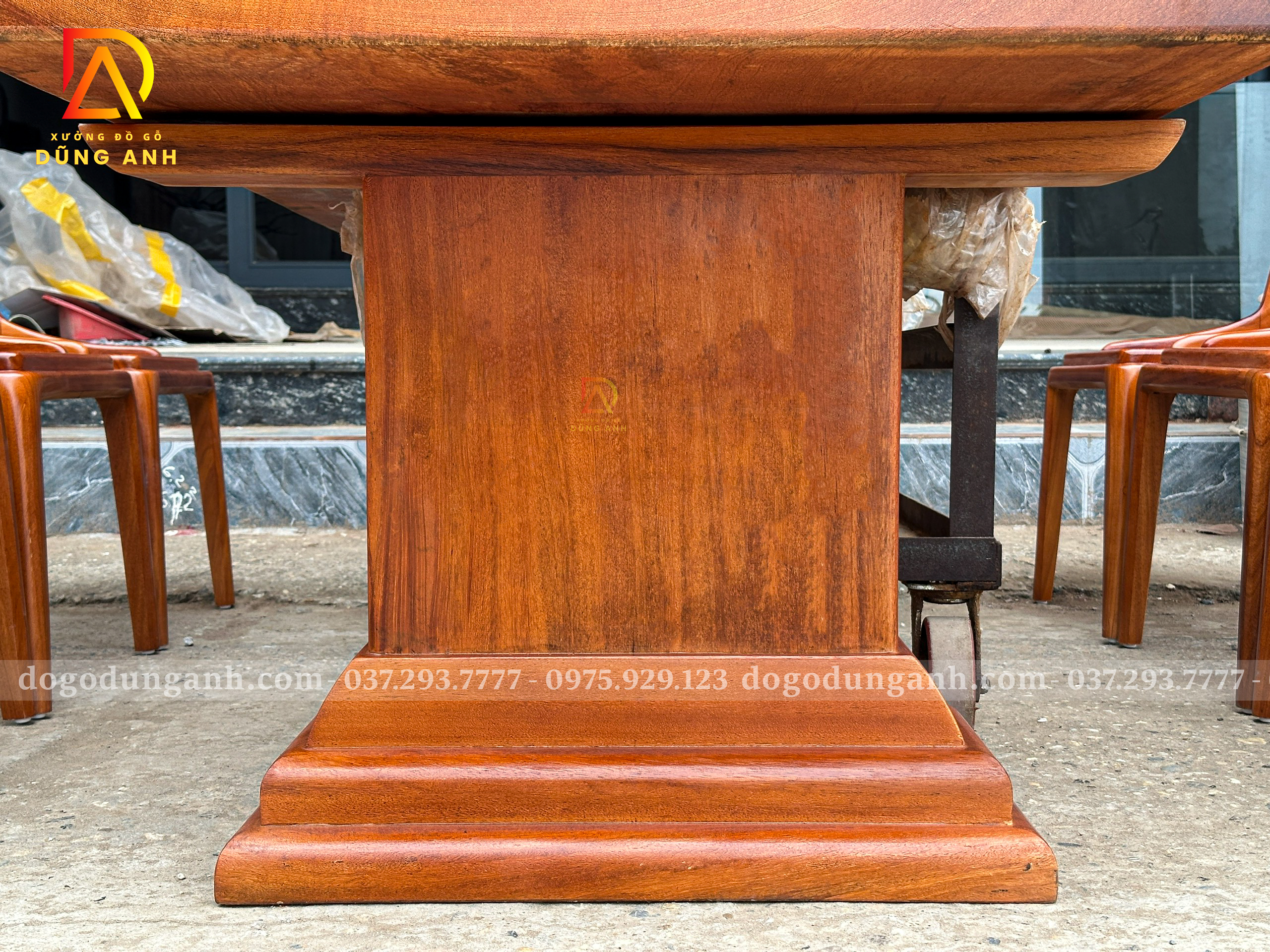 - Phần chân trụ nguyên khối được thiết kế bề thế, từng đường nét bo cong mềm mại nhưng vẫn toát lên sự mạnh mẽ và vững chãi. Khối chân lớn nâng đỡ mặt bàn nguyên khối dày dặn, tạo nên tổng thể đẳng cấp – chắc chắn – đầy giá trị