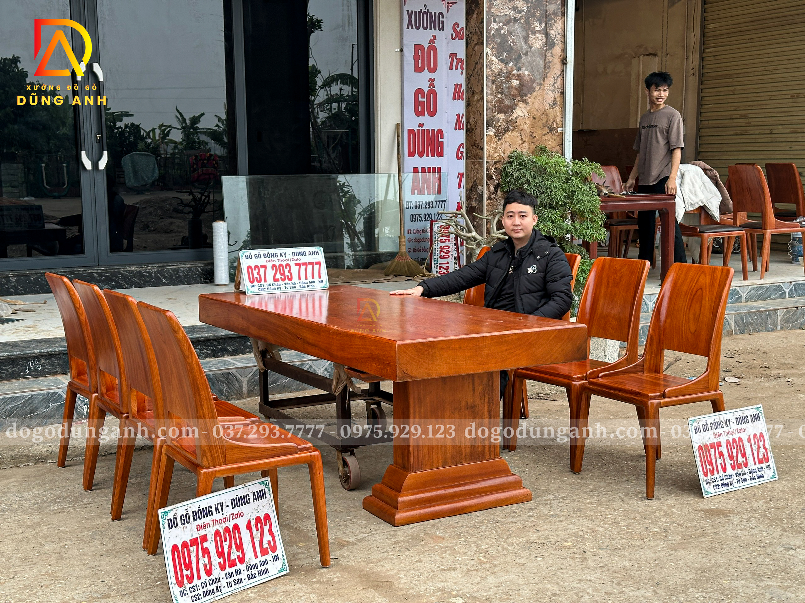 Như vậy, để có một tác phẩm đẹp, chắc chắn và có tính thẩm mỹ cao thì việc lựa chọn loại gỗ để đưa vào sản xuất không gian nội thất, đồ nội thất phải thật kỹ càng và có hiểu biết sâu về các loại gỗ để đánh giá được loại nào phù hợp nhất. Đồ Gỗ Dũng Anh đã chọn gỗ gõ đỏ . Đối với khách hàng của Đồ Gỗ Dũng Anh đa số là những người ở giới thượng lưu, họ đều là những người từng trải, giàu có và rất hiểu biết nên mỗi sản phẩm mà Xưởng Dũng Anh đưa ra đều có sự lựa chọn kỹ lưỡng nhất để bộc lộ được hết những tinh hoa mà toàn bộ xưởng đã đặt tâm huyết vào đó. Quý khách có thể tham khảo thêm các mẫu bàn ghế ăn đẹp, bàn ghế ăn nguyên khối, các mẫu ghế ăn đẹp thì có thể liên hệ ngay với Xưởng đồ gỗ Dũng Anh qua: