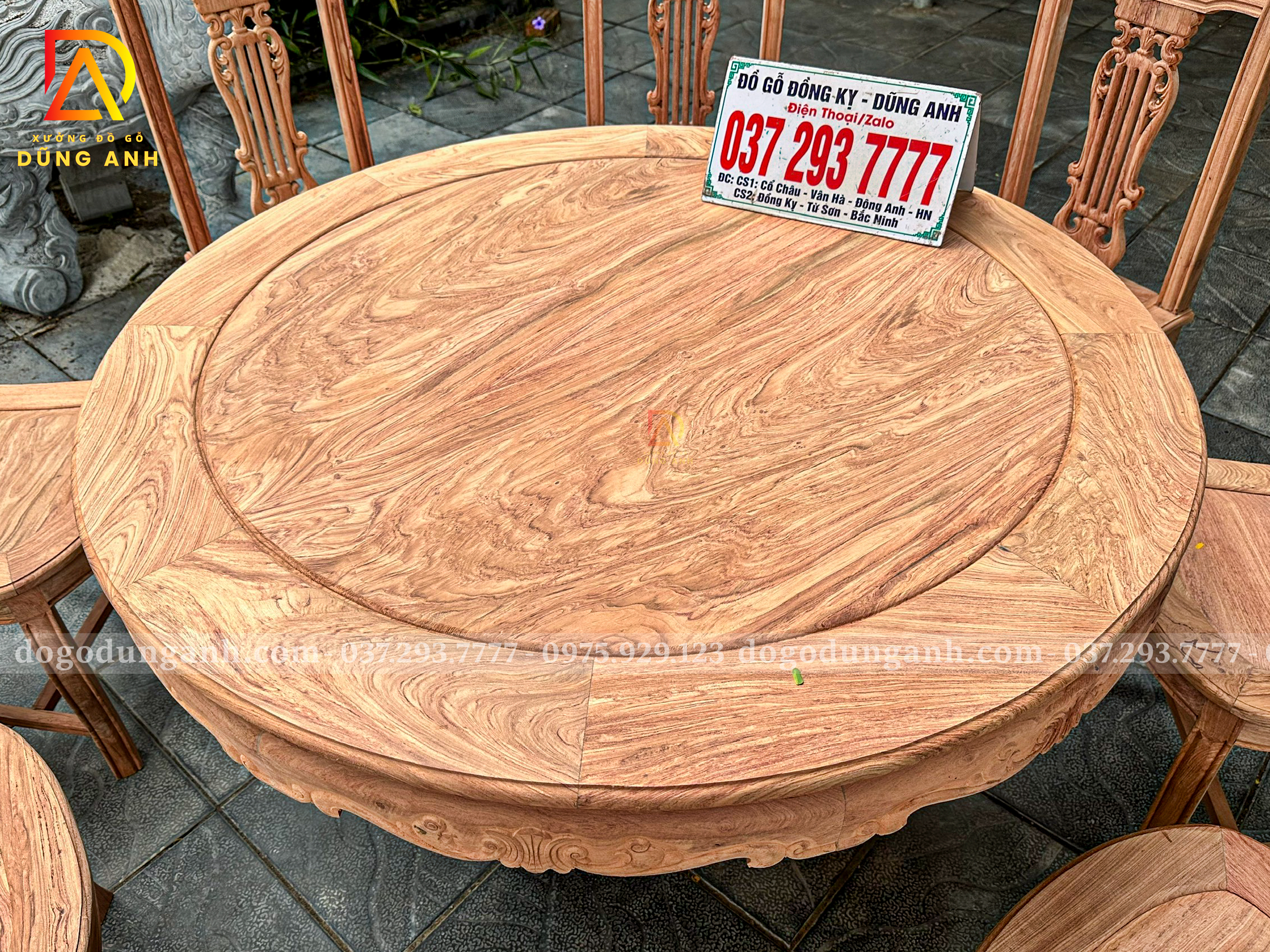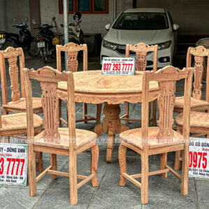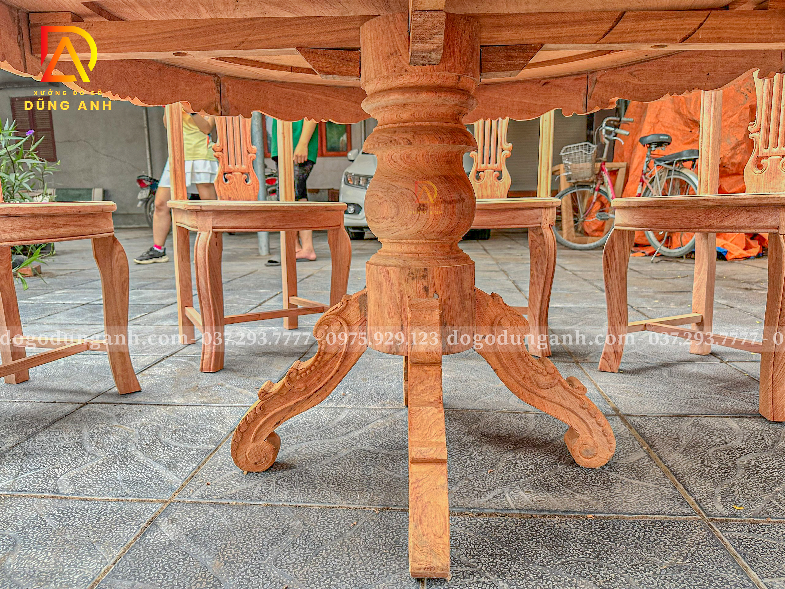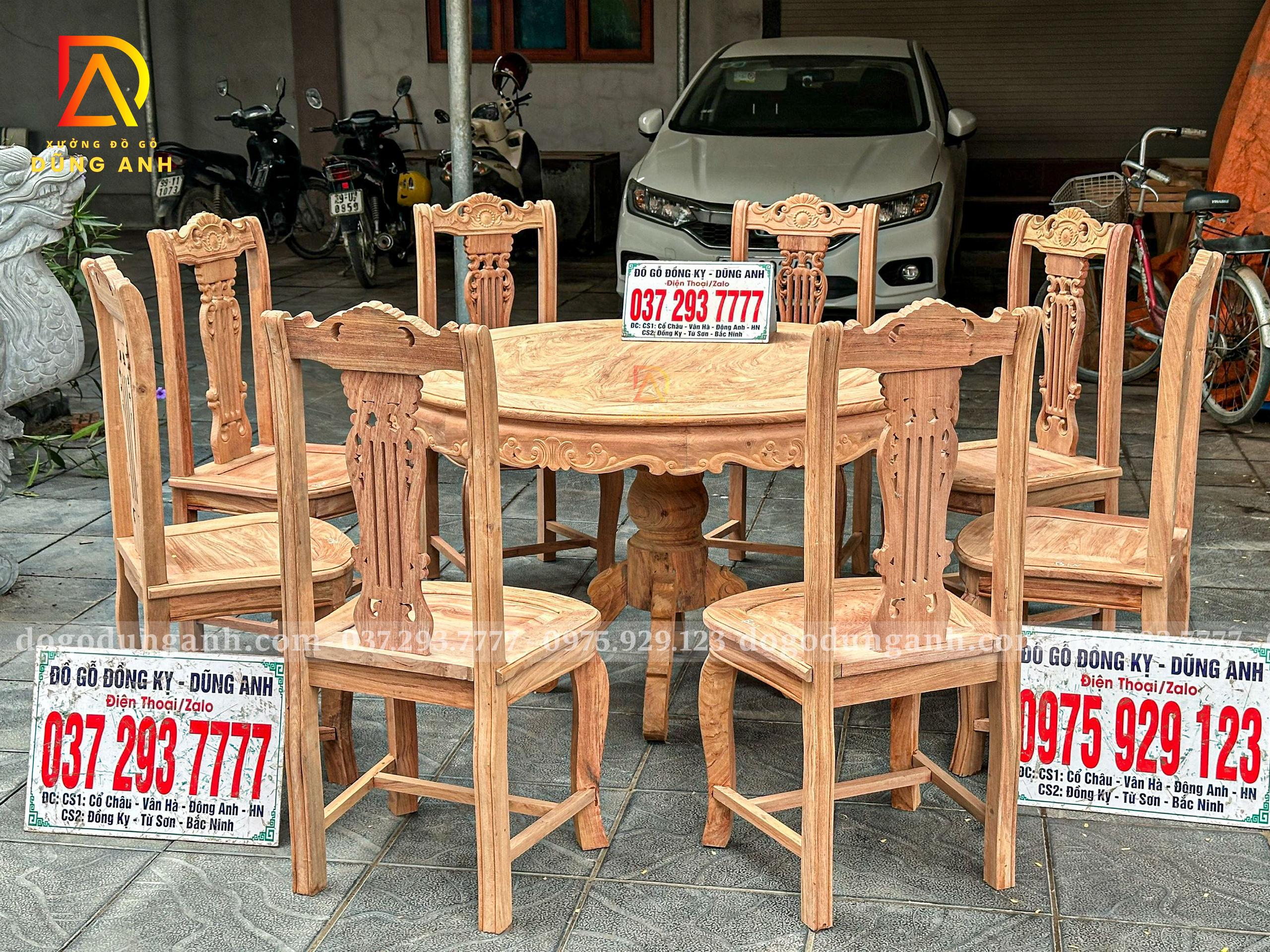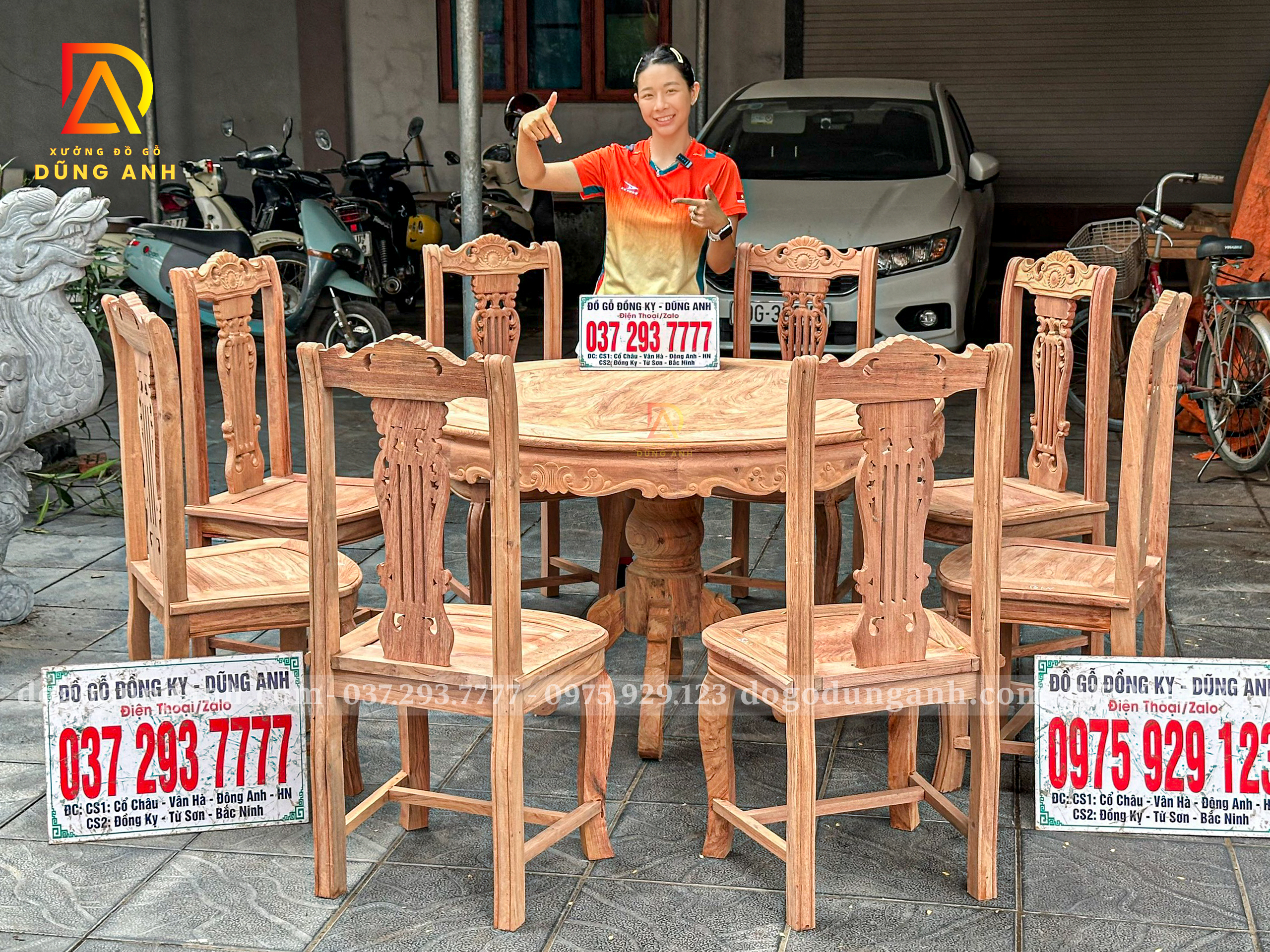 Đồ Gỗ Dũng Anh | Bộ bàn ăn 8 Ghế Cây Đàn kết hợp Bàn Tròn Yếm Vén – Gỗ Hương Đá