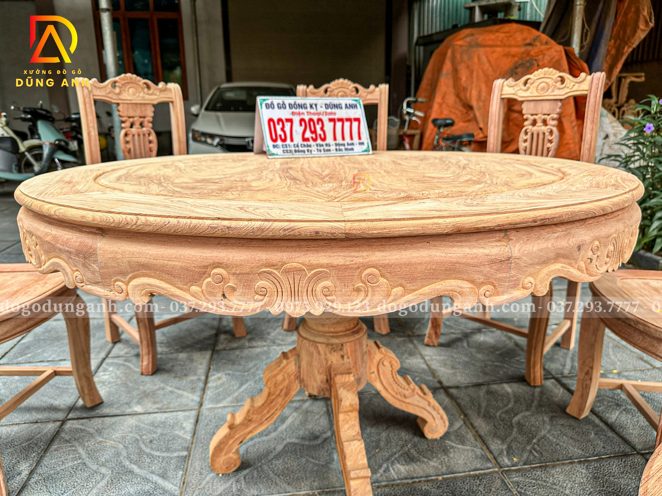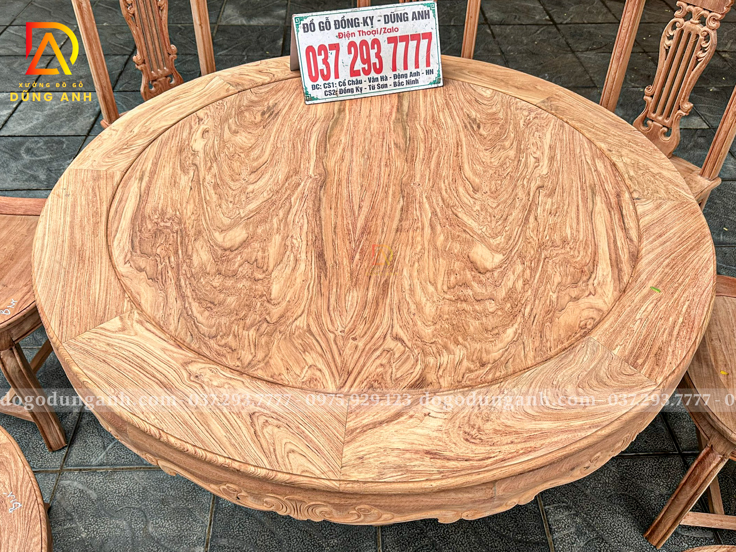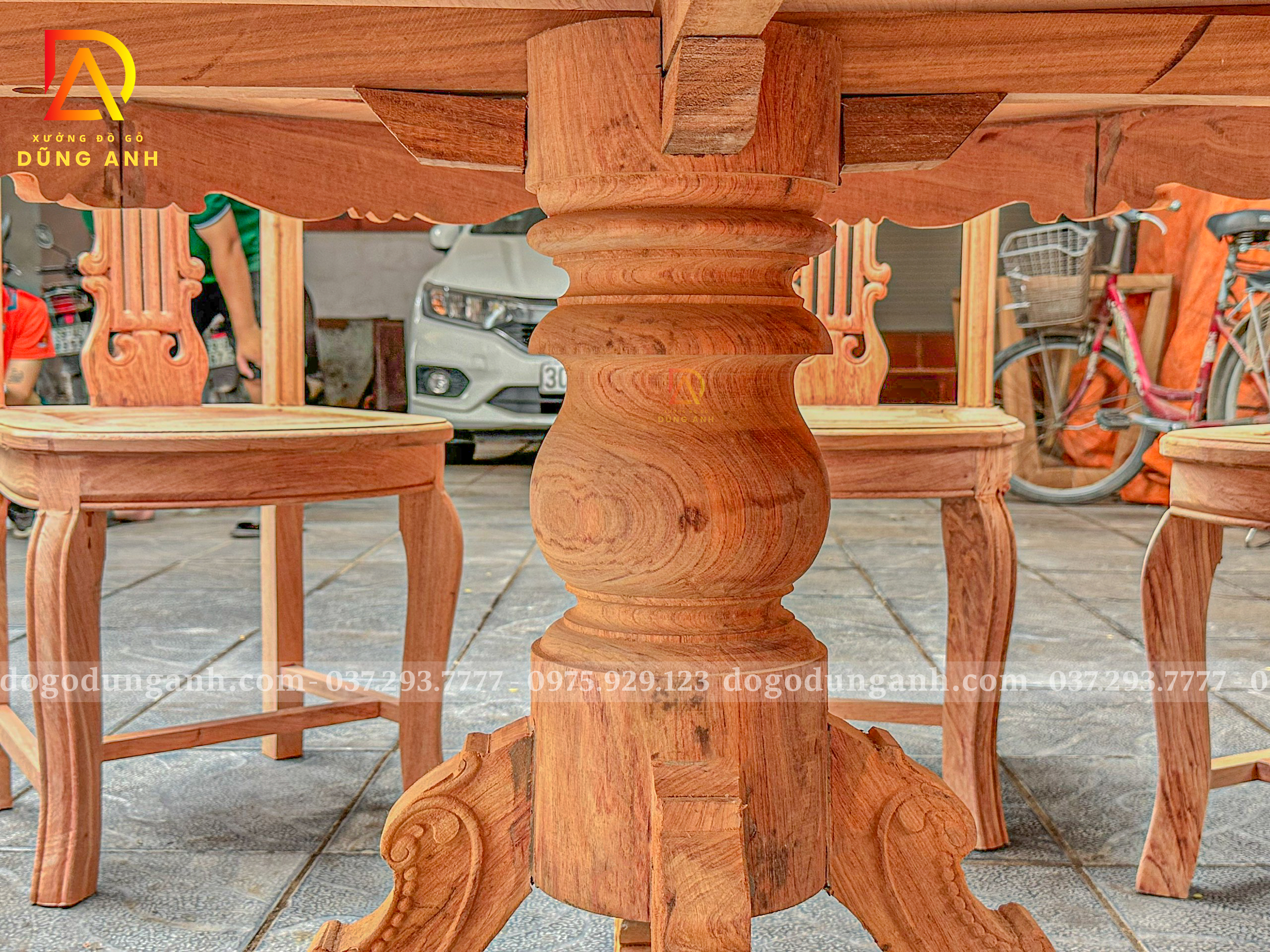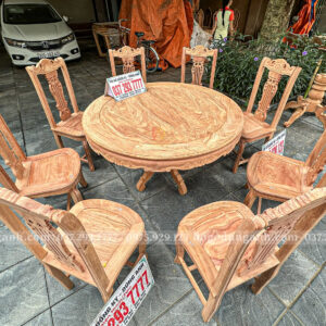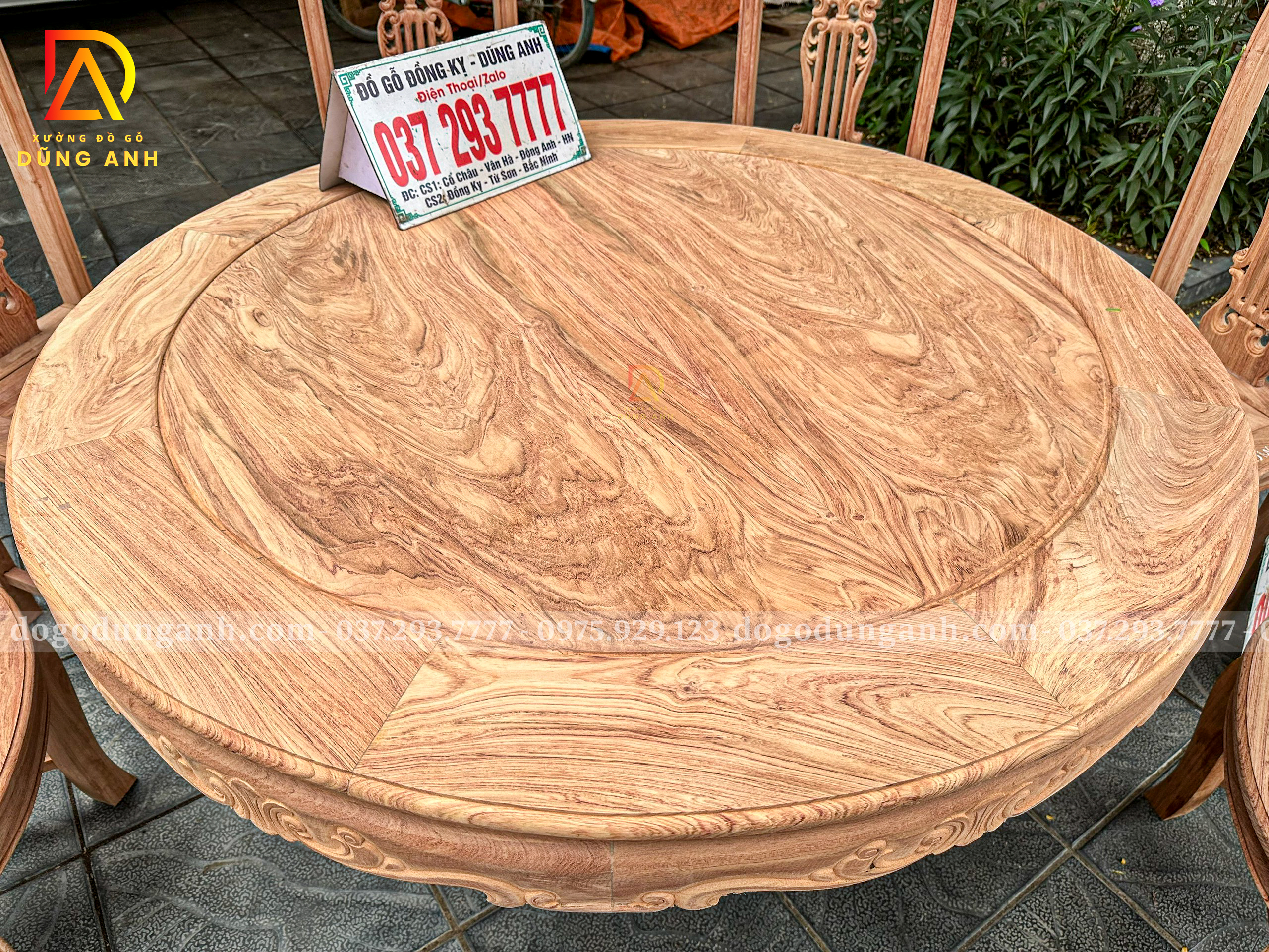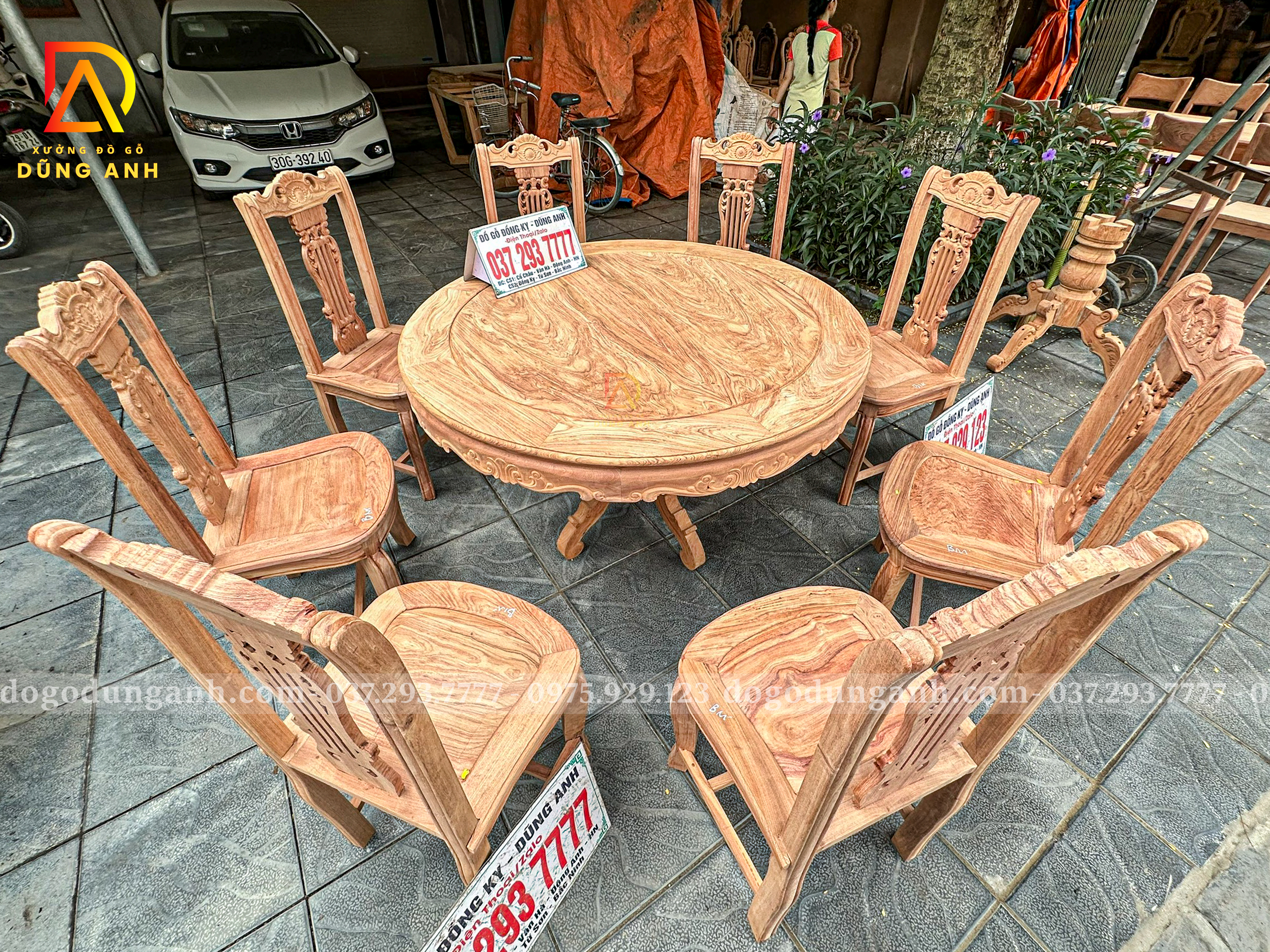 Đồ Gỗ Dũng Anh | Bộ bàn ăn 8 Ghế Cây Đàn kết hợp Bàn Tròn Yếm Vén – Gỗ Hương Đá
