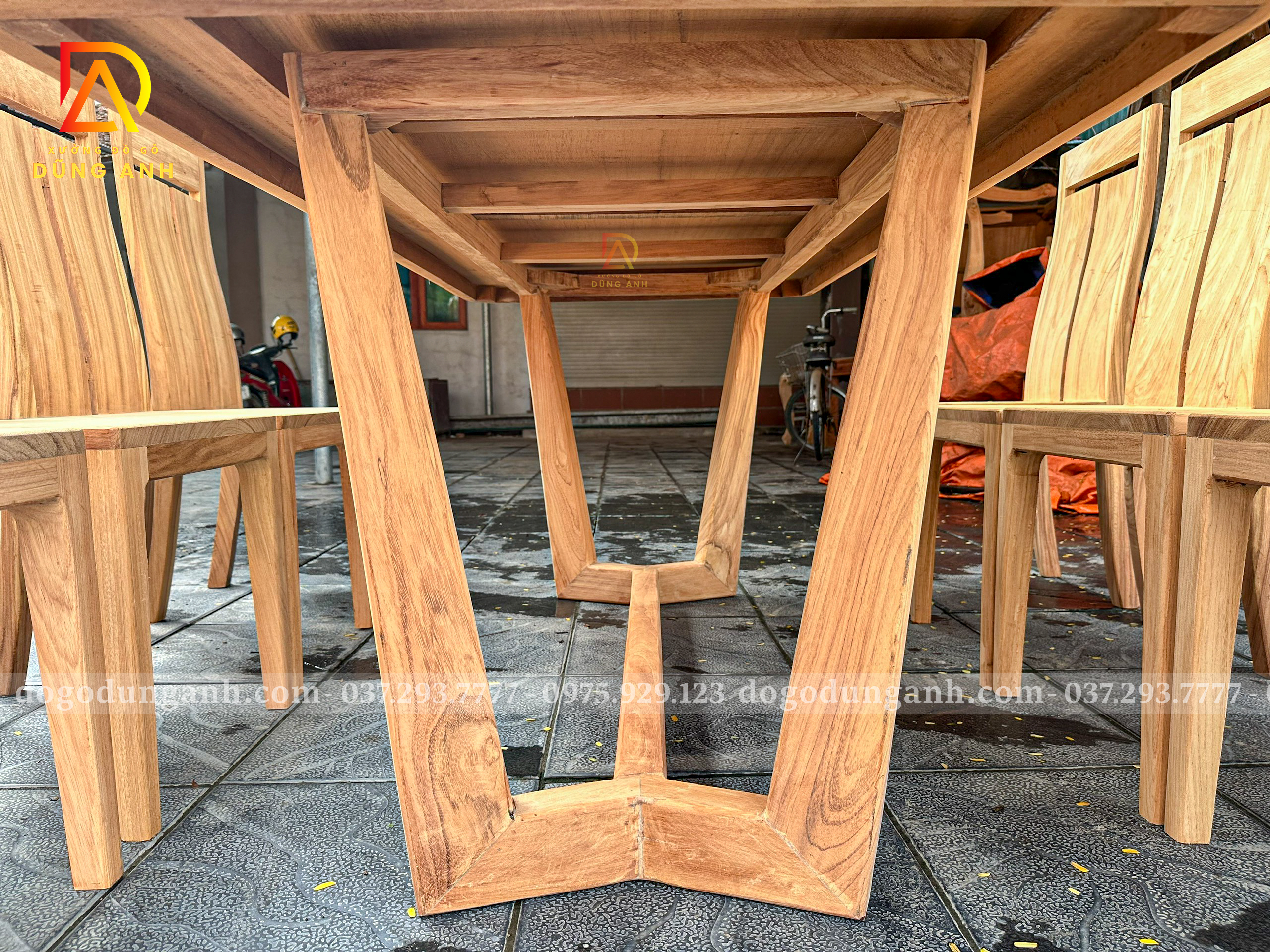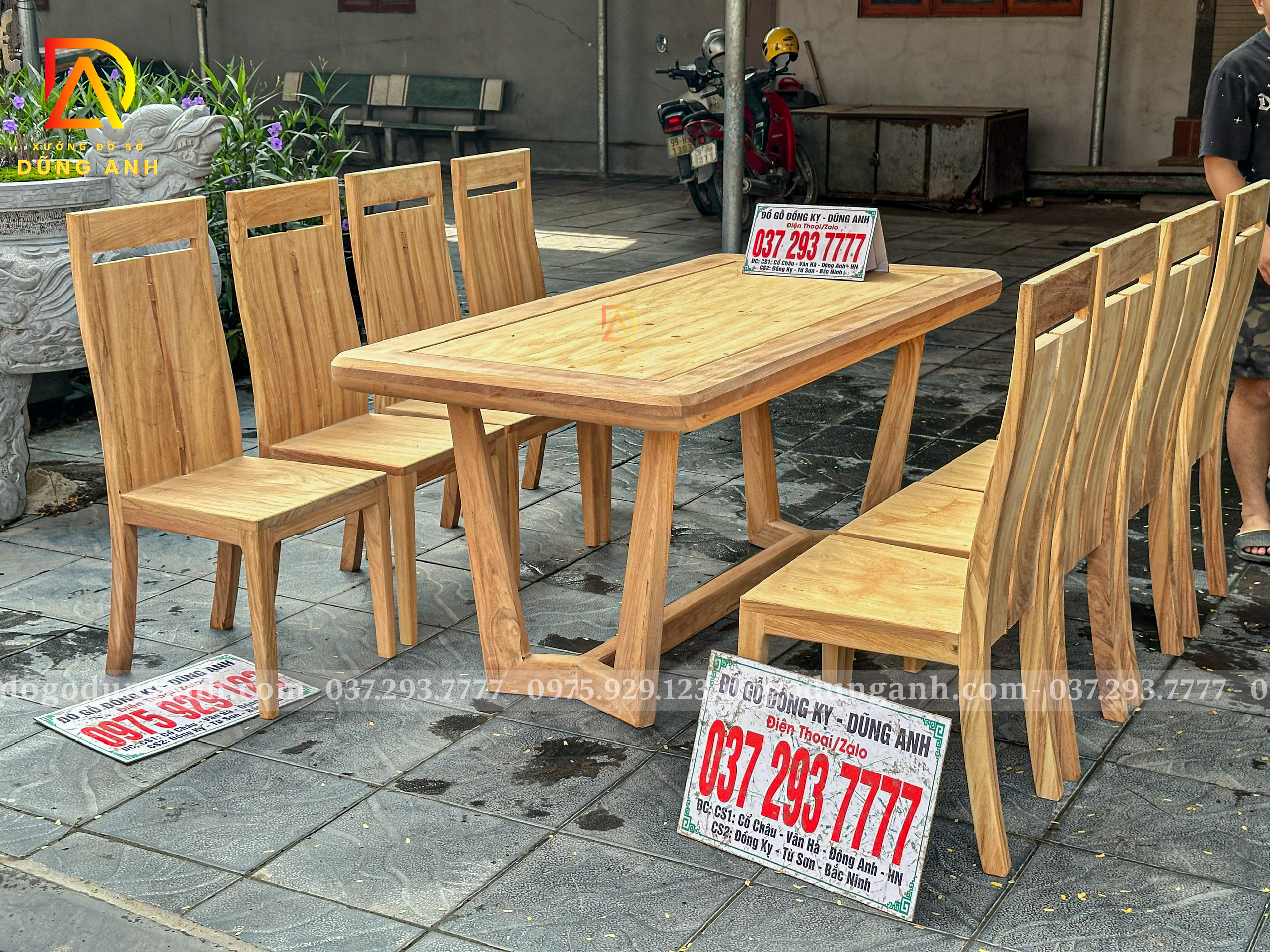 Đồ Gỗ Dũng Anh | Bộ Bàn Ăn 8 Ghế Hiện Đại Tựa Lưng Thẳng Kết Hợp Bàn Chữ Nhật Chân U Vắt Xéo – Gỗ Gõ Đỏ
