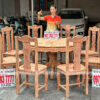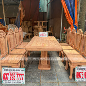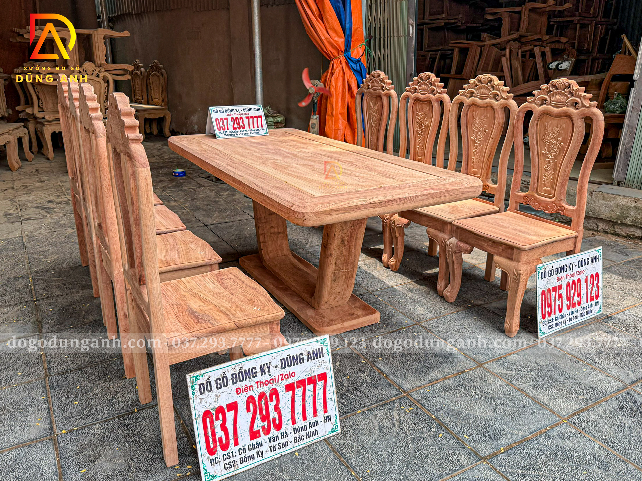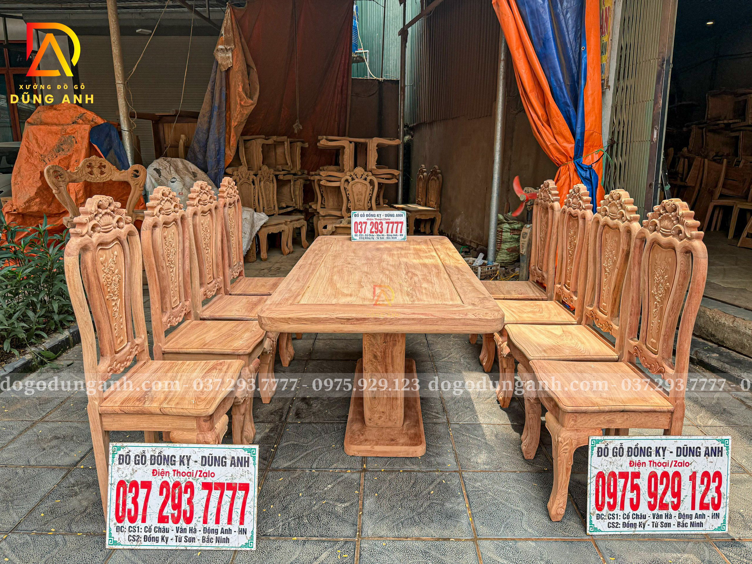 Đồ Gỗ Dũng Anh | Bộ bàn ăn 8 Ghế Hoa Cúc kết hợp Bàn Chữ Nhật Chân Thuyền Ng.Khối – Gỗ Hương Đá