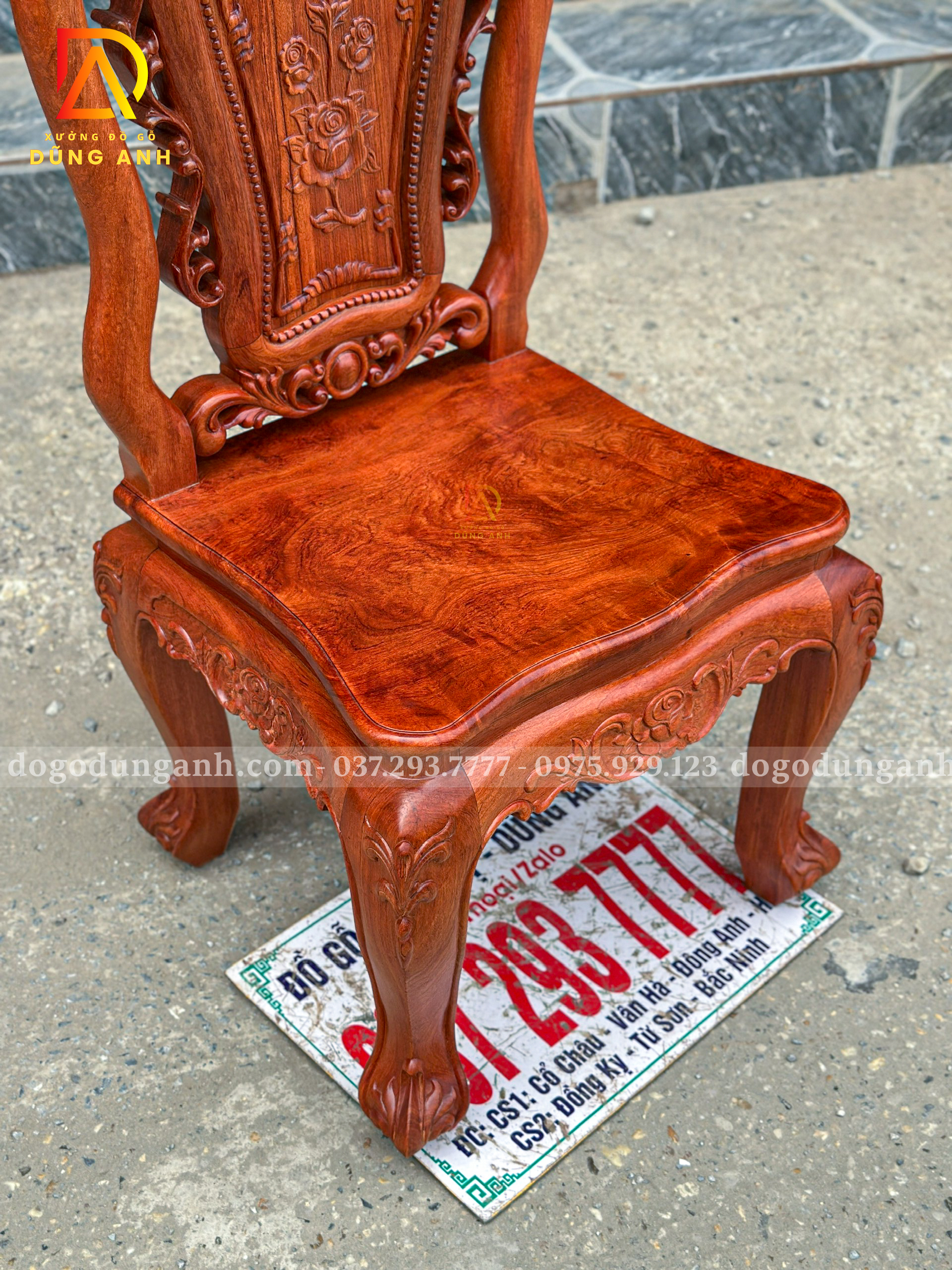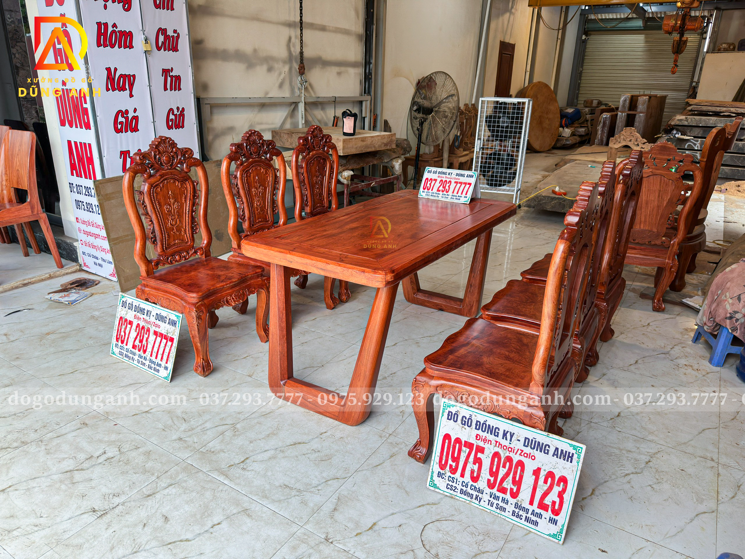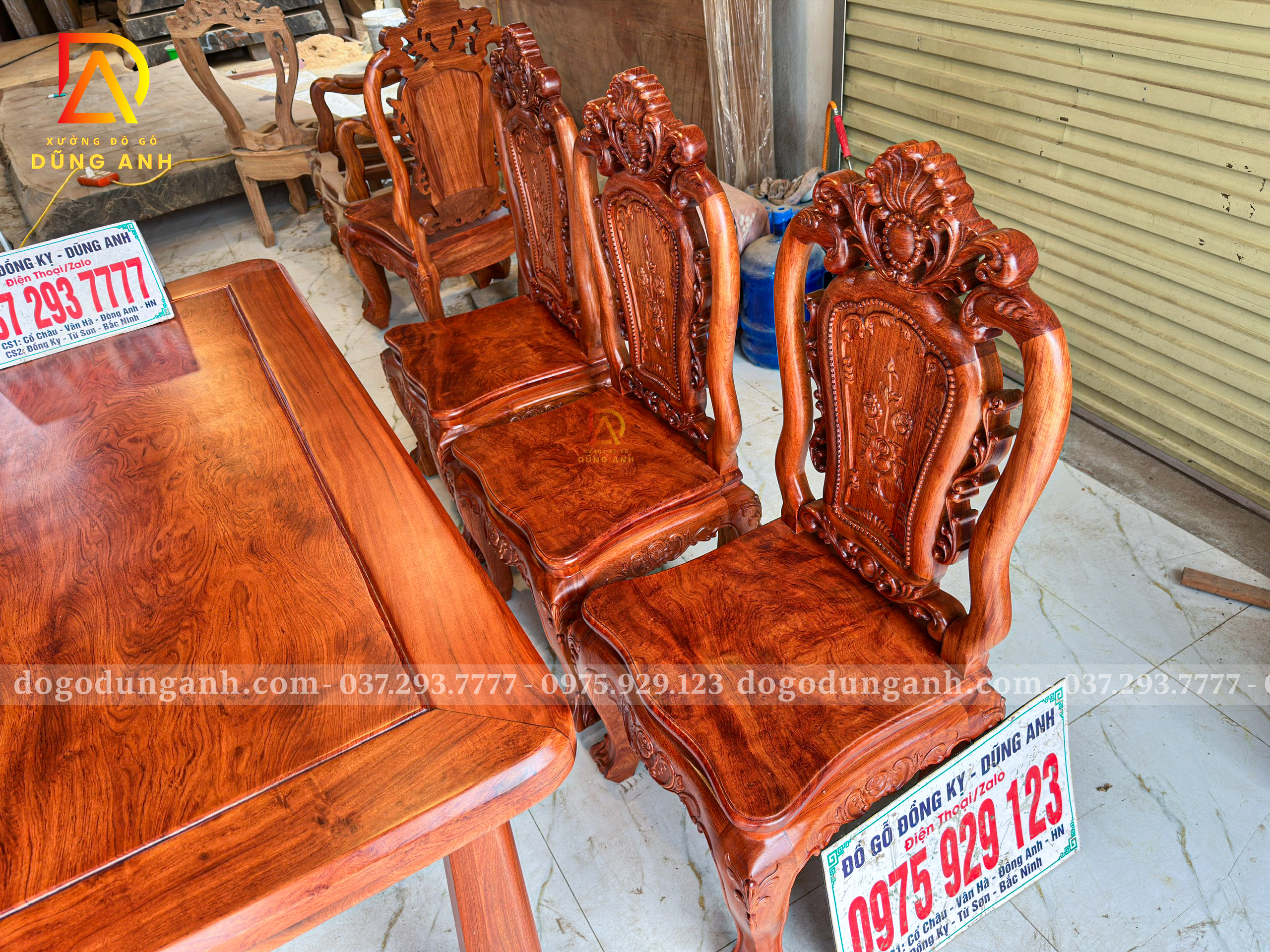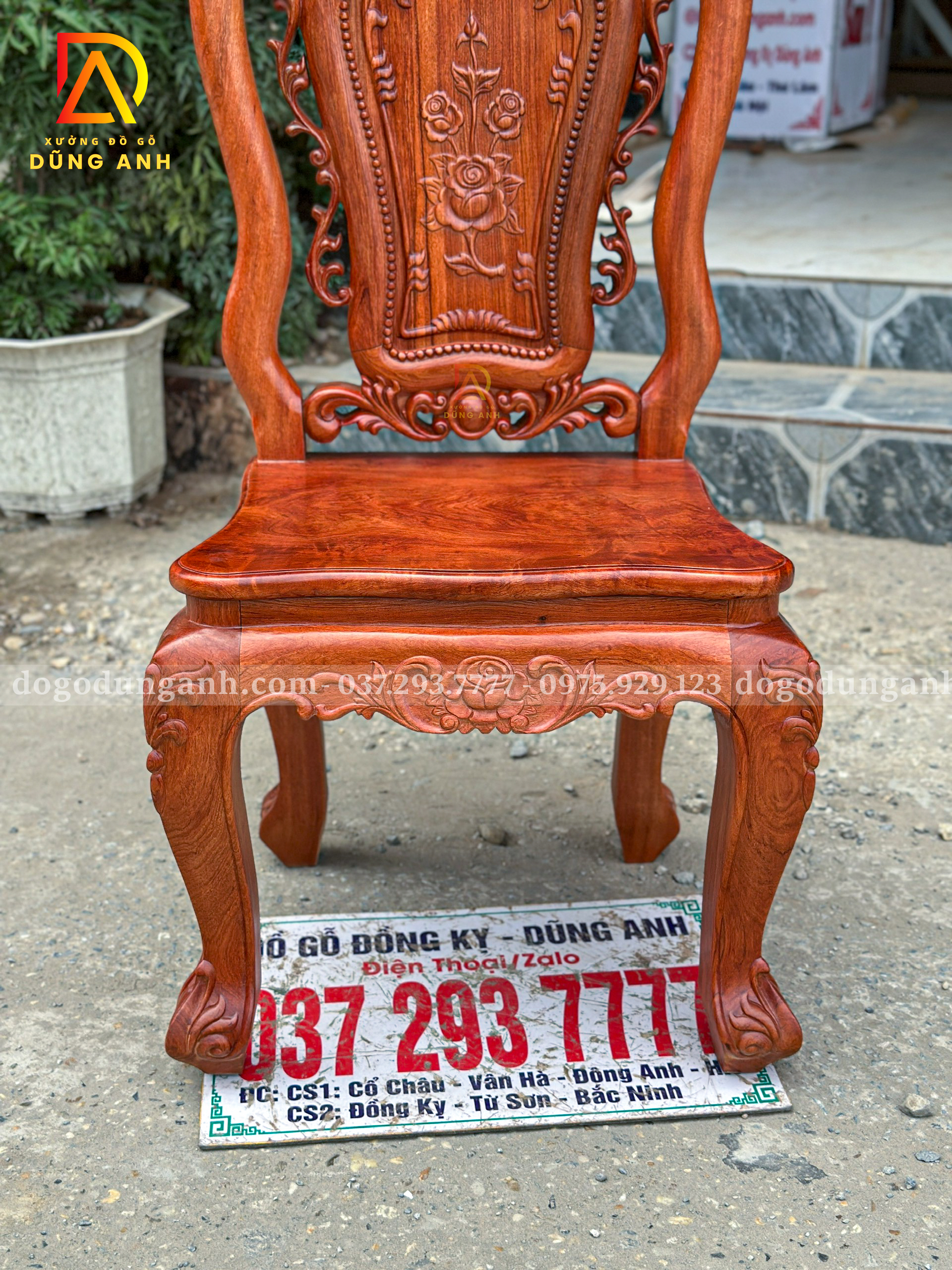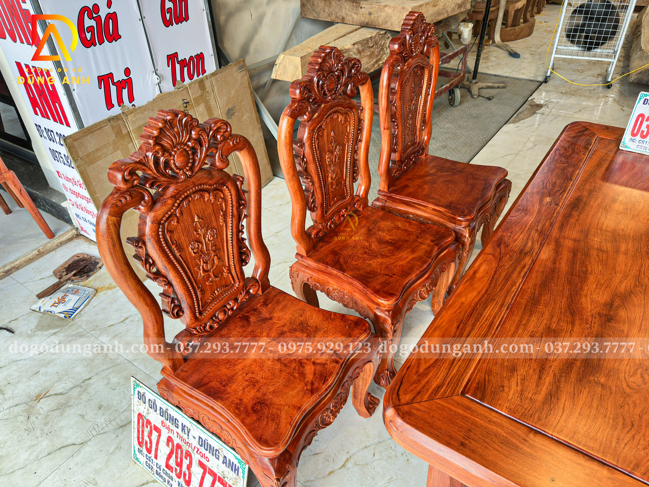 Đồ Gỗ Dũng Anh | Bộ Bàn Ăn Chữ Nhật 6 Ghế Louis Hoa Hồng Sang Trọng Gỗ Hương Đá