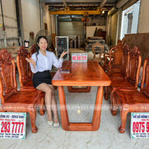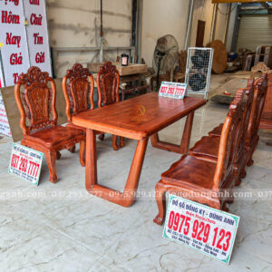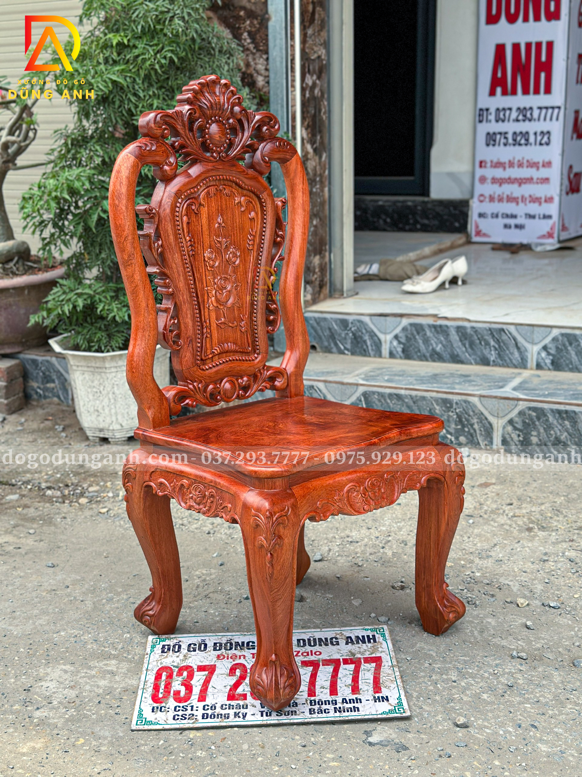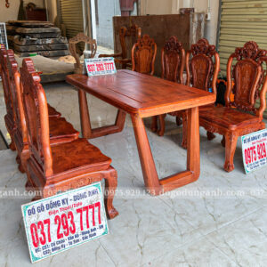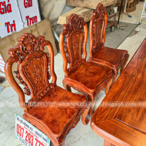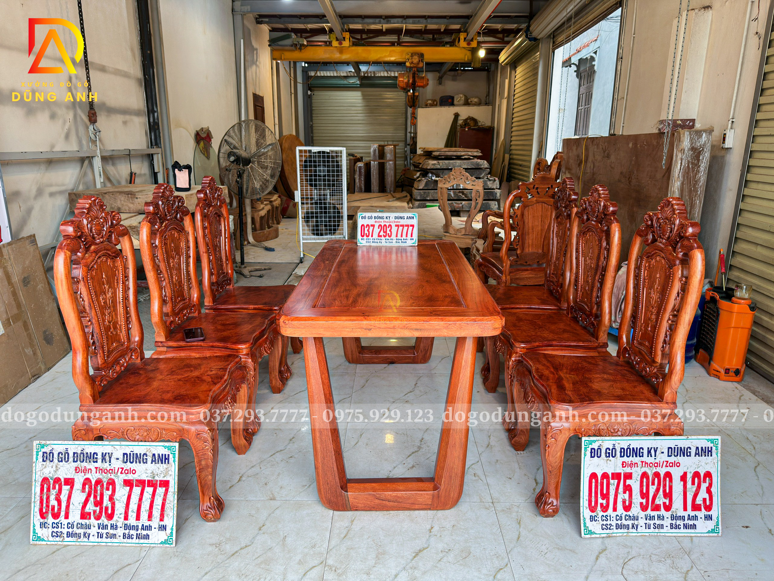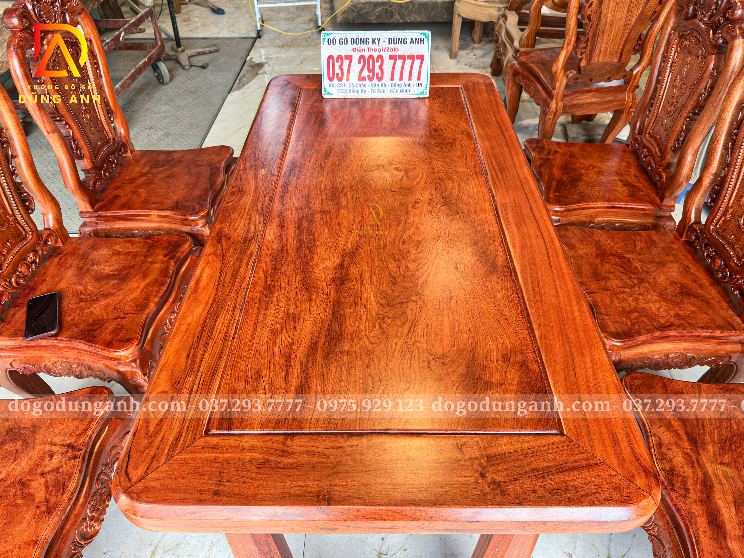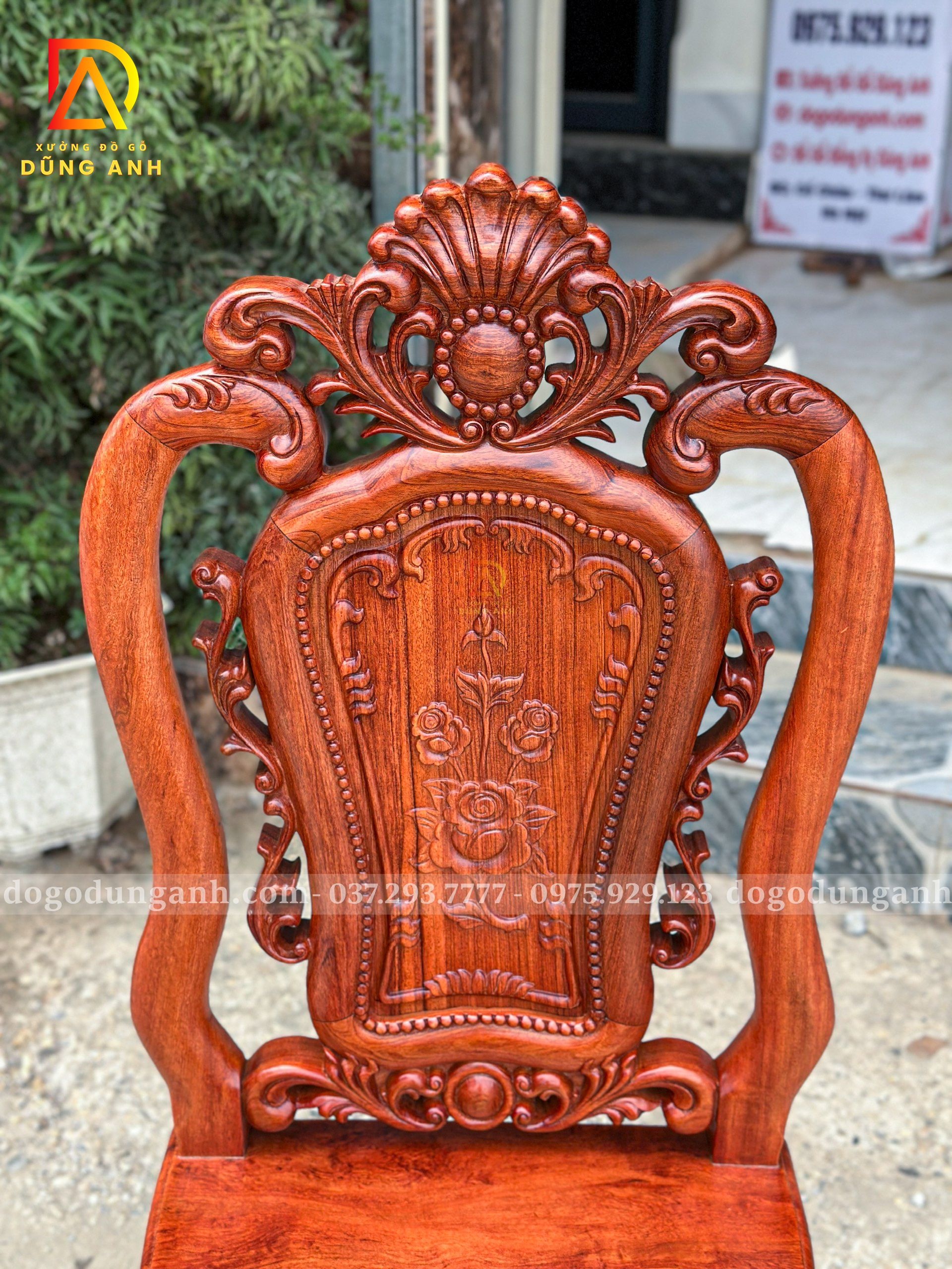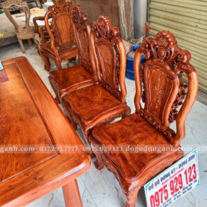 Đồ Gỗ Dũng Anh | Bộ Bàn Ăn Chữ Nhật 6 Ghế Louis Hoa Hồng Sang Trọng Gỗ Hương Đá