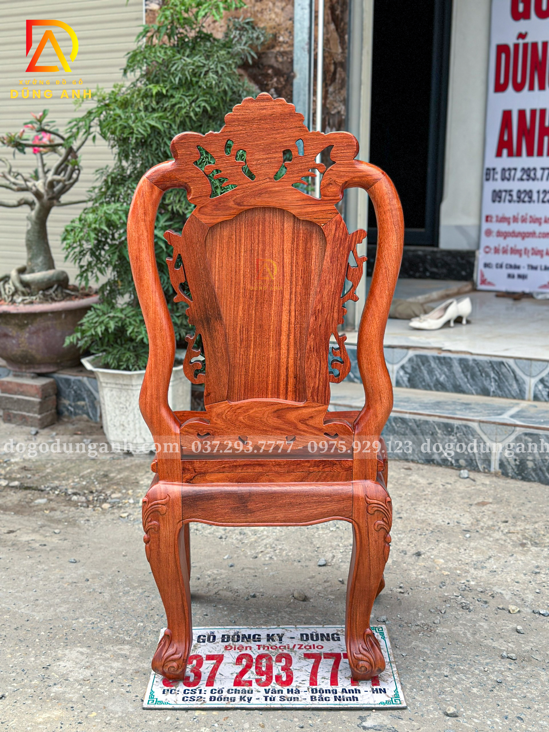 Nổi bật với lưng tựa , chương ghế chạm trổ tinh xảo, vai ghế bo tròn duyên dáng. Mỗi đường nét đều toát lên sự khéo léo, tinh tế và tâm huyết của người thợ thủ công lành nghề.