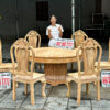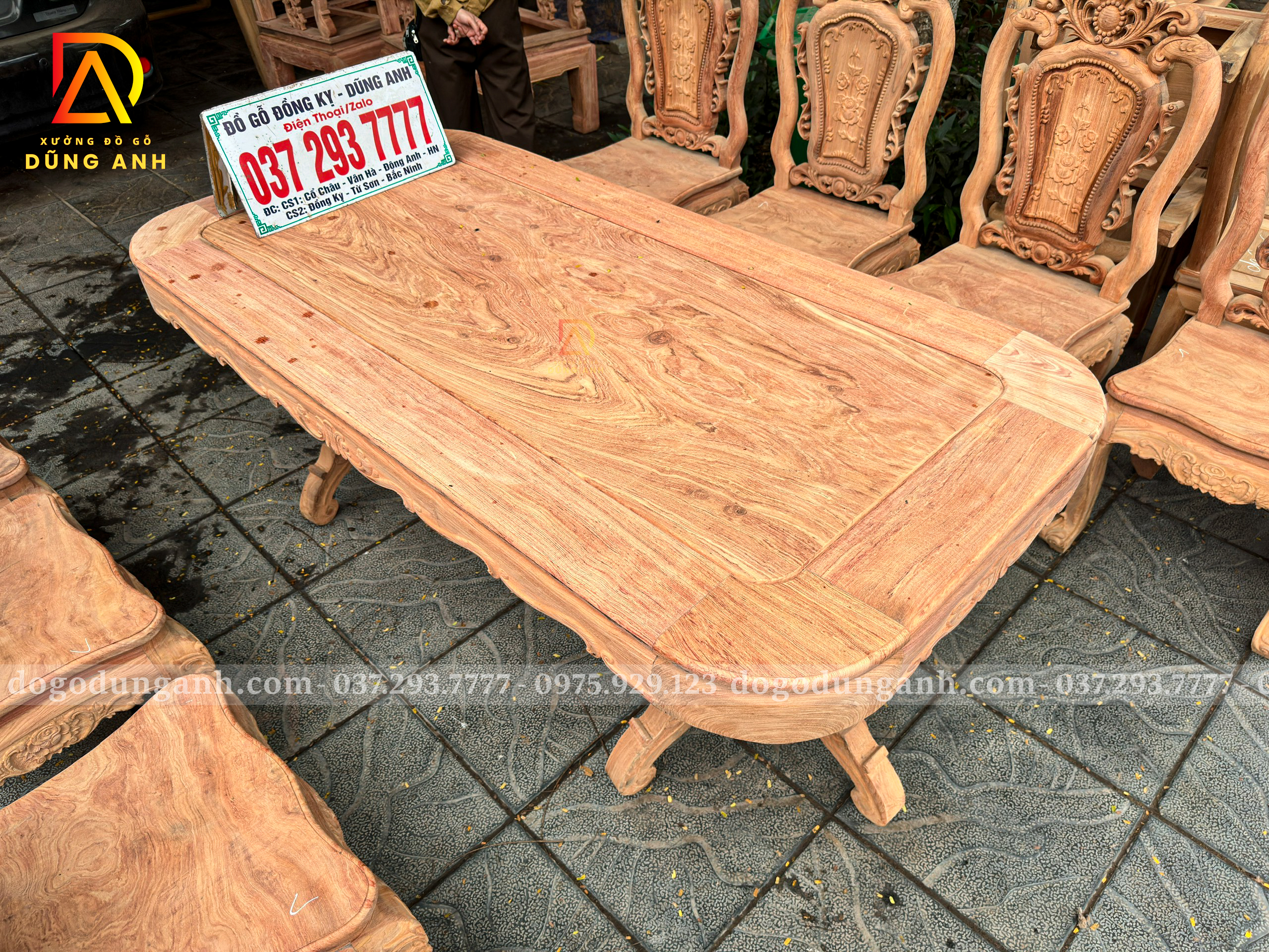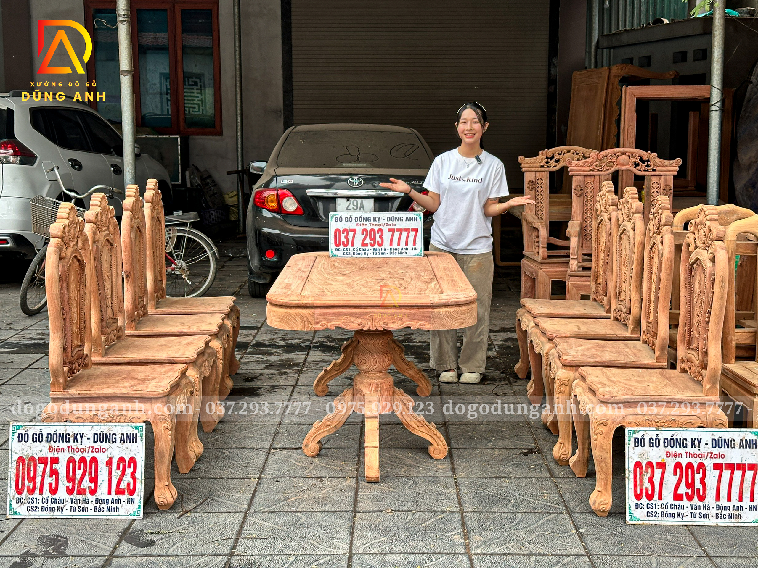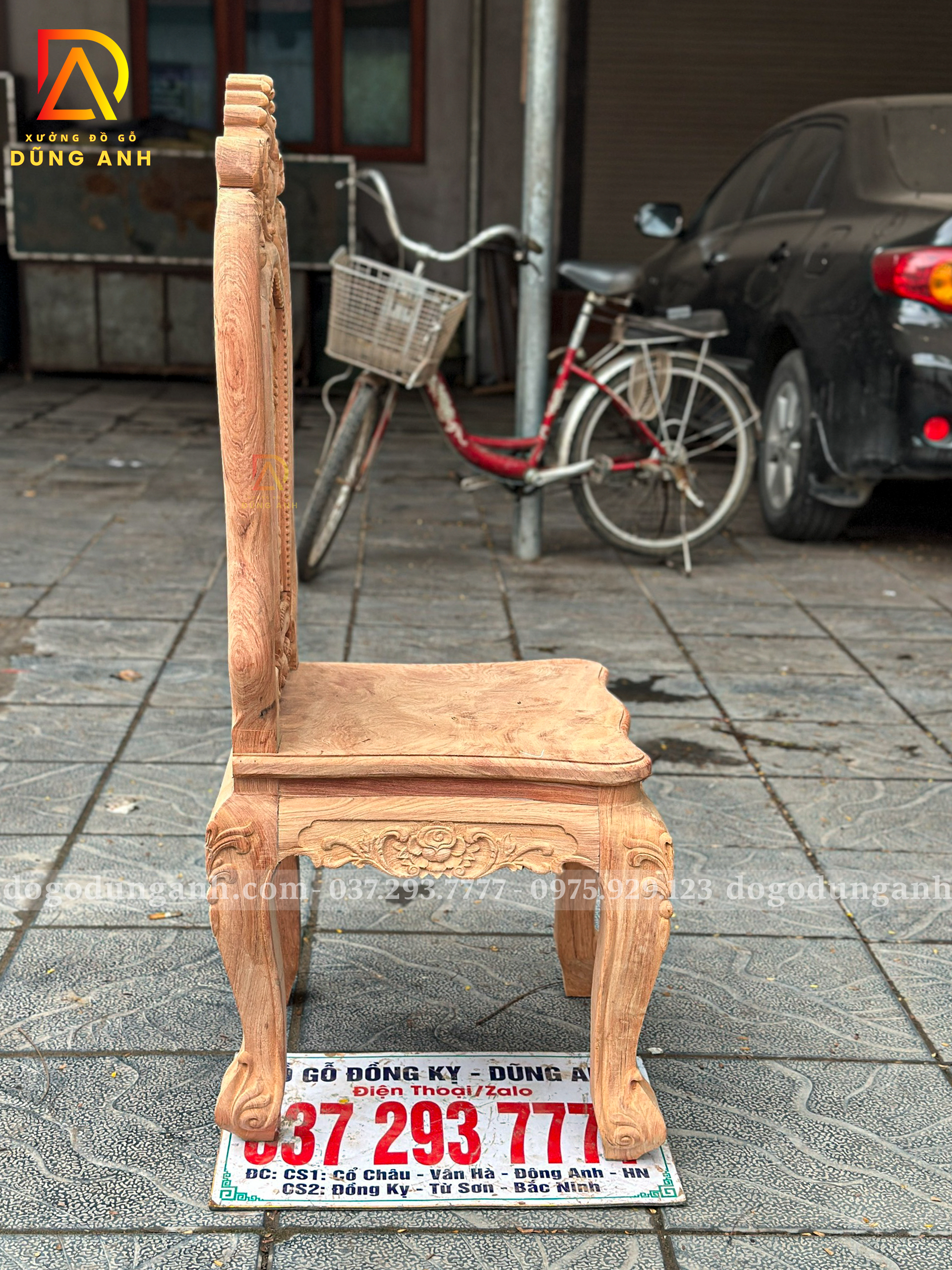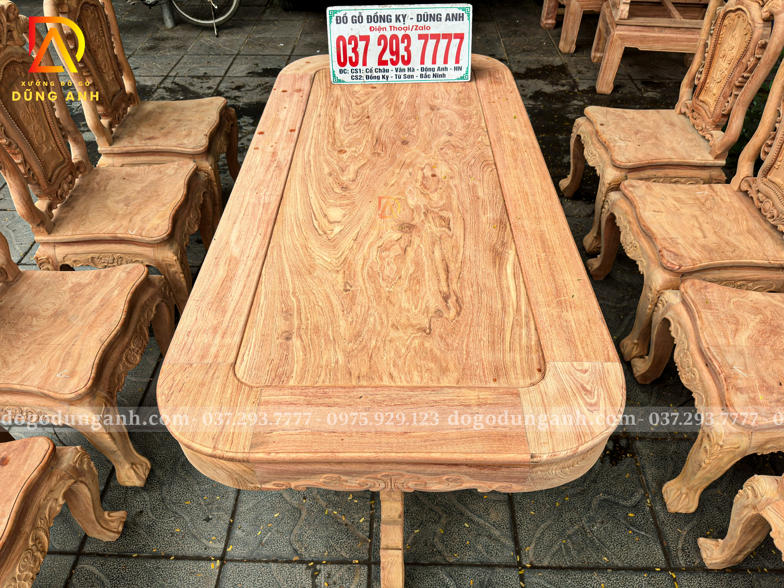 Đây là mẫu bàn ăn cao cấp hội tụ đầy đủ yếu tố đẹp – bền – đẳng cấp, nổi bật với thiết kế hoàng gia, chân trụ độc đáo và ghế đục chạm tinh xảo. Một lựa chọn hoàn hảo cho những khách hàng yêu thích nội thất gỗ tự nhiên cao cấp và giá trị lâu dài.