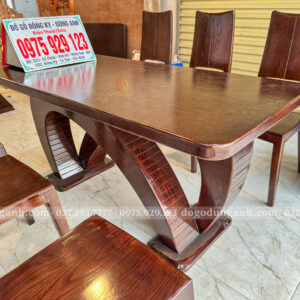 Bàn chữ nhật thiết kế dứt khoát, chân hộp bản lớn chịu lực tốt, hạn chế rung lắc. Kết hợp cùng 6 ghế Ba Tiêu form dáng chuẩn, mang lại cảm giác ngồi đầm – chắc – thoải mái ngay từ lần đầu sử dụng