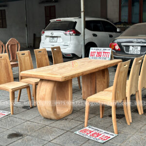 Đồ Gỗ Dũng Anh trân trọng giới thiệu mẫu bộ bàn ăn chữ nhật chân trụ nguyên khối độc lạ kết hợp 8 ghế anh đào – thiết kế hiện đại, khác biệt, được chế tác từ gỗ Gõ Đỏ Nam Phi cao cấp, mang đến vẻ đẹp sang trọng và đẳng cấp cho không gian sống